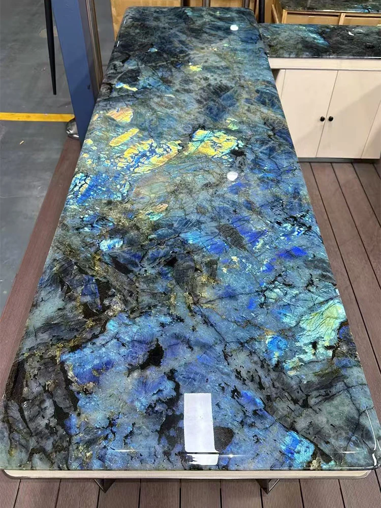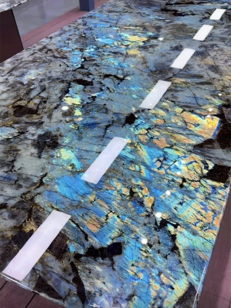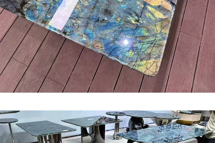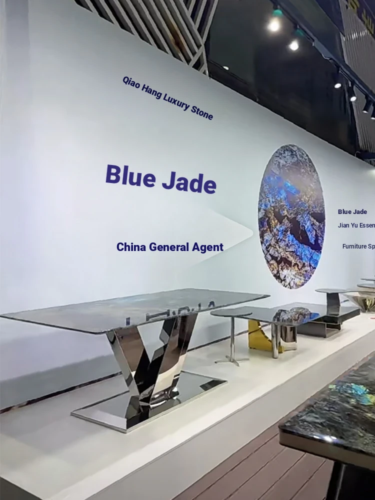 Premium Natural Madagascar Blue Jade Dining Table - Luxurious Rectangular and Round Options for Elegant Italian Living Spaces