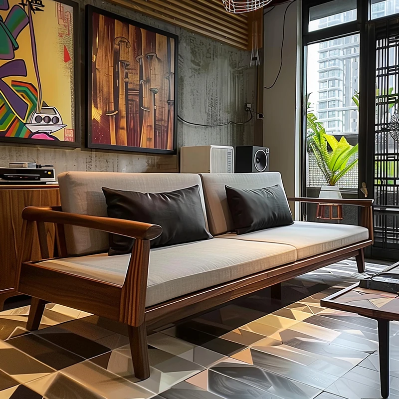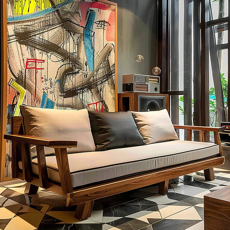 Premium New Chinese Zen-Style White Ash Sofa - High-End Luxury for Your Living Room, Featuring North American Black Walnut Solid Wood for Timeless Elegance and Durability.