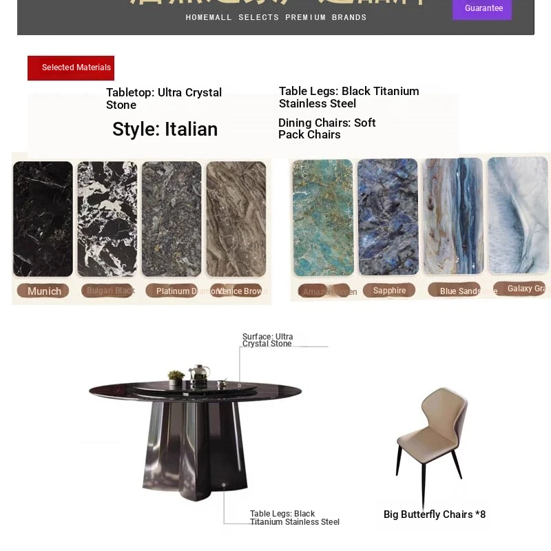 [Send turntable] Super crystal stone dining table +8 large butterfly chairs