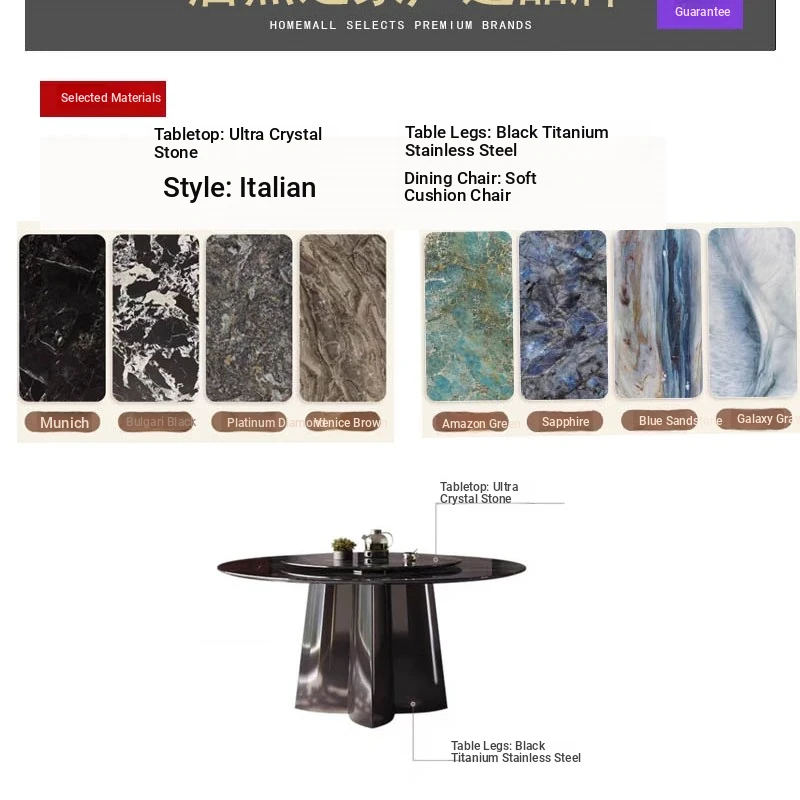 [Send turntable] Super crystal stone dining table +6 space chairs