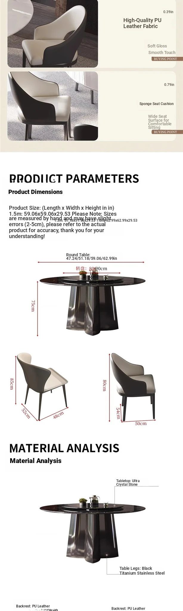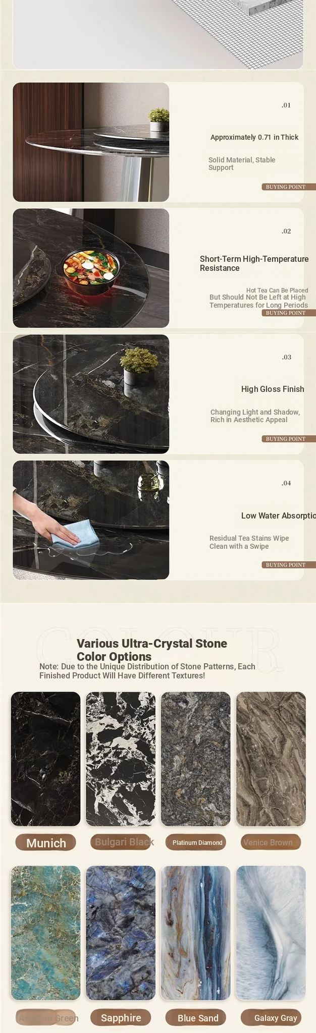 [Delivery turntable] Super crystal stone single dining table (0.71in thick super crystal stone)