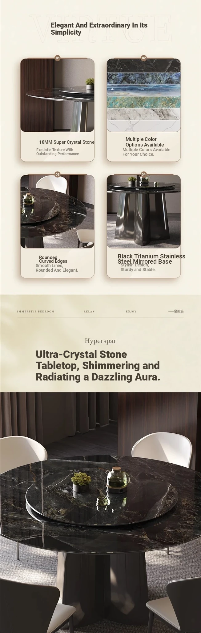 [Send turntable] Super crystal stone dining table +4 space chairs