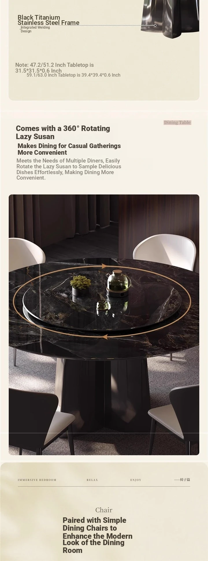 [Rotary Table] Rock Plate Single Dining Table (0.47in thick Rock Plate)