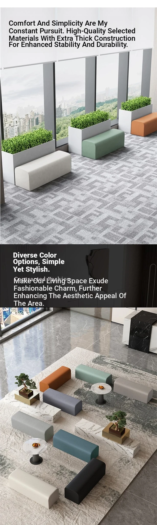 Stylish Long Bench Sofa for Dance Studios, Training Centers, Reception Areas, and Clothing Stores - Perfect for Waiting Zones and Customer Comfort!