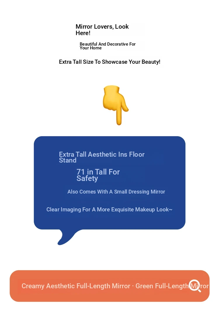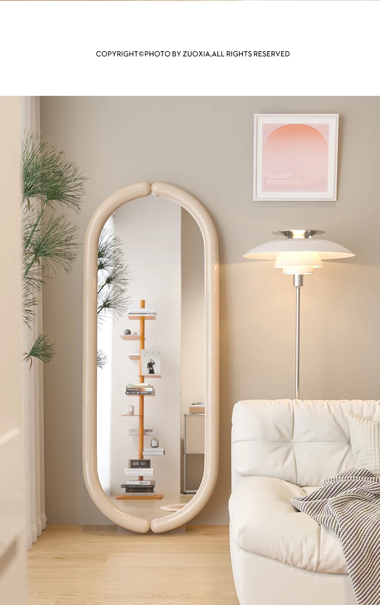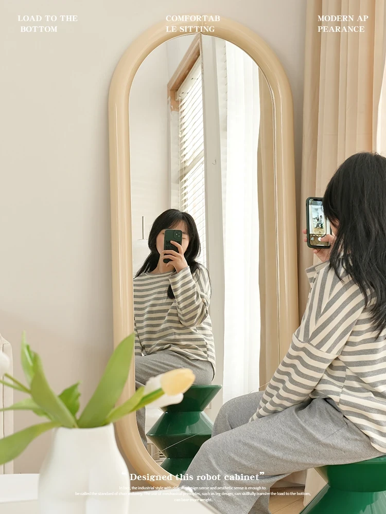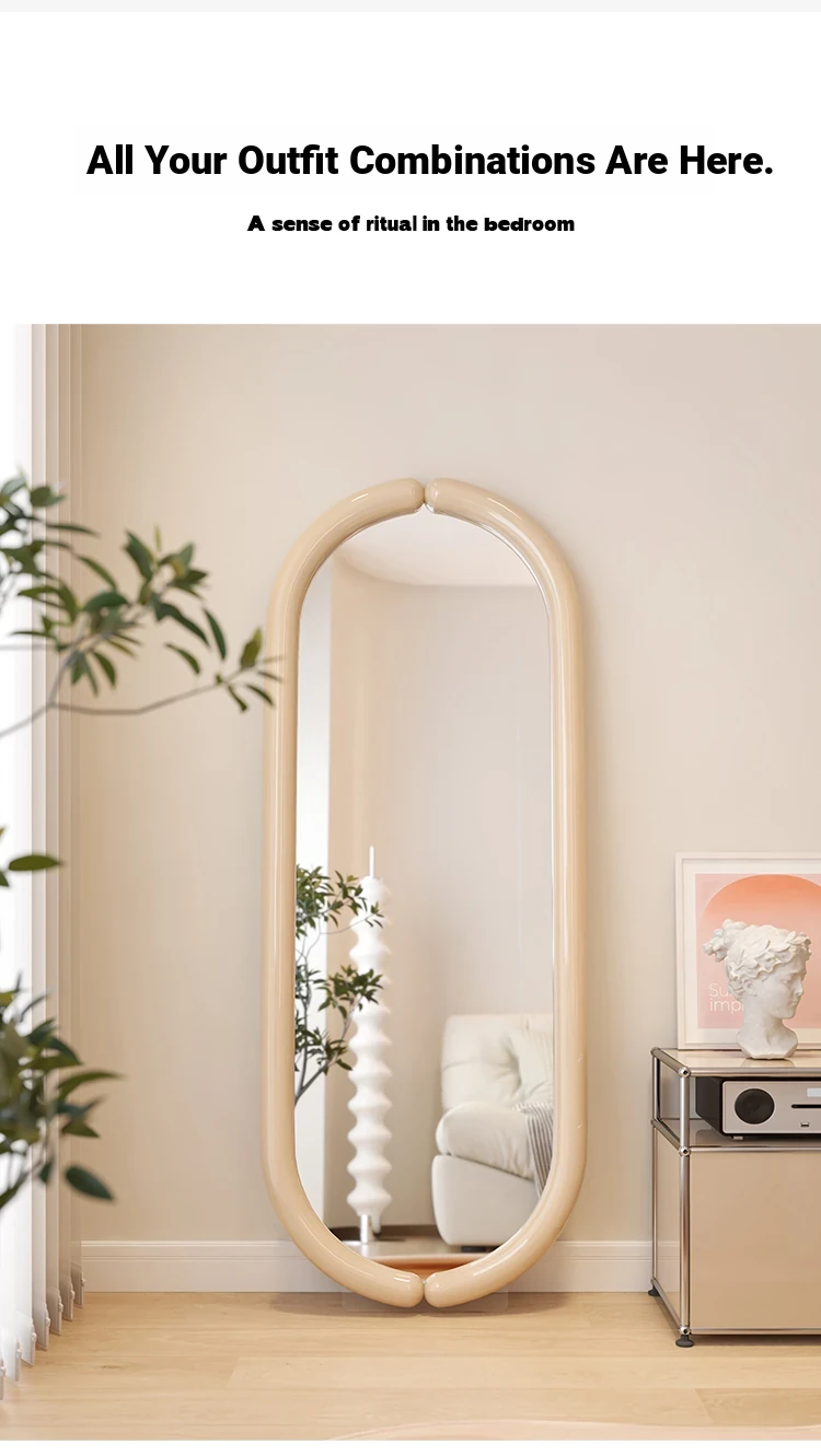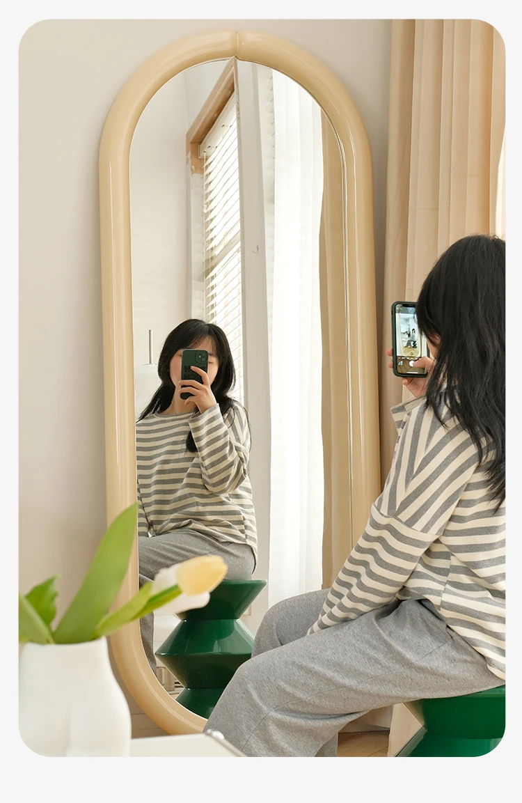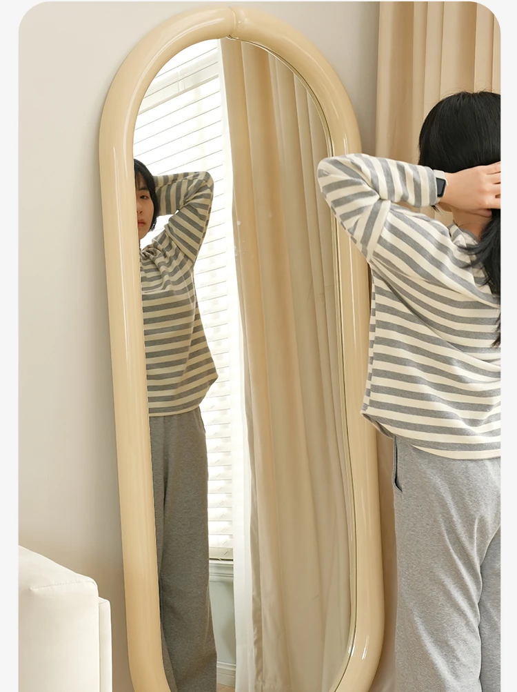 Trendy Full-Length Mirror for Influencers - Creamy Aesthetic Standing Mirror for Home Use, Ideal for Girls' Bedrooms and Try-On Sessions