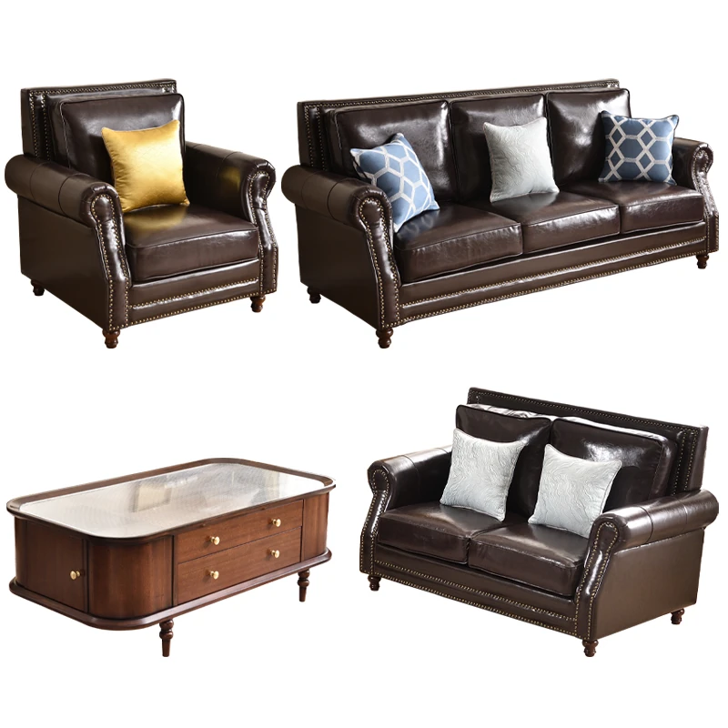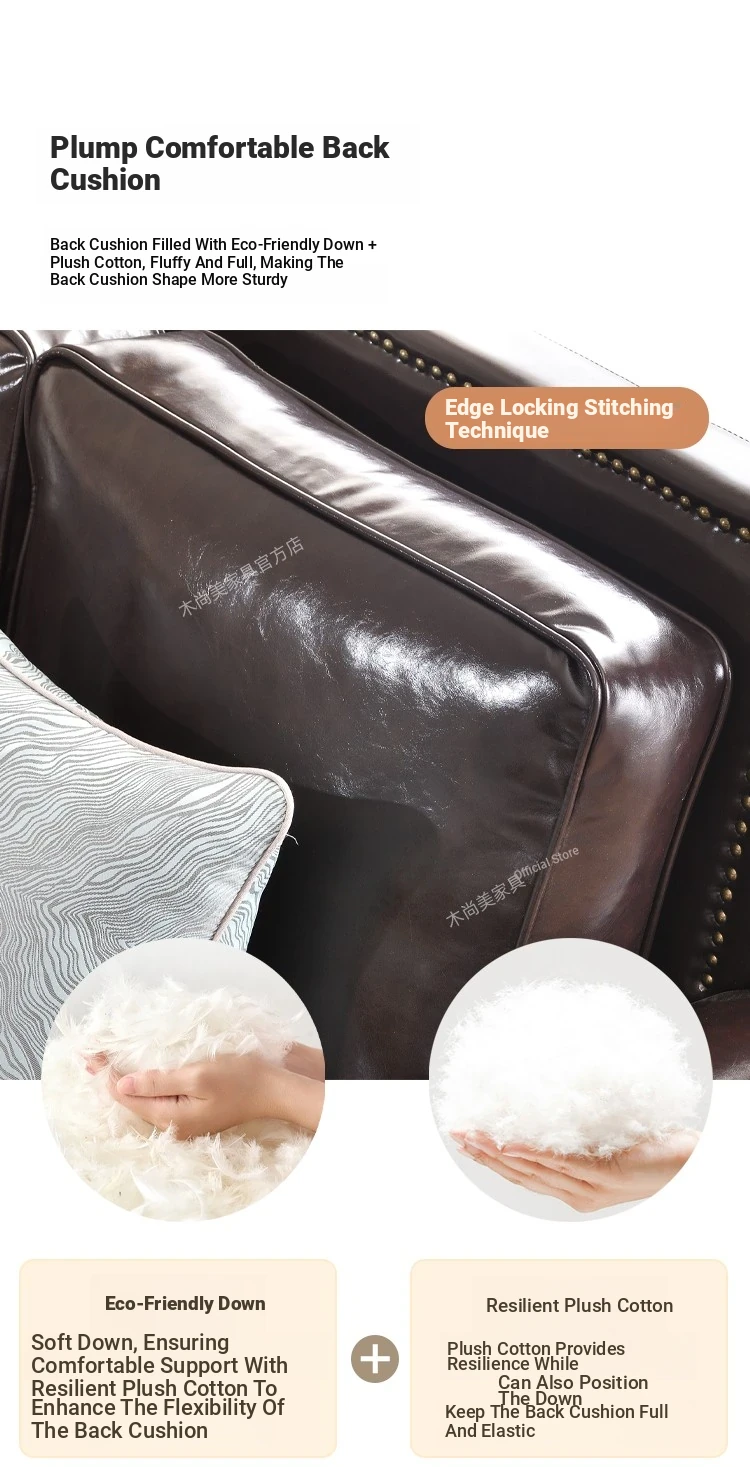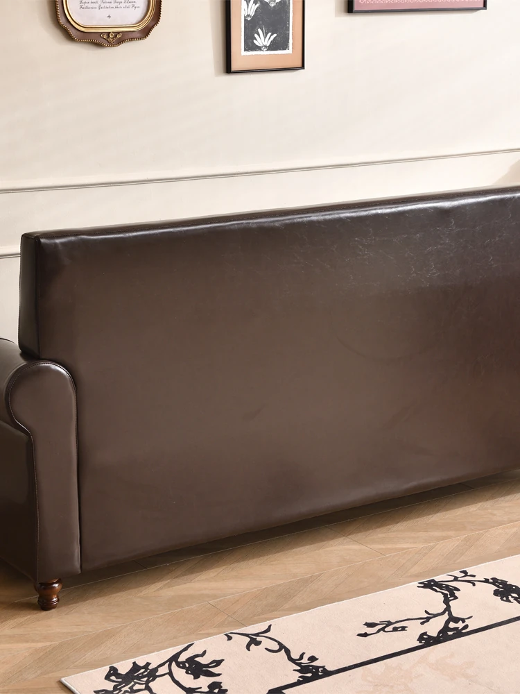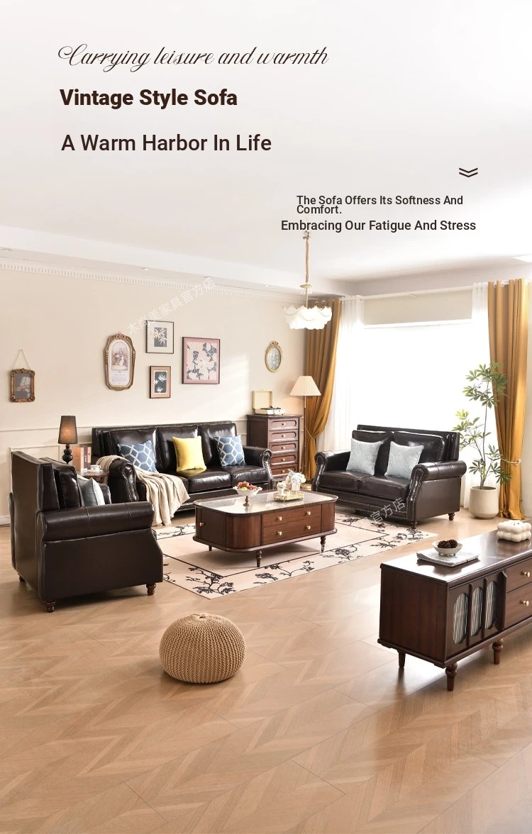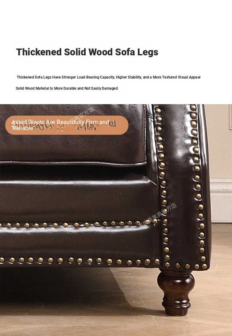 Vintage-Inspired Leather Sofa - Luxurious and Stylish American Retro Design for Living Room - Available in Single, Double, and Triple Seats with Solid Wood Frame