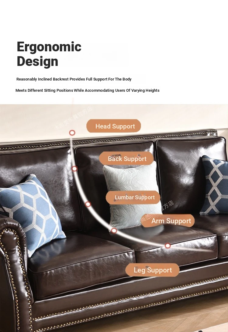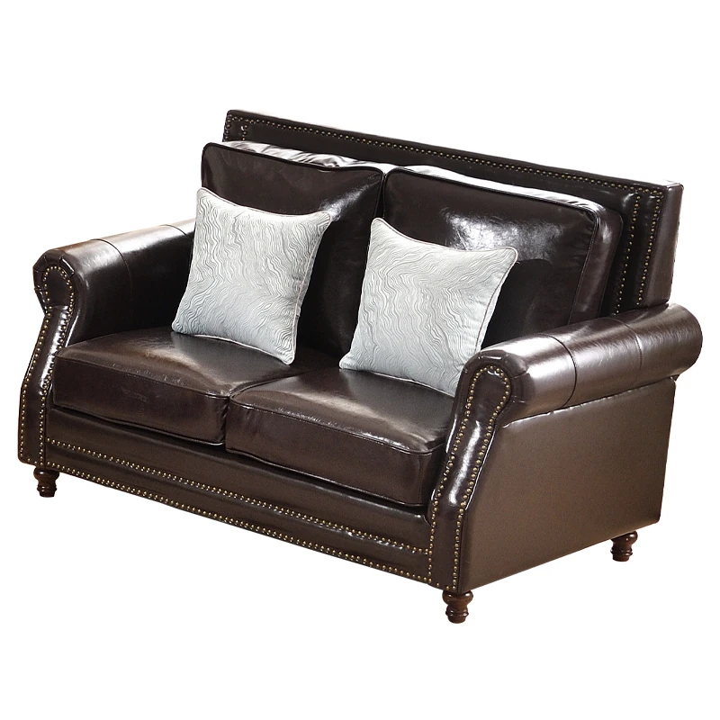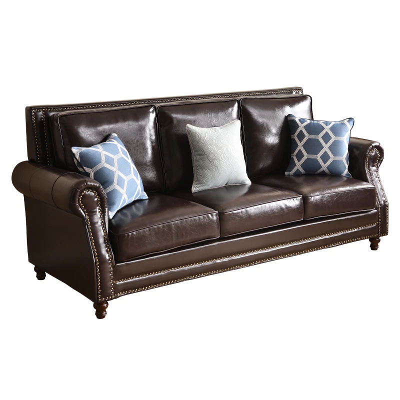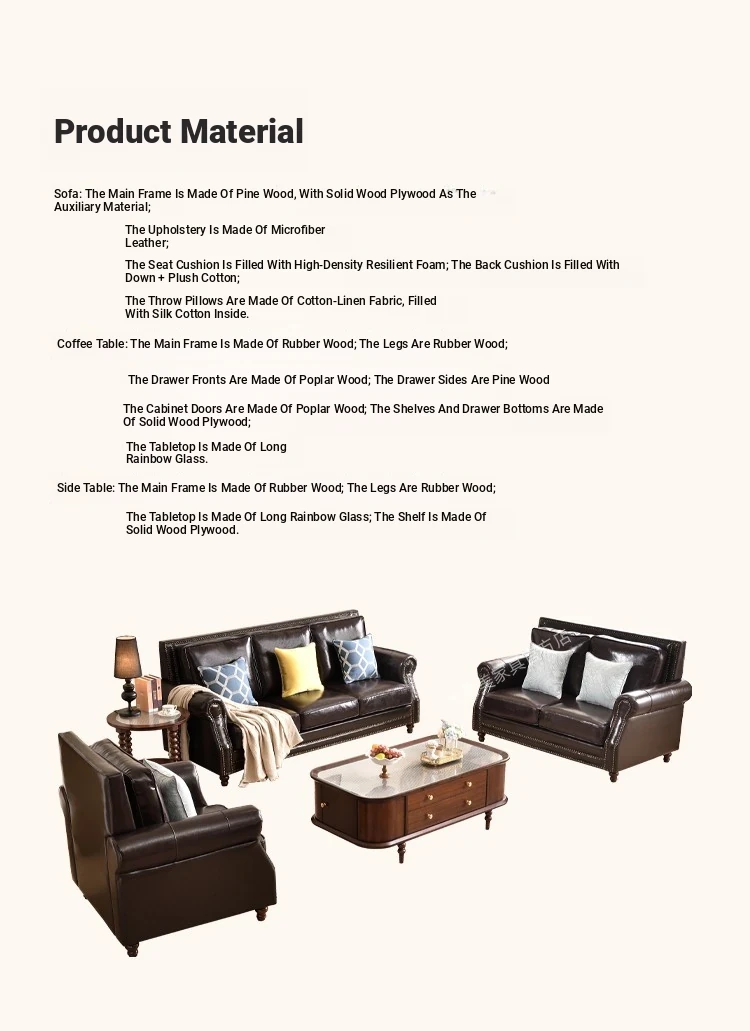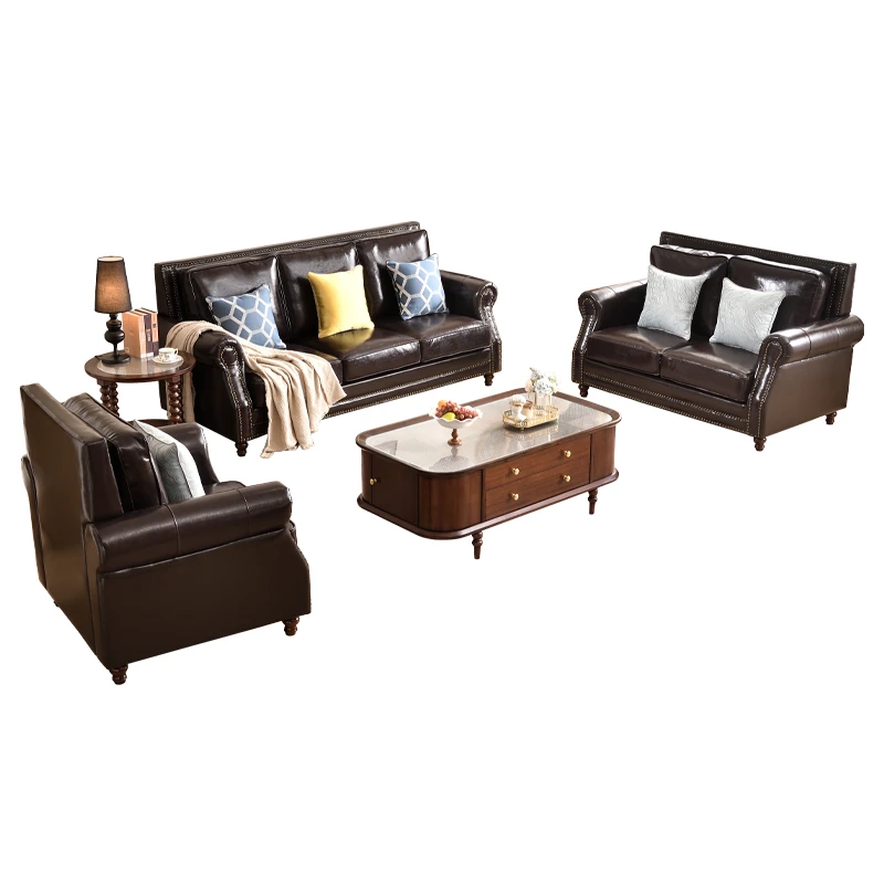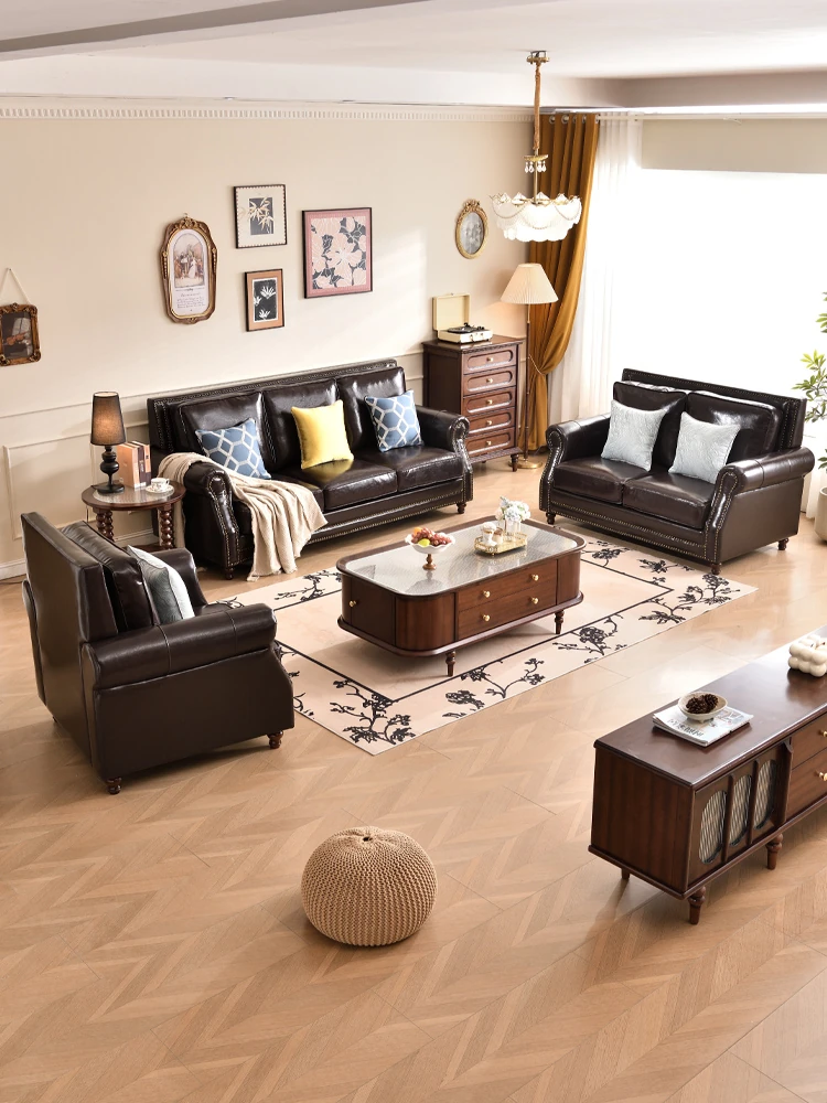 Vintage-Inspired Leather Sofa - Luxurious and Stylish American Retro Design for Living Room - Available in Single, Double, and Triple Seats with Solid Wood Frame