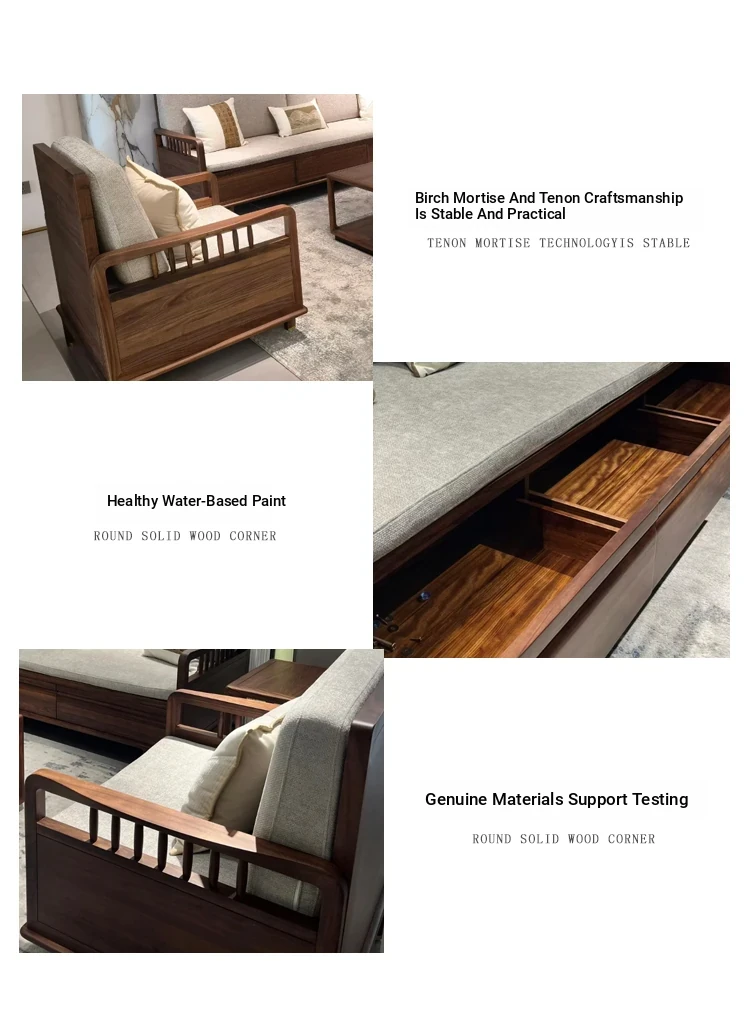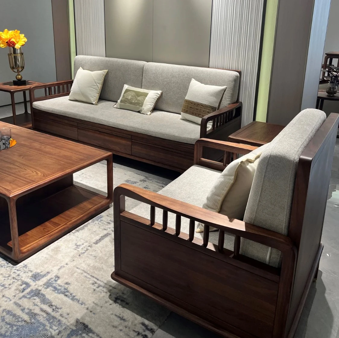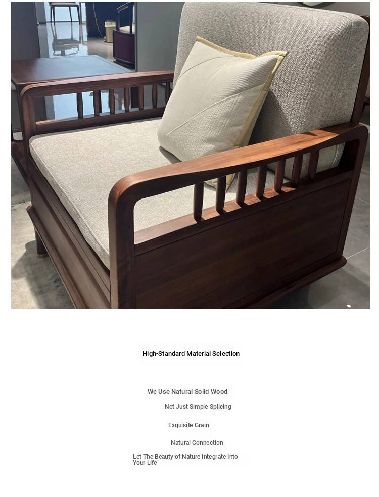 Zen Style Solid Wood Sofa and Coffee Table Set in Black Walnut and White Ash - Perfect for Hotels, Airbnb, and Office Living Rooms. Enhance Your Space with Elegant, Minimalist Design.