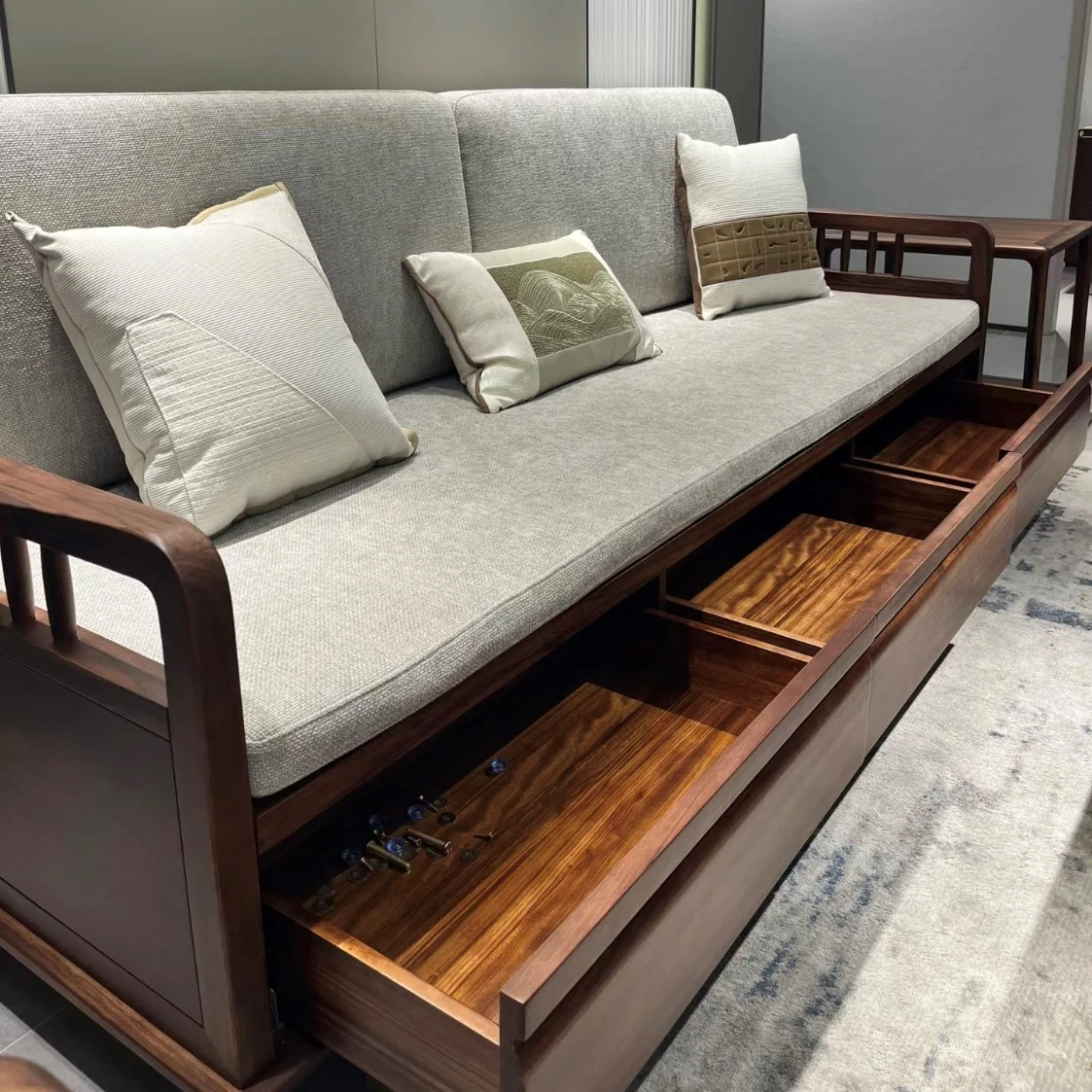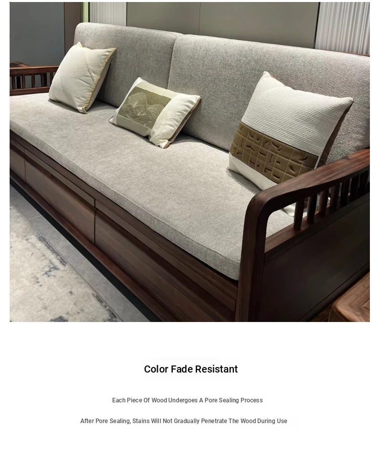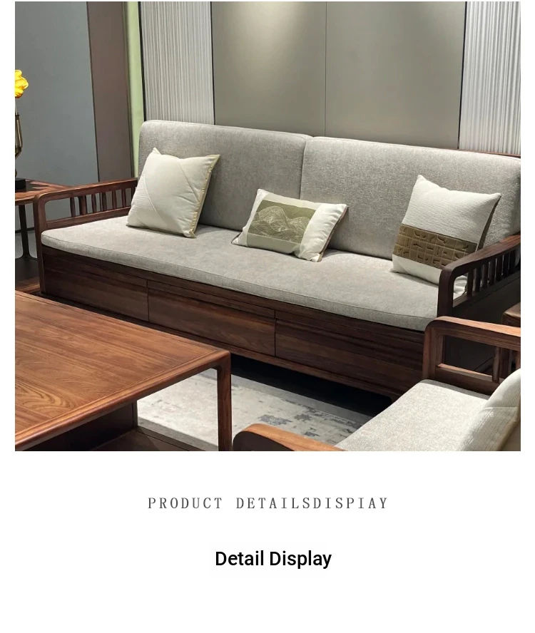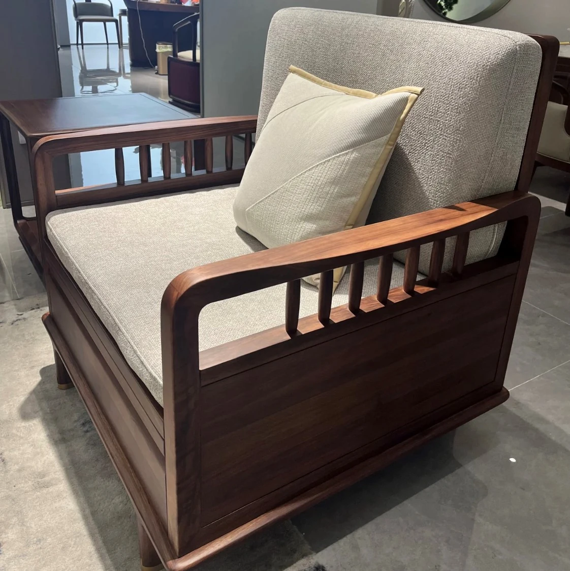 Zen Style Solid Wood Sofa and Coffee Table Set in Black Walnut and White Ash - Perfect for Hotels, Airbnb, and Office Living Rooms. Enhance Your Space with Elegant, Minimalist Design.