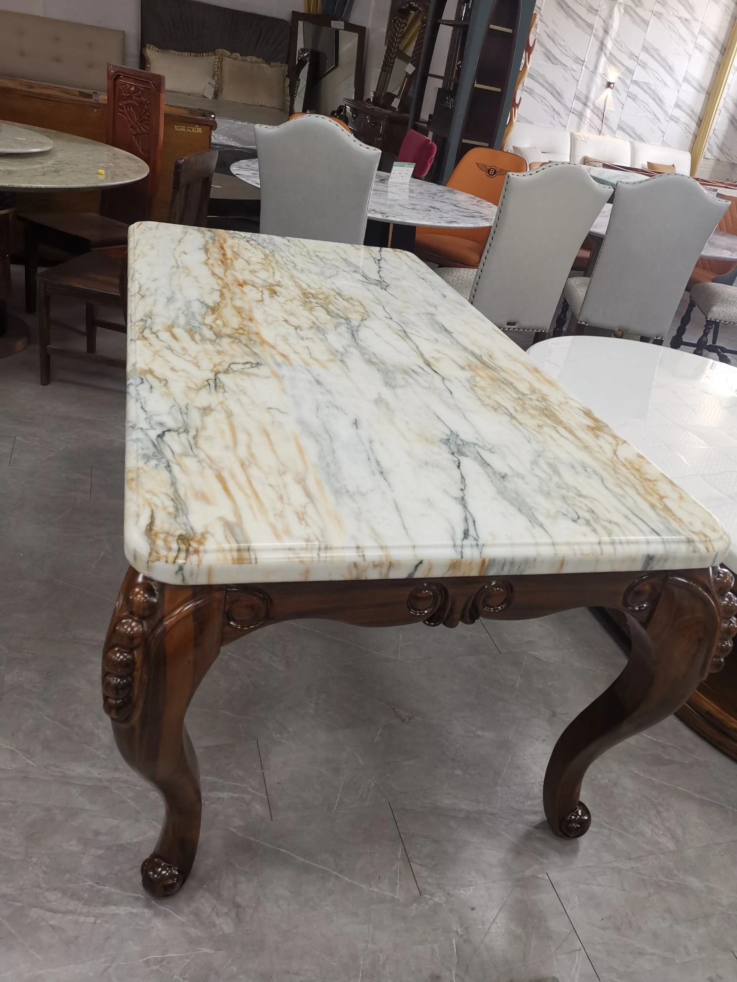 ラグジュアリーなエルメス風のイタリア製大理石ダイニングテーブル - 豪華な別荘にぴったりの高級デザイン、上質な素材で特別な食事のひとときを演出します。