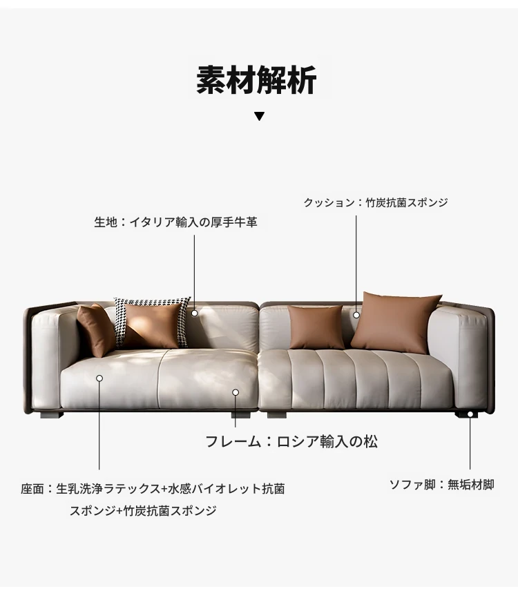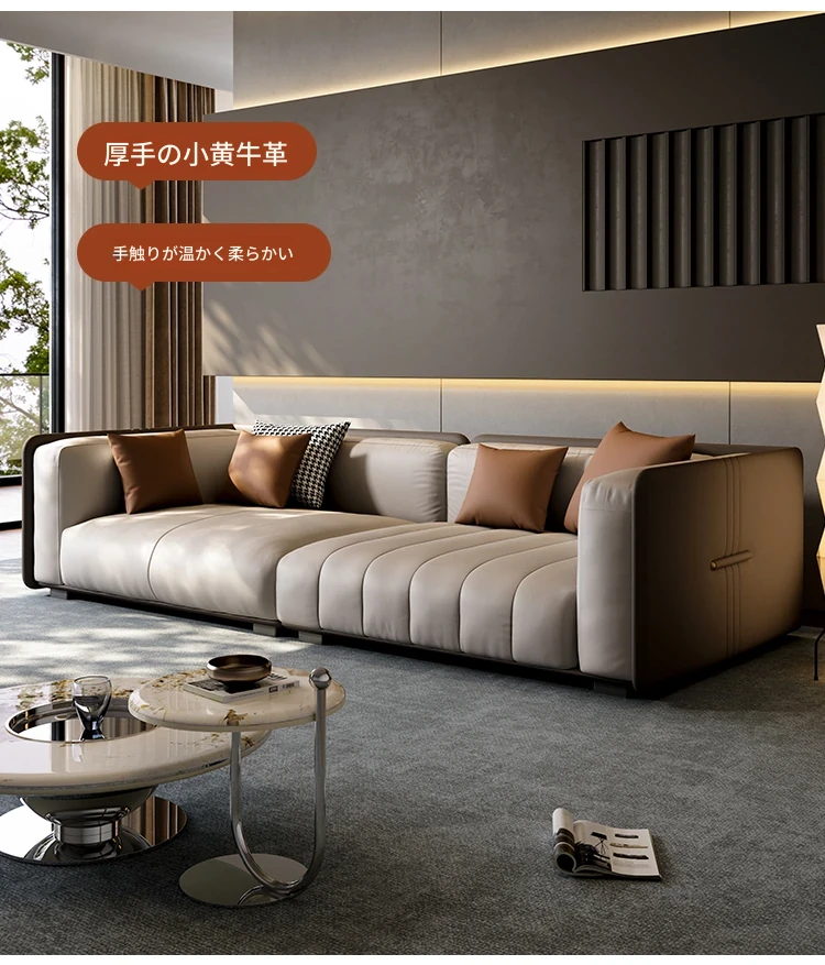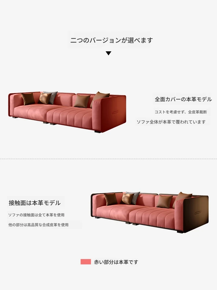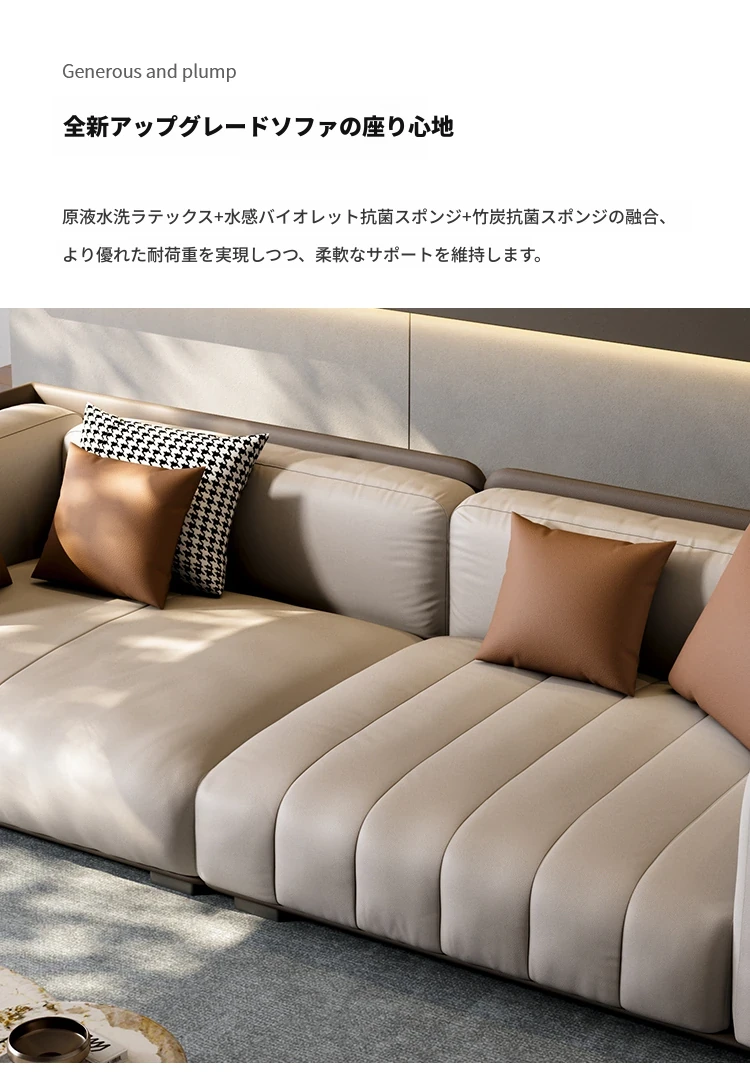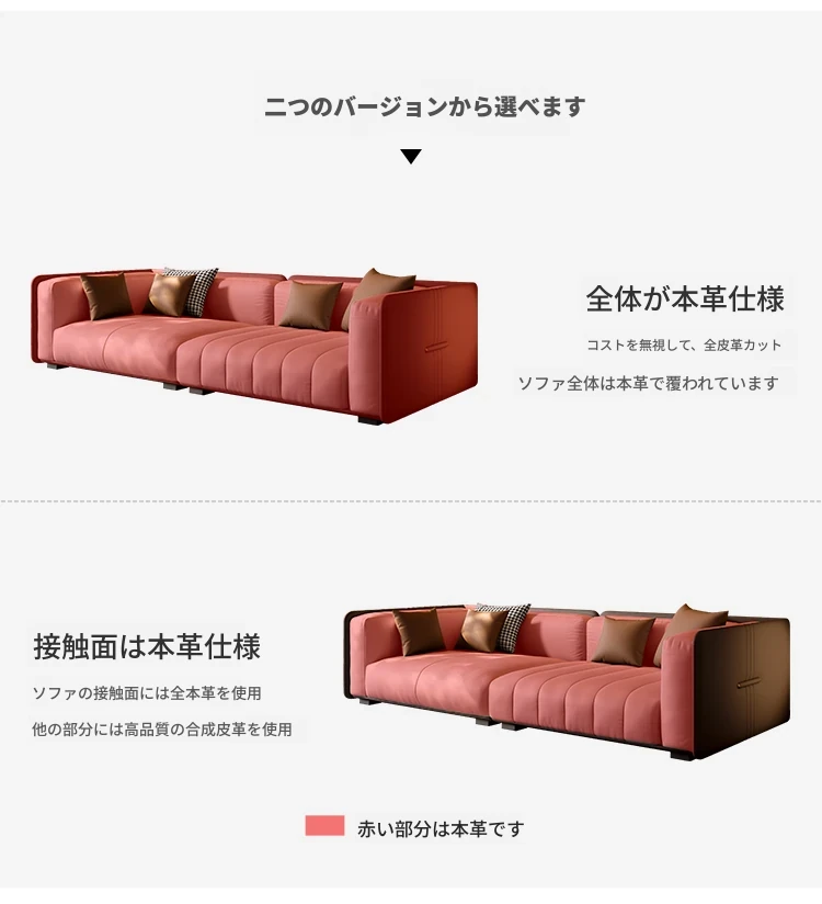 【接触面版】イタリア輸入厚手牛革 多人数用2.6メートル+オットマン フレーム生涯保証