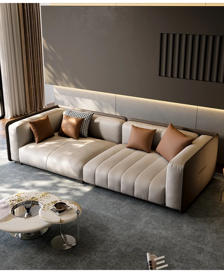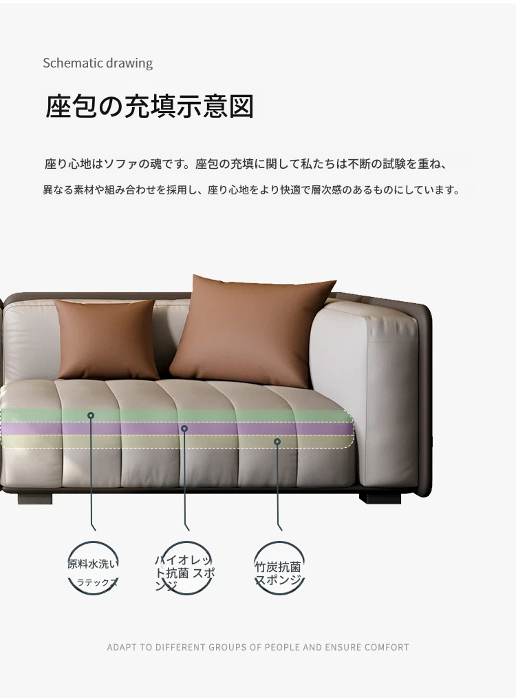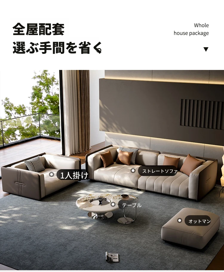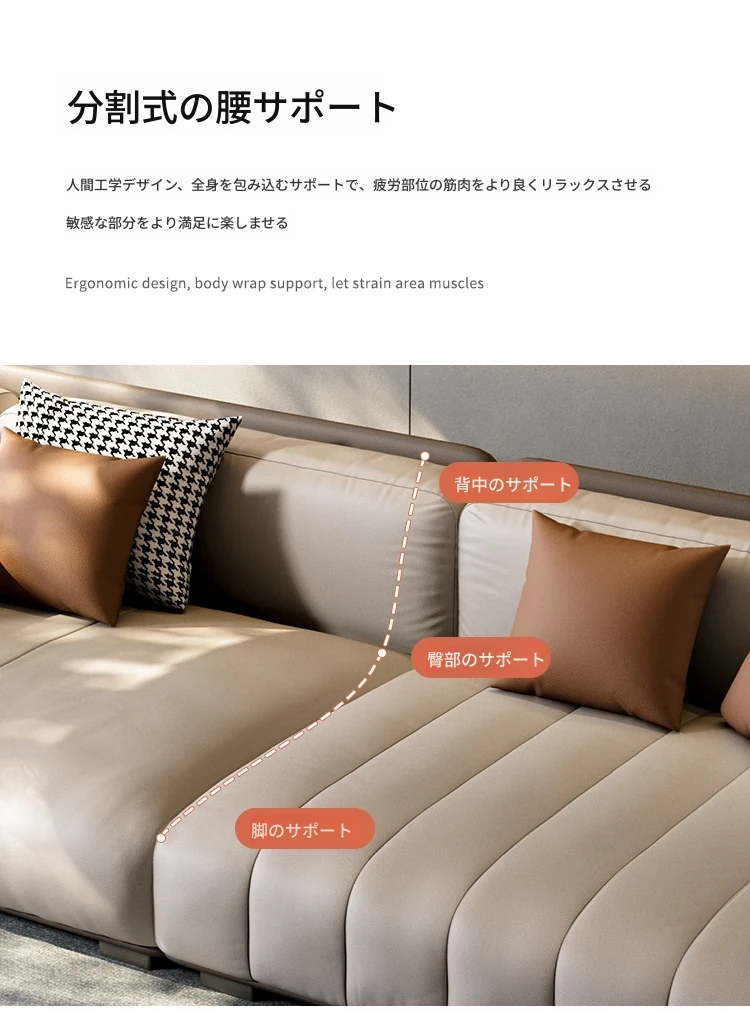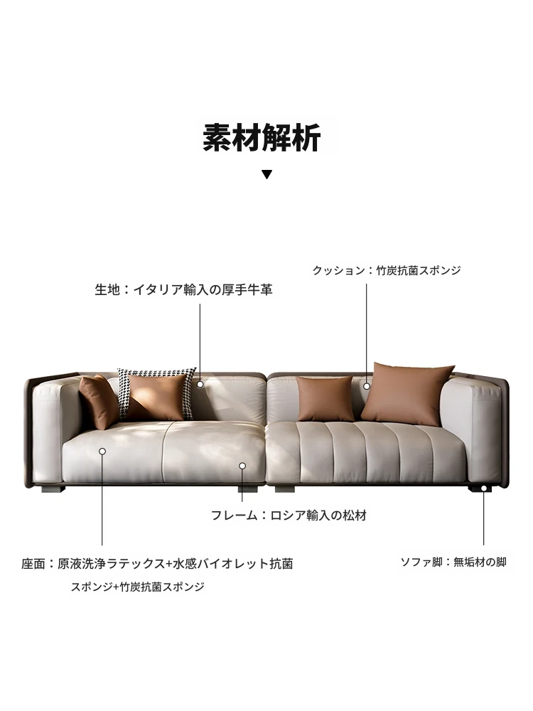 【接触面版】イタリア輸入厚手牛革 多人数用2.6メートル+オットマン フレーム生涯保証