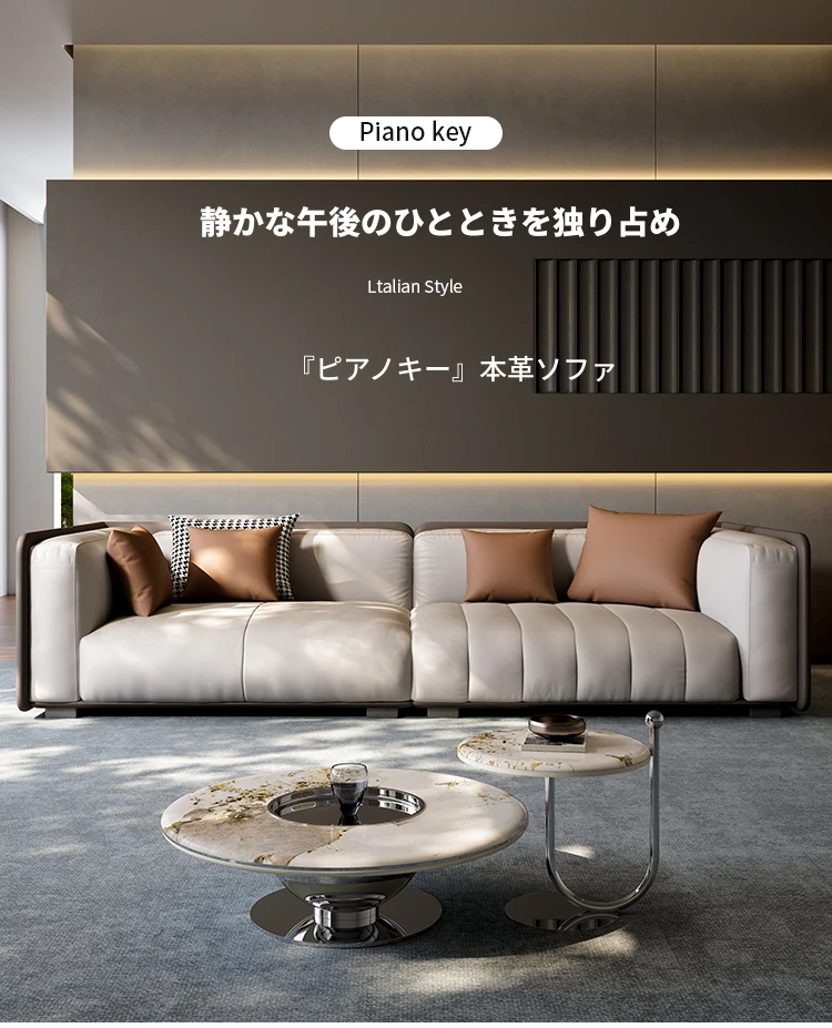 【全カバー版】イタリア輸入厚手牛革 多人数用2.6メートル+オットマン フレーム生涯保証