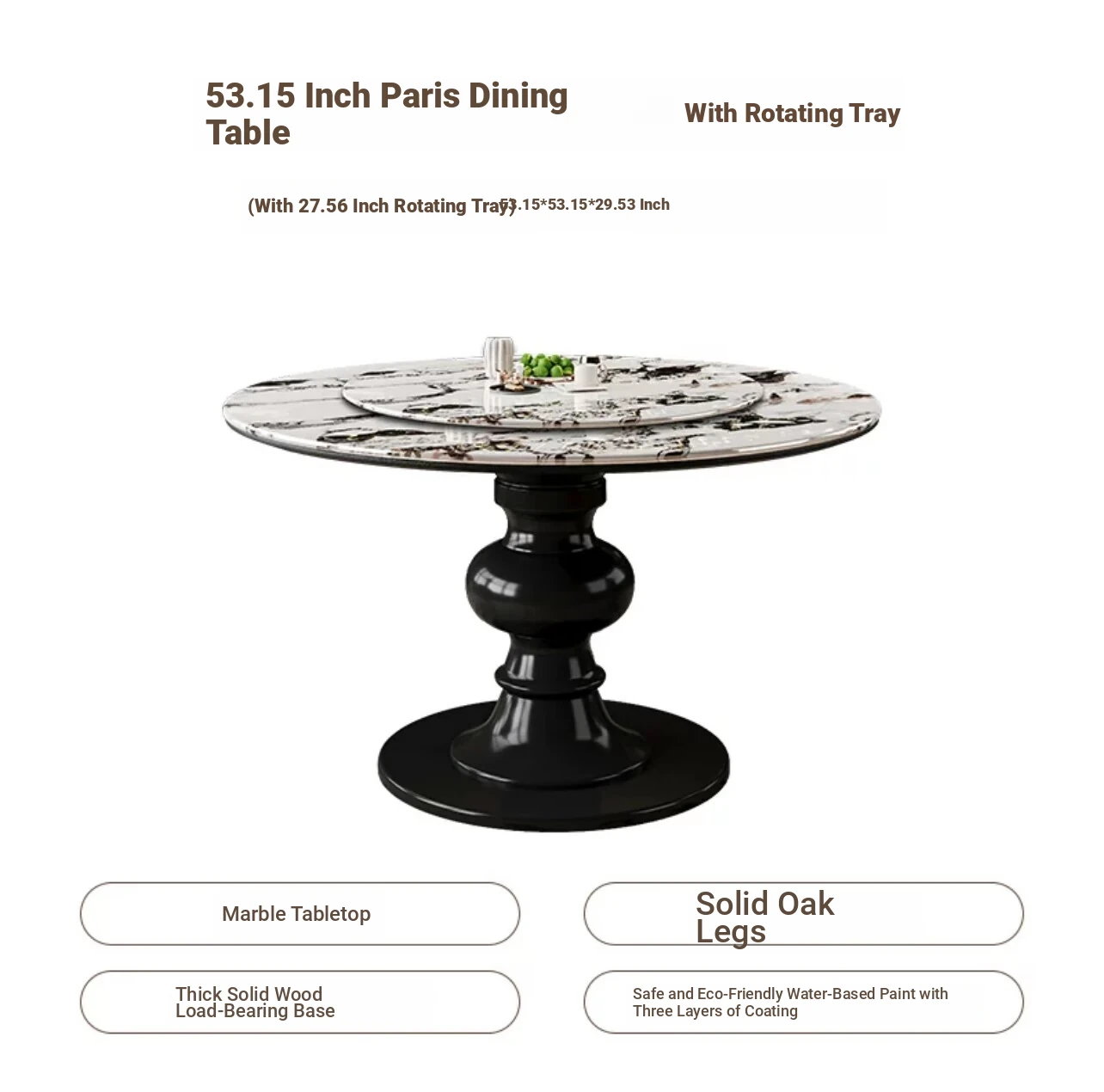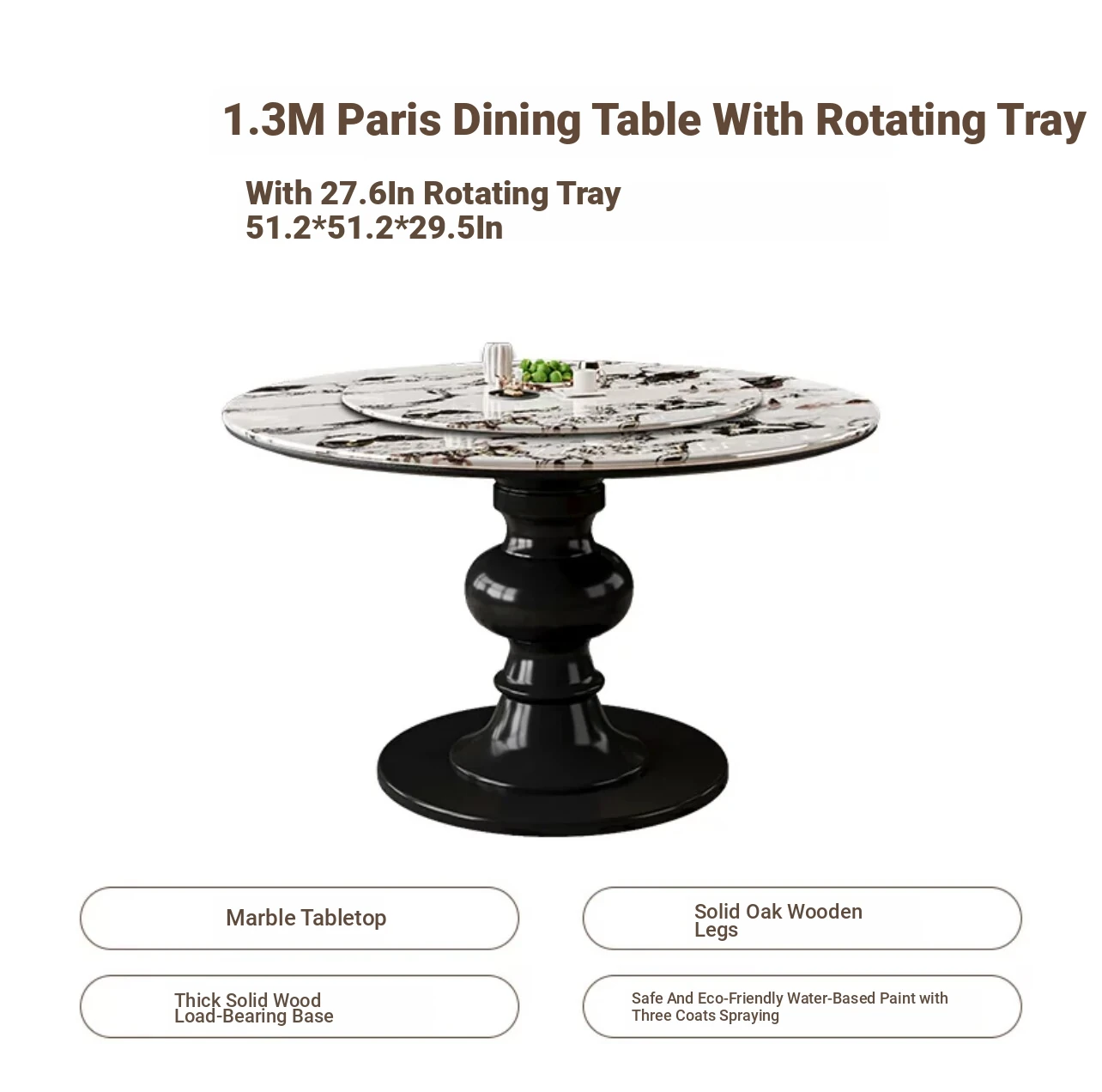 宝格丽ホワイト135cm直径円卓+回転盤全托実木底板