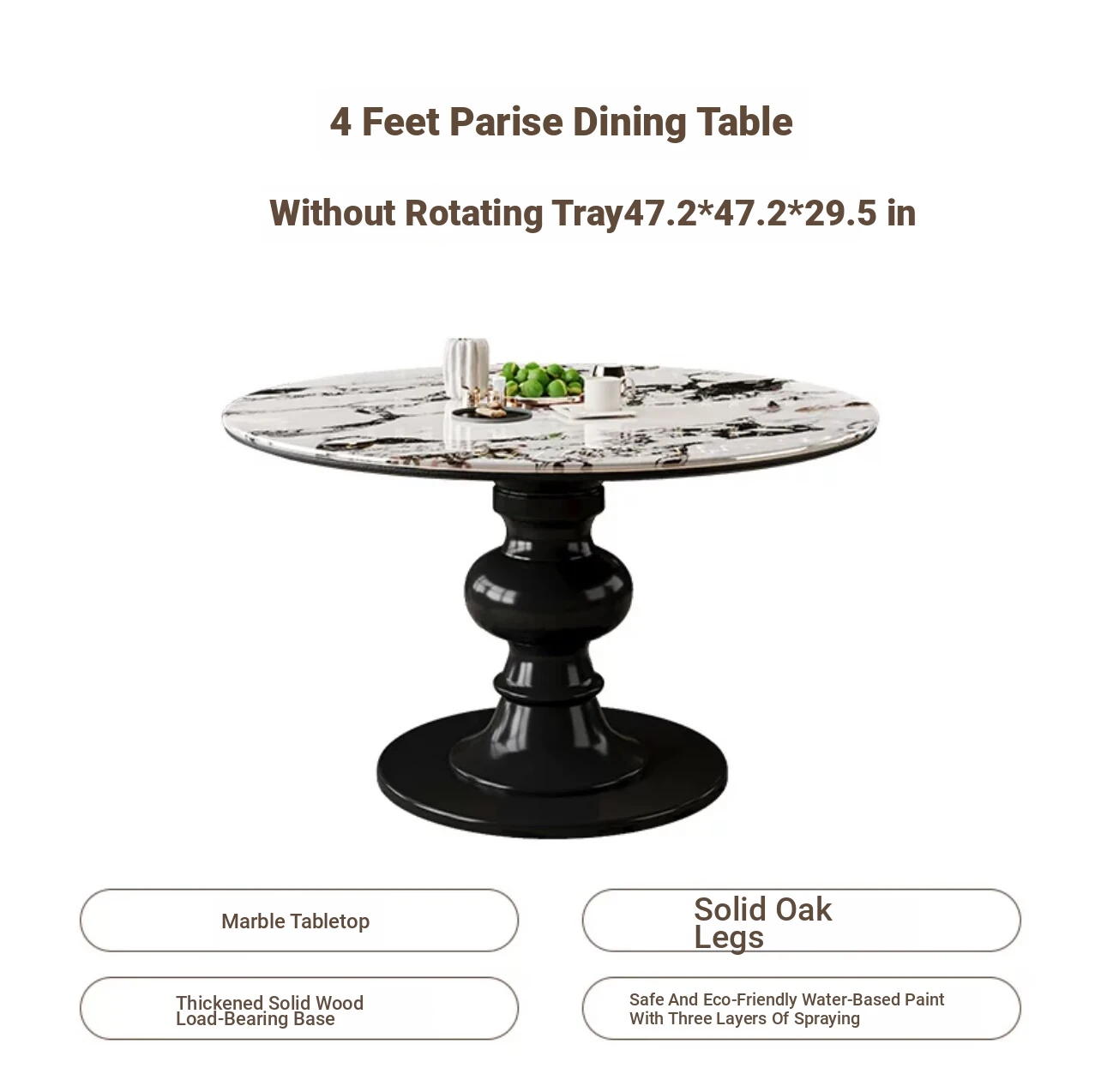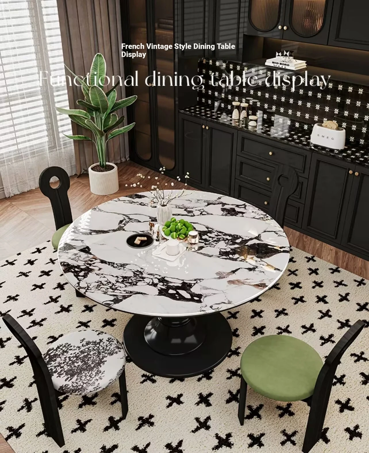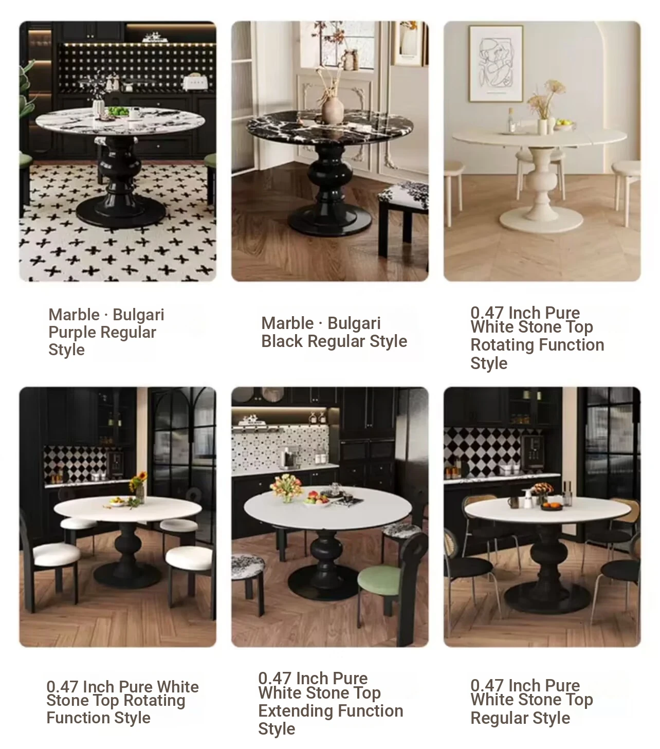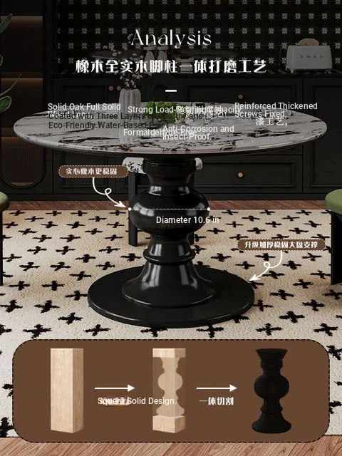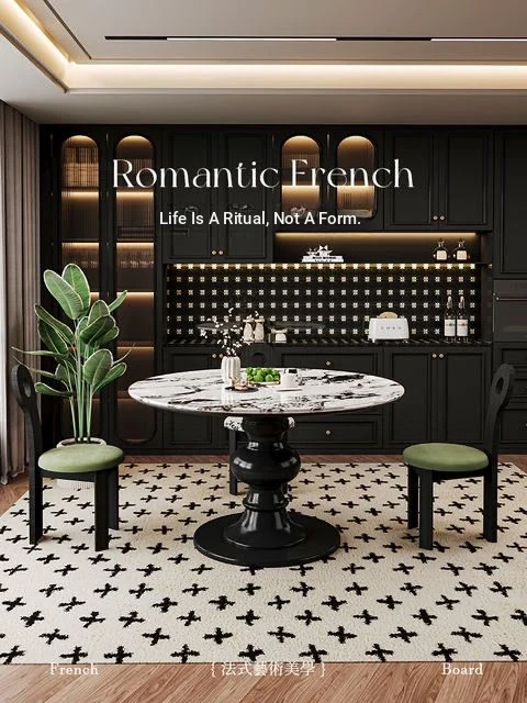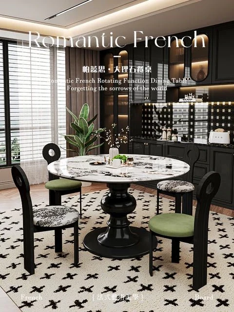 2024年新作!フランス風レトロ・ブルガリ大理石丸型ダイニングテーブル - 小スペースにも最適なクリームカラーの天然木製テーブルで、家族との素敵なひとときを演出!