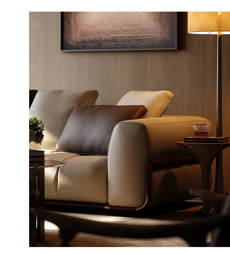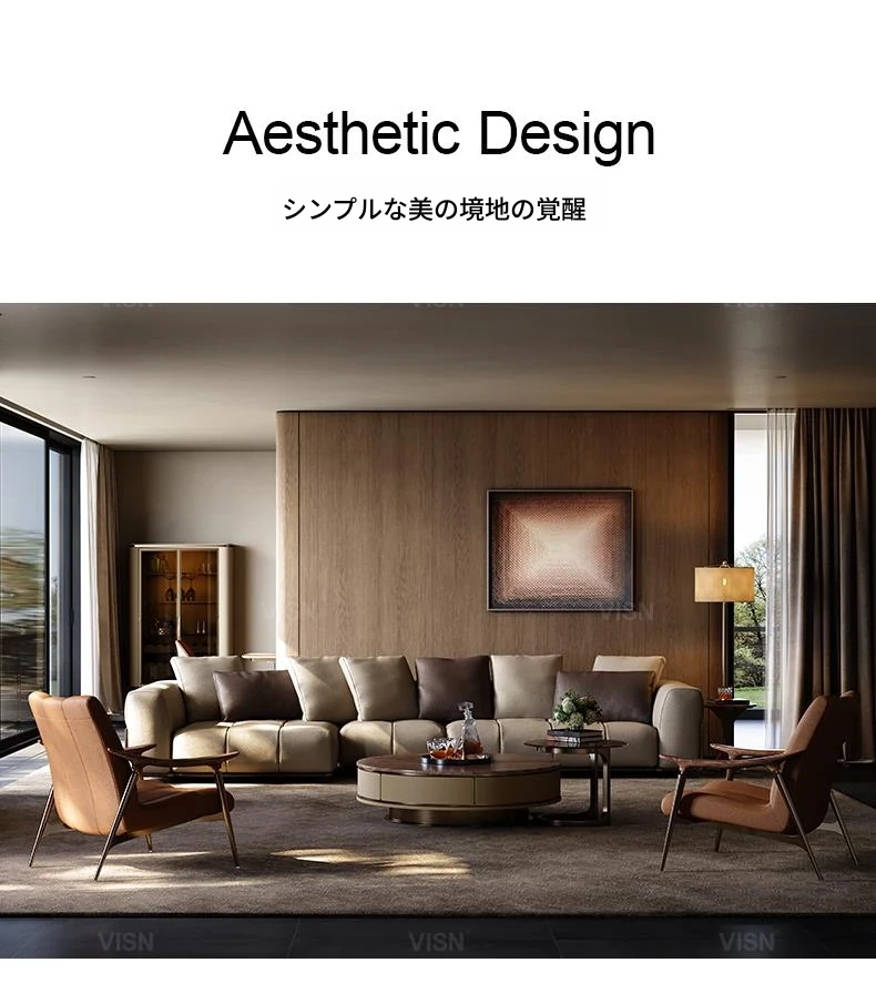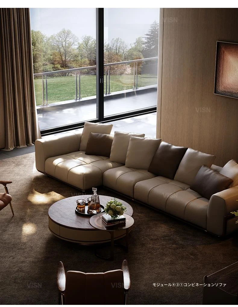2024年新作!イタリアンミニマル本革ソファ - モダンなデザインで別荘全体をスタイリッシュに演出!リビングにぴったりの洗練された選択。