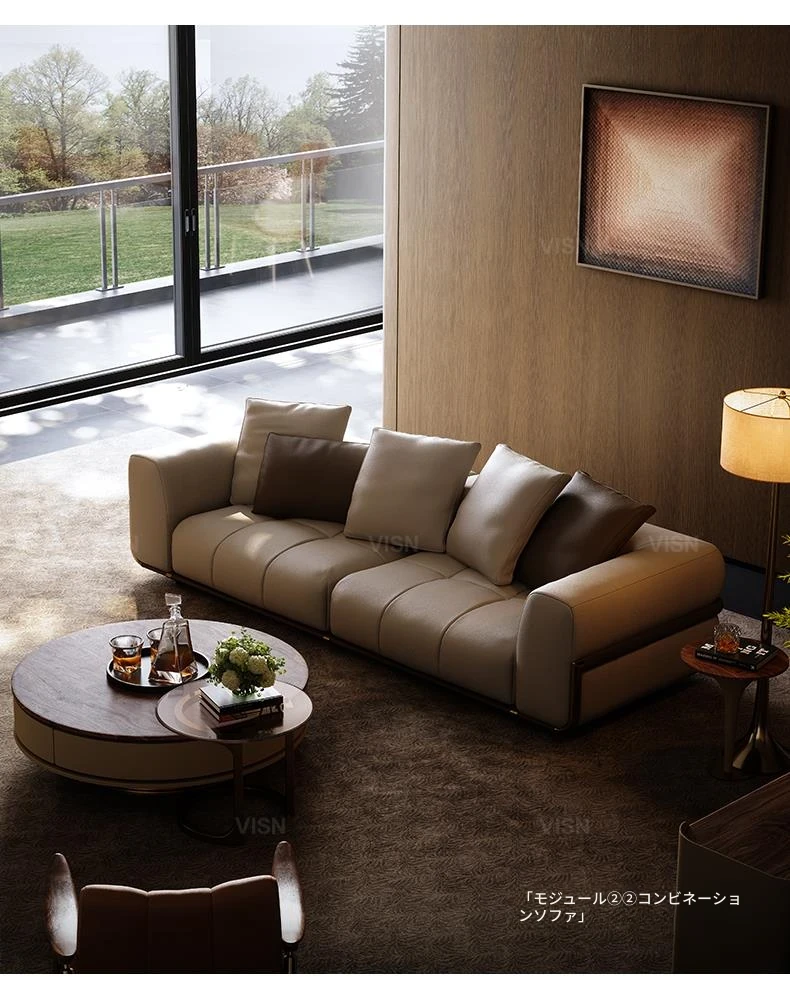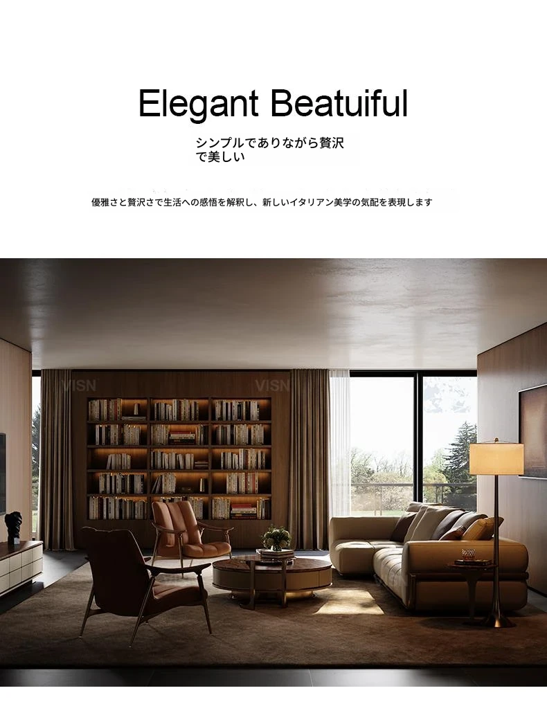 2024年新作!豪華なイタリアンレザーソファ - 大平層のリビングに最適な別荘用コーナーソファ、全室コーディネート可能!洗練されたデザインで、快適さとスタイルを両立。あなたの空間を格上げします!