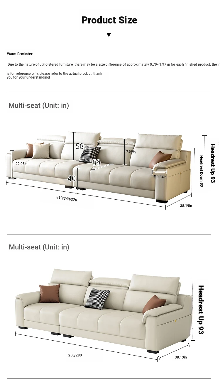 [Contact Surface Edition] Italian Import thickened Cowhide Multi-Person 133.86 in(Frame Lifetime Warranty)