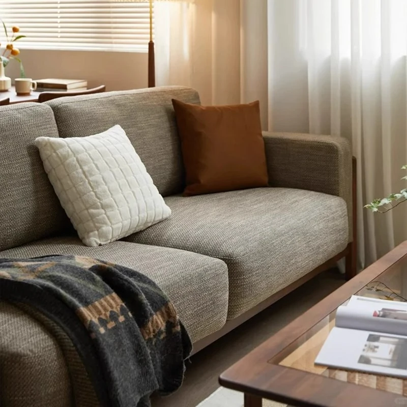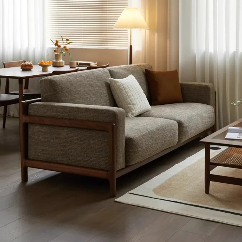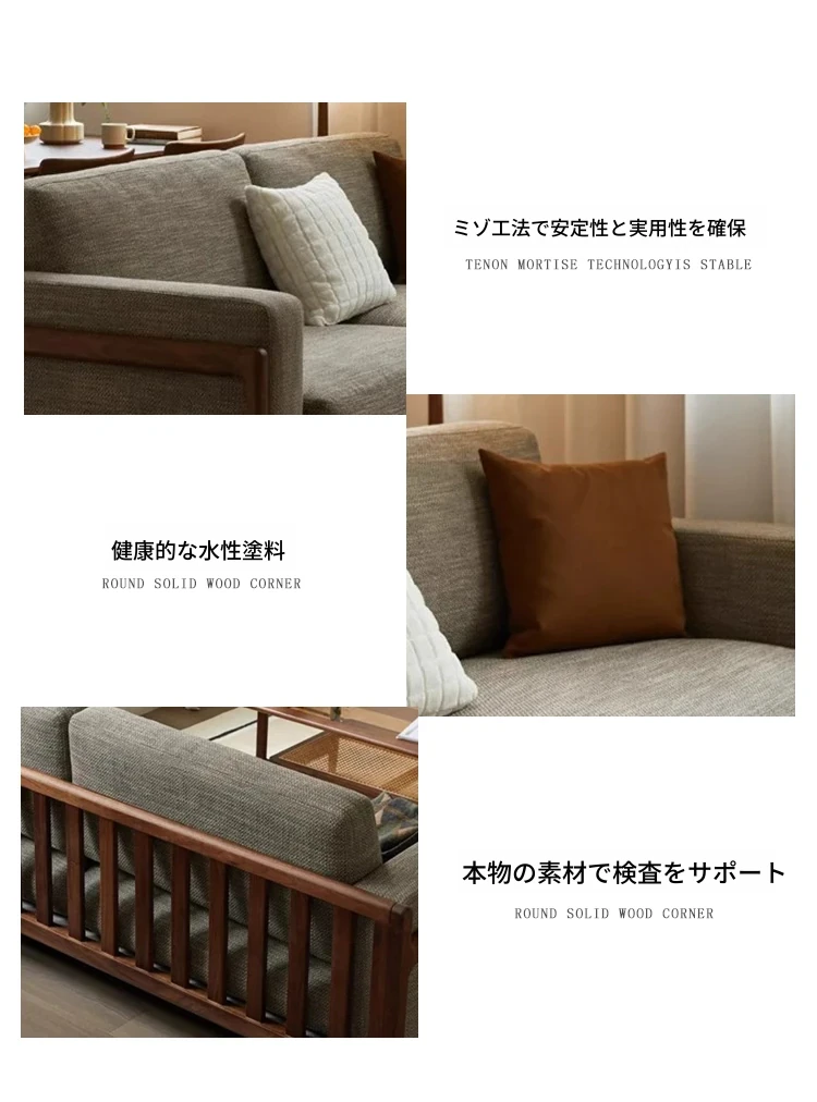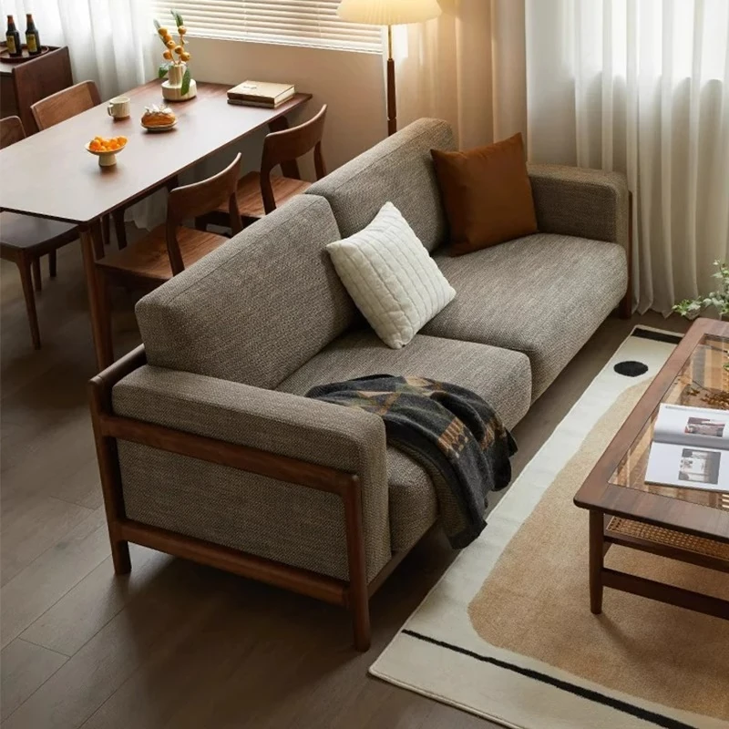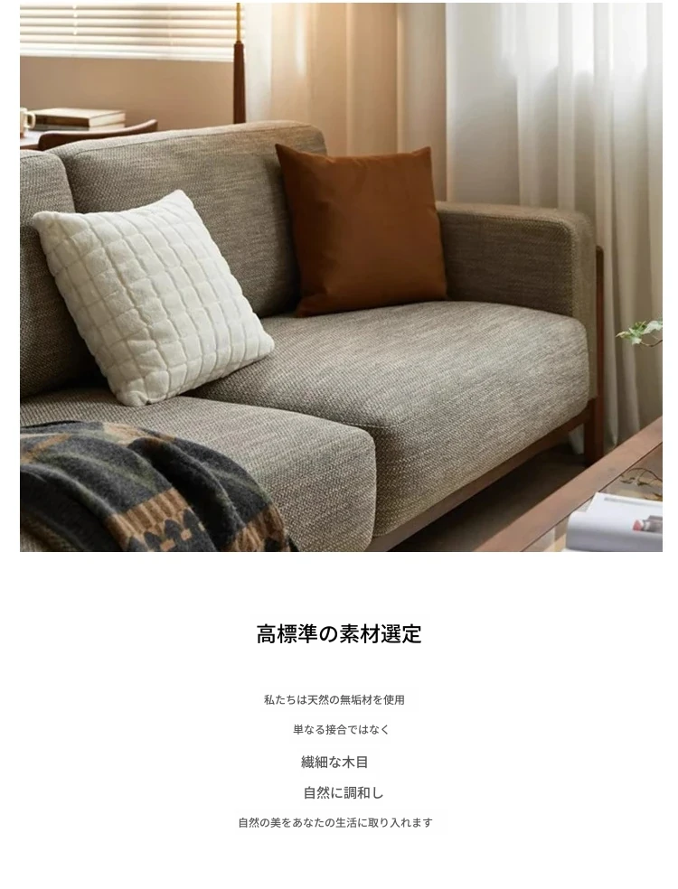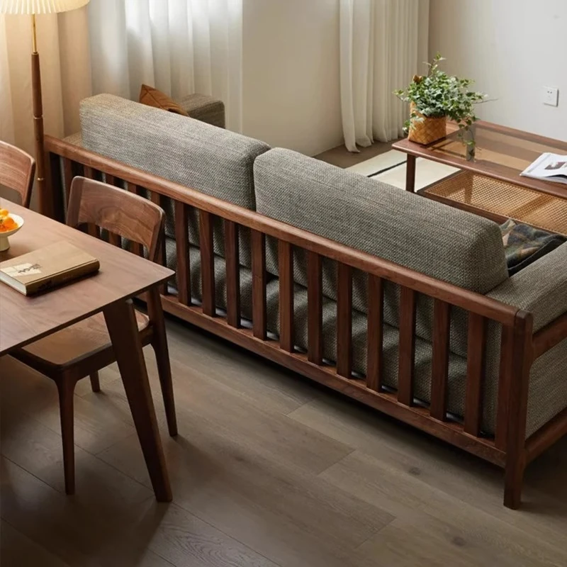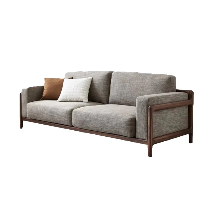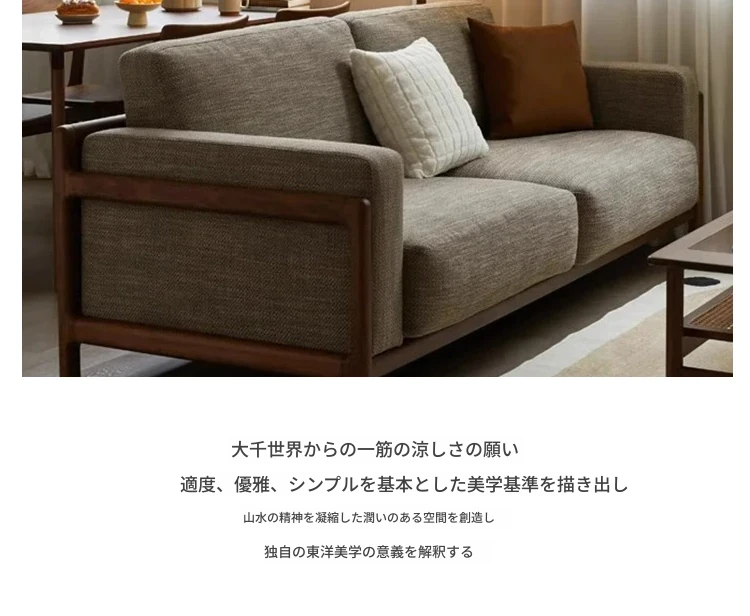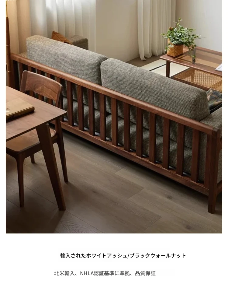 2025年最新デザイン!現代風の天然木製ソファ - 新中式の禅の美学、ウォールナット&ホワイトアッシュの生地使用。ホテルや民宿、オフィスにぴったりの高級家具。心地よい空間を演出します!