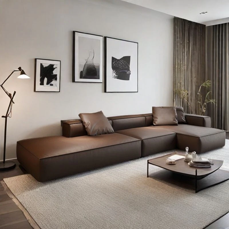 2025年新作!本革トーフブロック型上質牛革ソファ|リビングやホテル、アパートに最適なL字型|シンプルで洗練されたデザインが魅力!