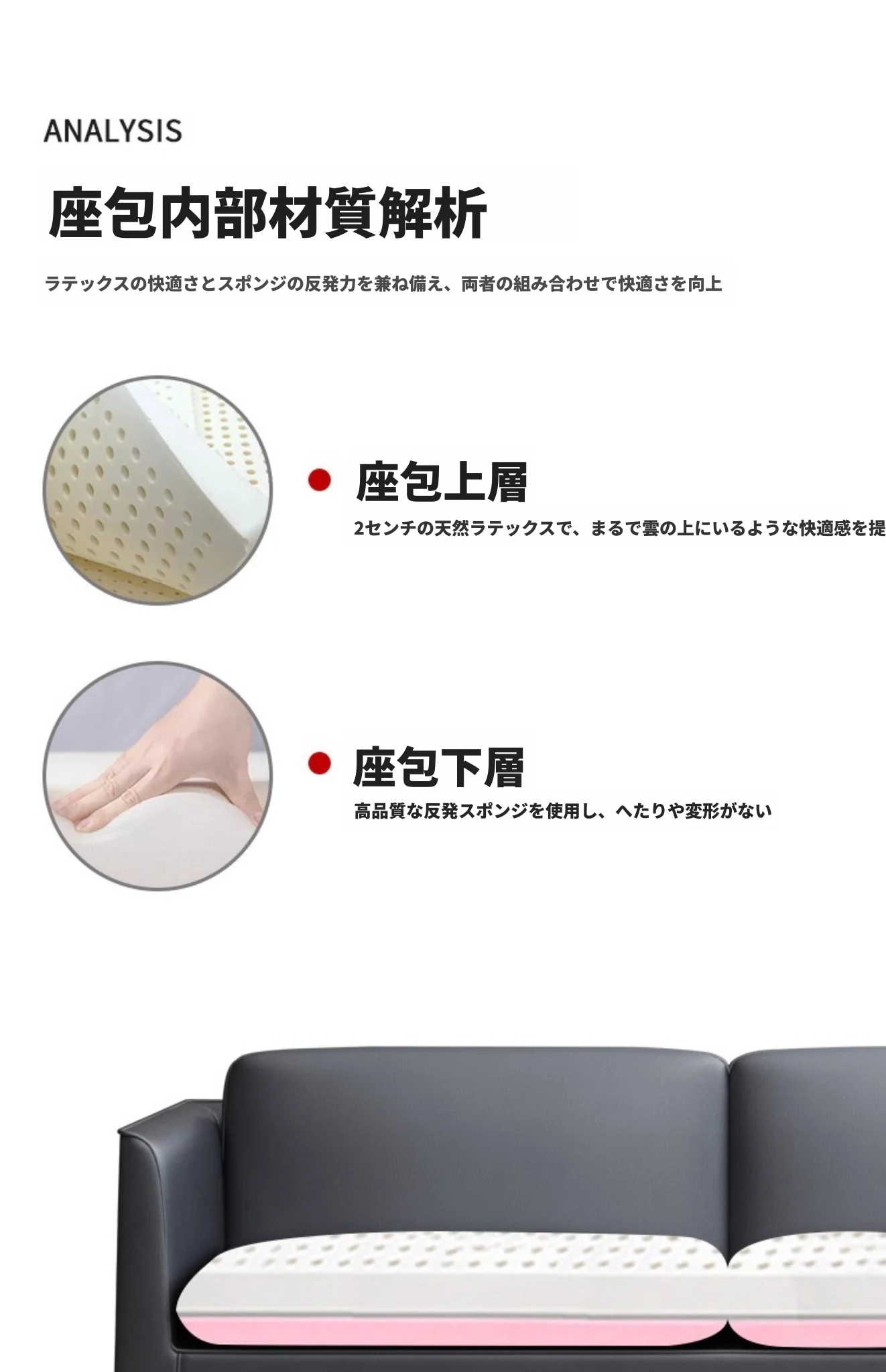 【一層の本革ラテックスタイプ】3人用【無料配送】