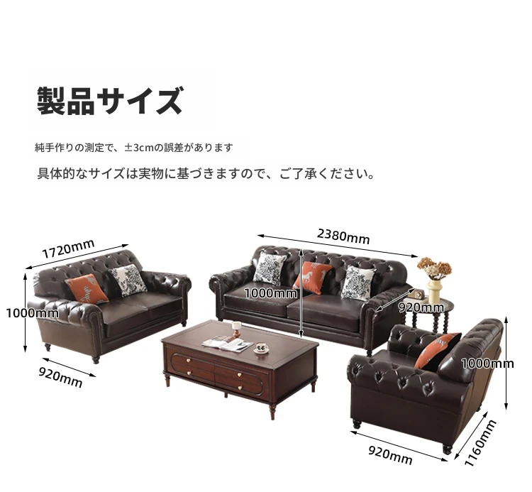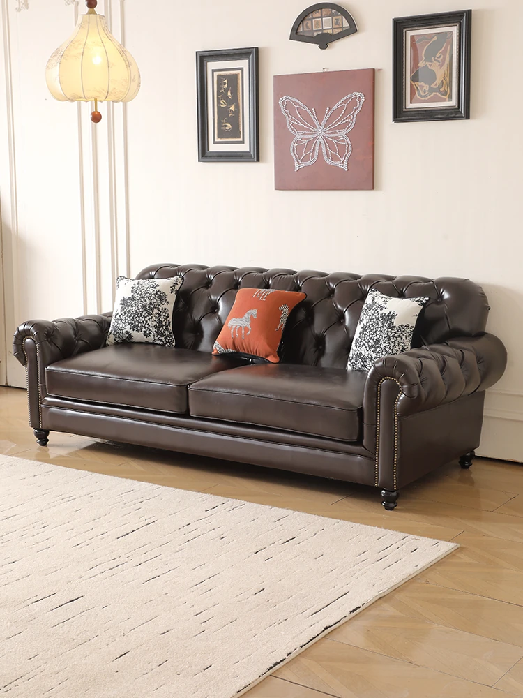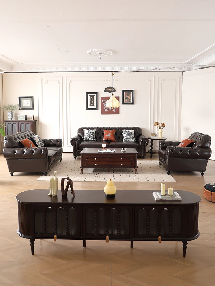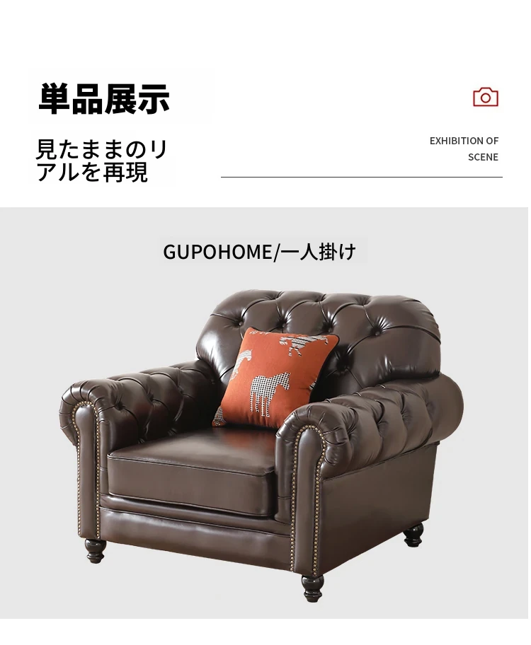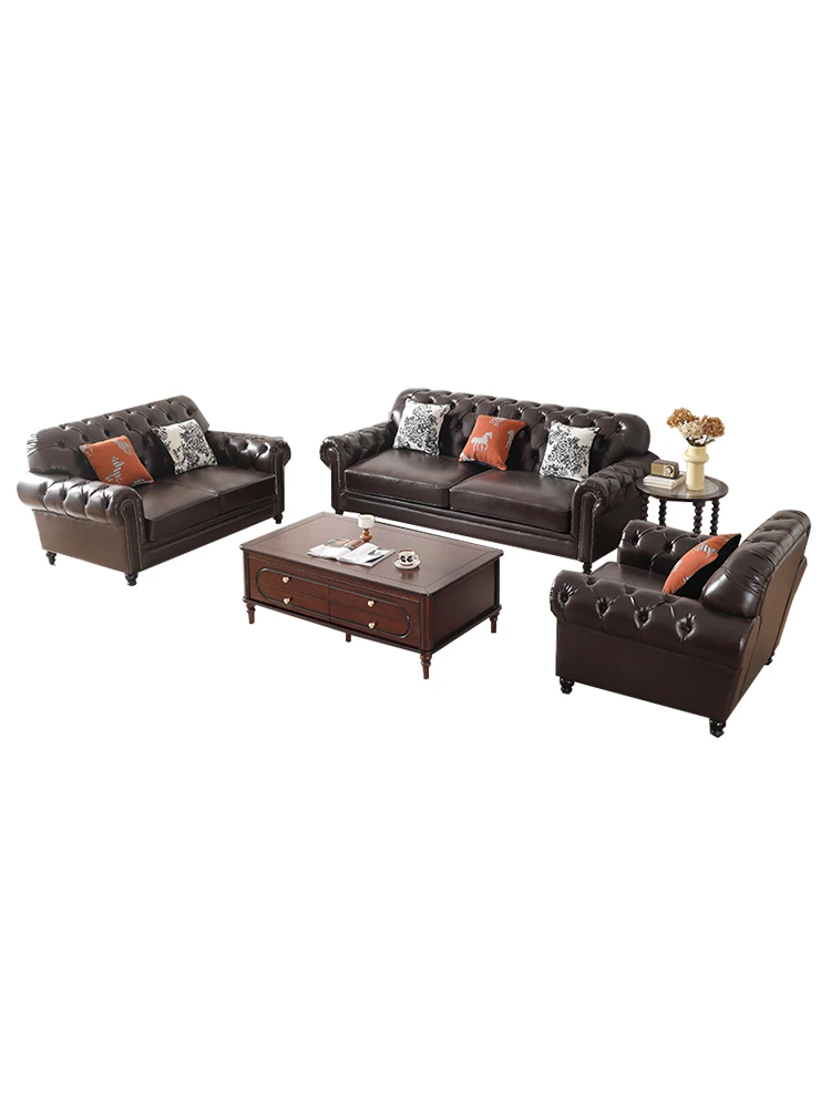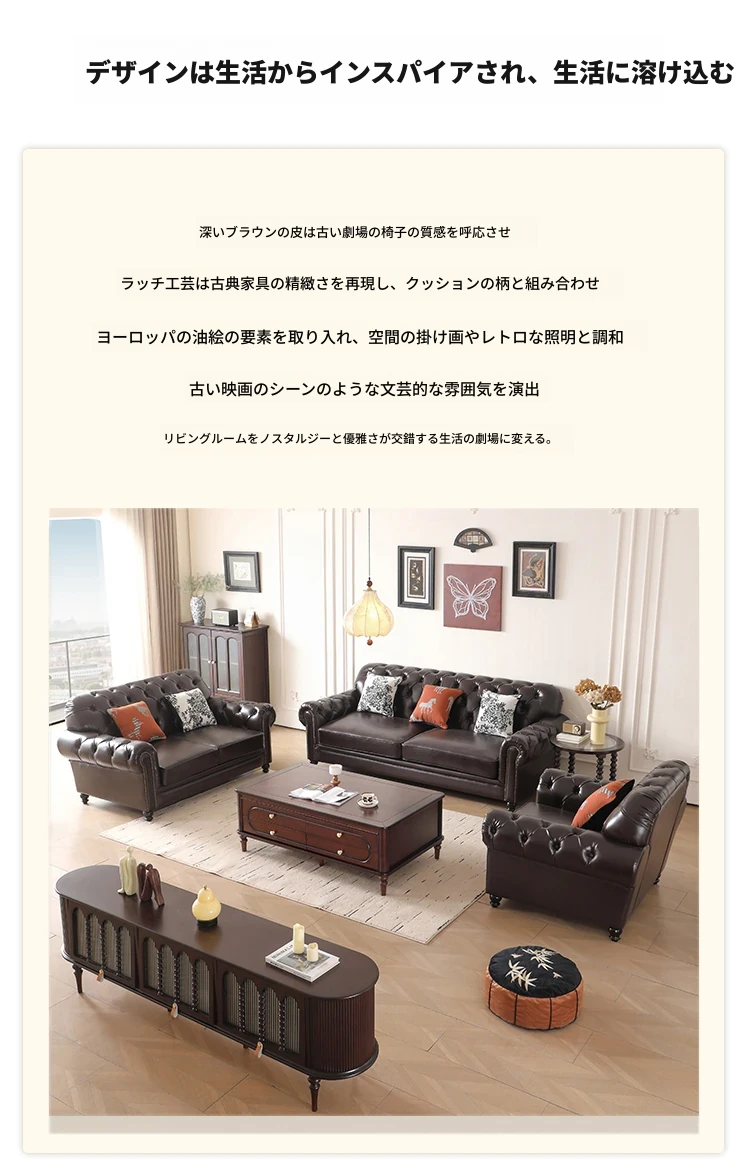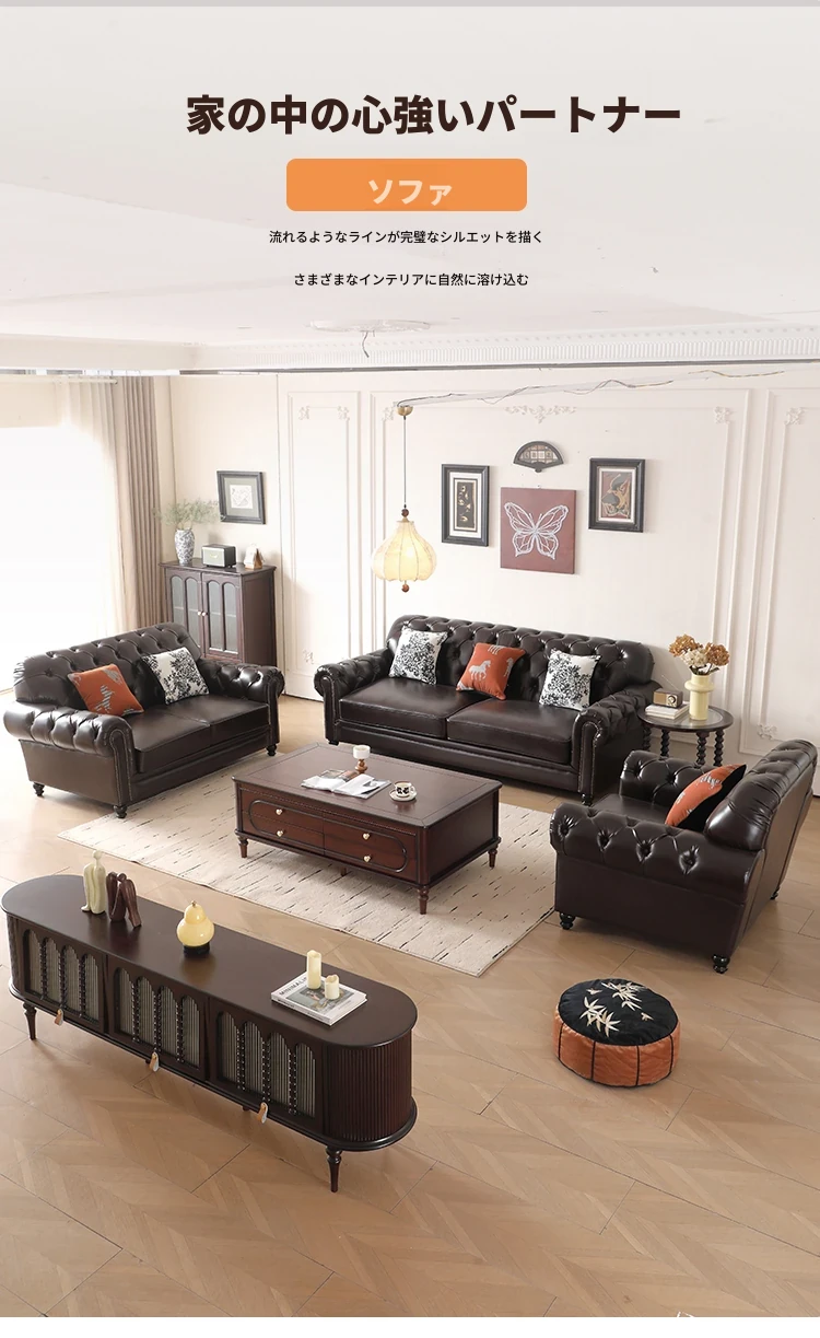 アメリカンカントリースタイルの本革ソファ|高級感溢れるリビング用|広々とした大部屋に最適な多人数用レジャーソファ|優れた快適性とスタイリッシュなデザインを兼ね備えた組み合わせソファ