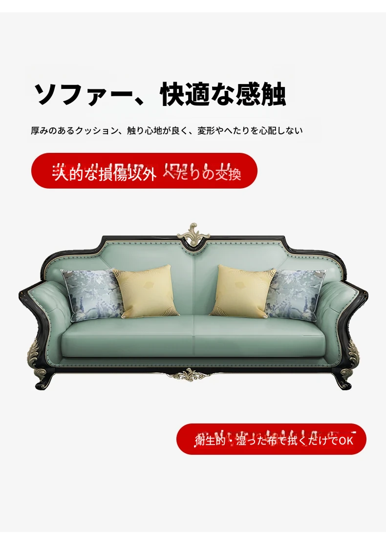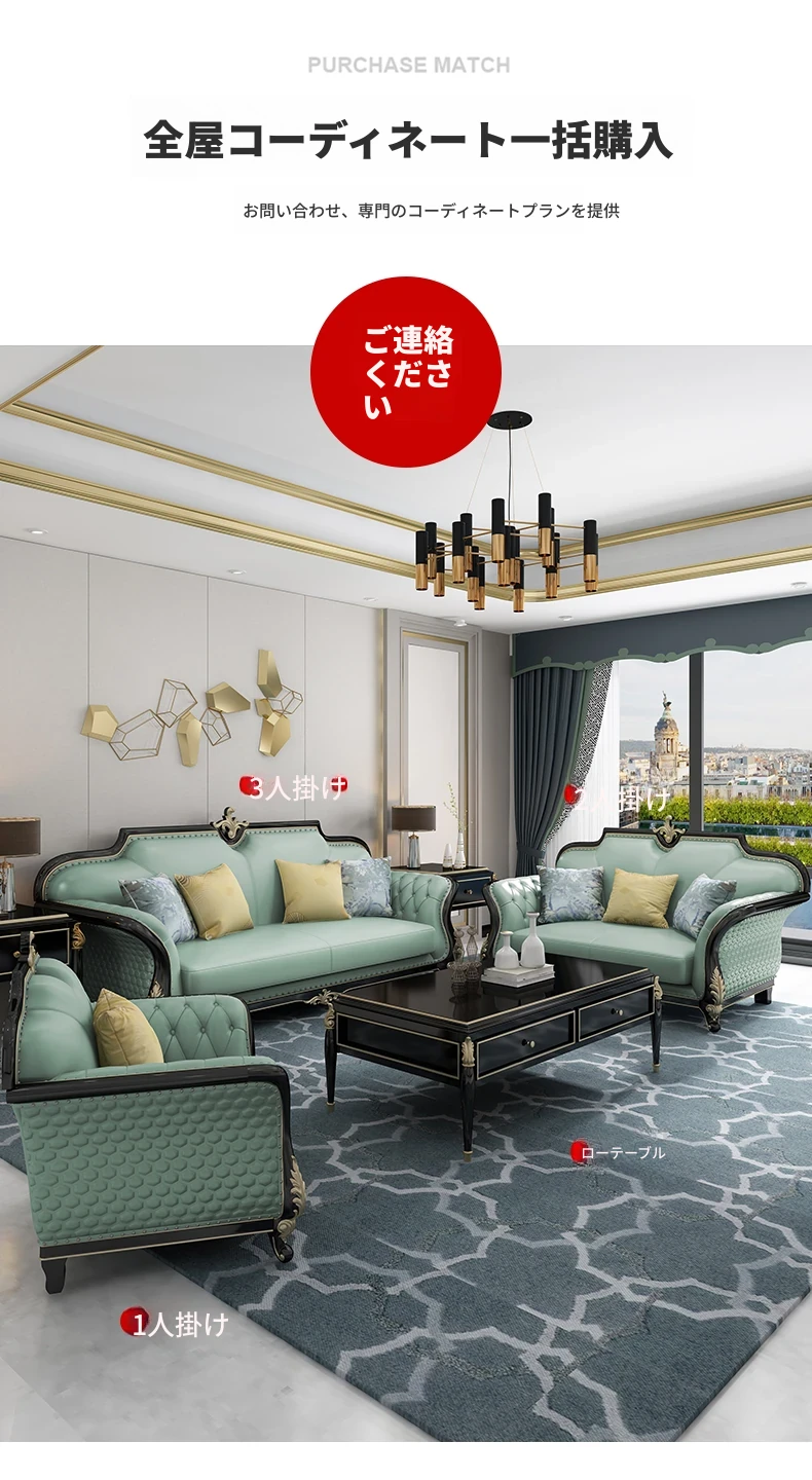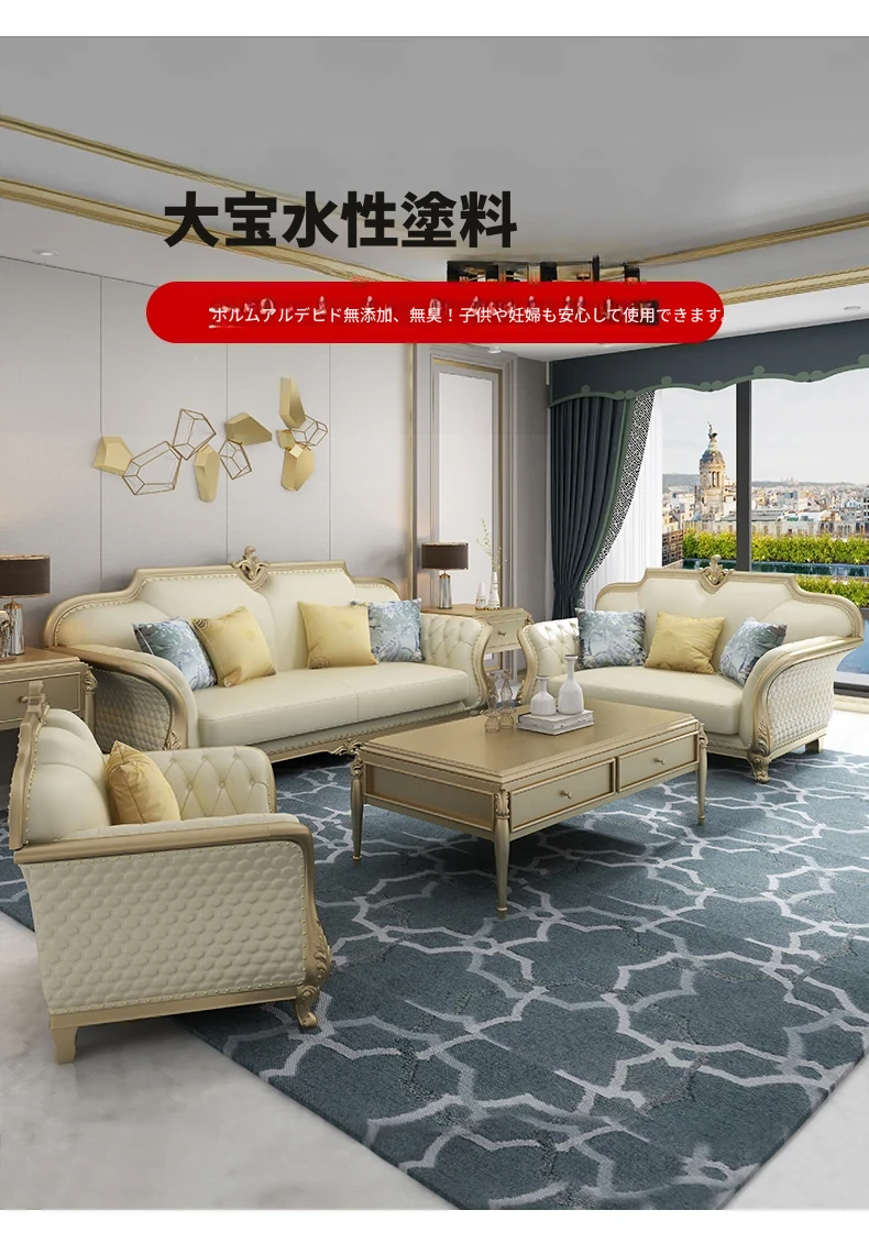 アメリカンスタイルのラグジュアリーソファセット - シンプルで高級感あふれるデザイン、リビングルームや広めの住居に最適!本革と無垢材を使用した贅沢な欧州スタイルのヴィラ向け。あなたの空間を格上げする一品です!