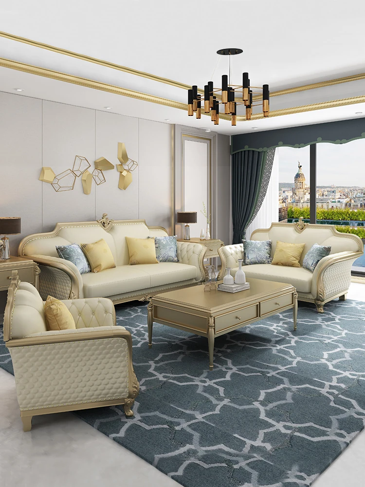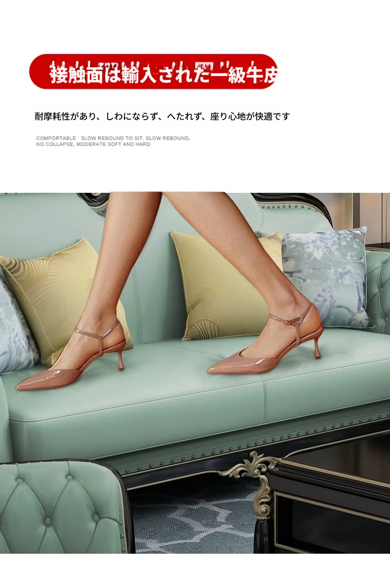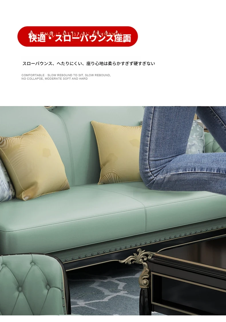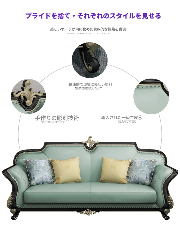アメリカンスタイルのラグジュアリーソファセット - シンプルで高級感あふれるデザイン、リビングルームや広めの住居に最適!本革と無垢材を使用した贅沢な欧州スタイルのヴィラ向け。あなたの空間を格上げする一品です!