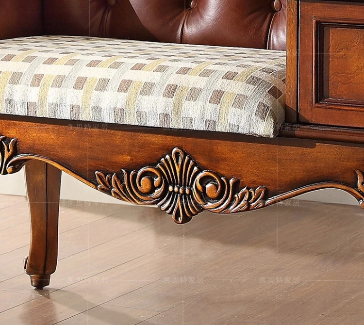 アメリカンスタイルの無垢材彫刻付き貴妃椅子|エレガントな電話椅子|欧風デザインの貴妃椅子|素朴なカントリー調無垢材電話椅子|おしゃれで快適なリラックス空間を演出!
