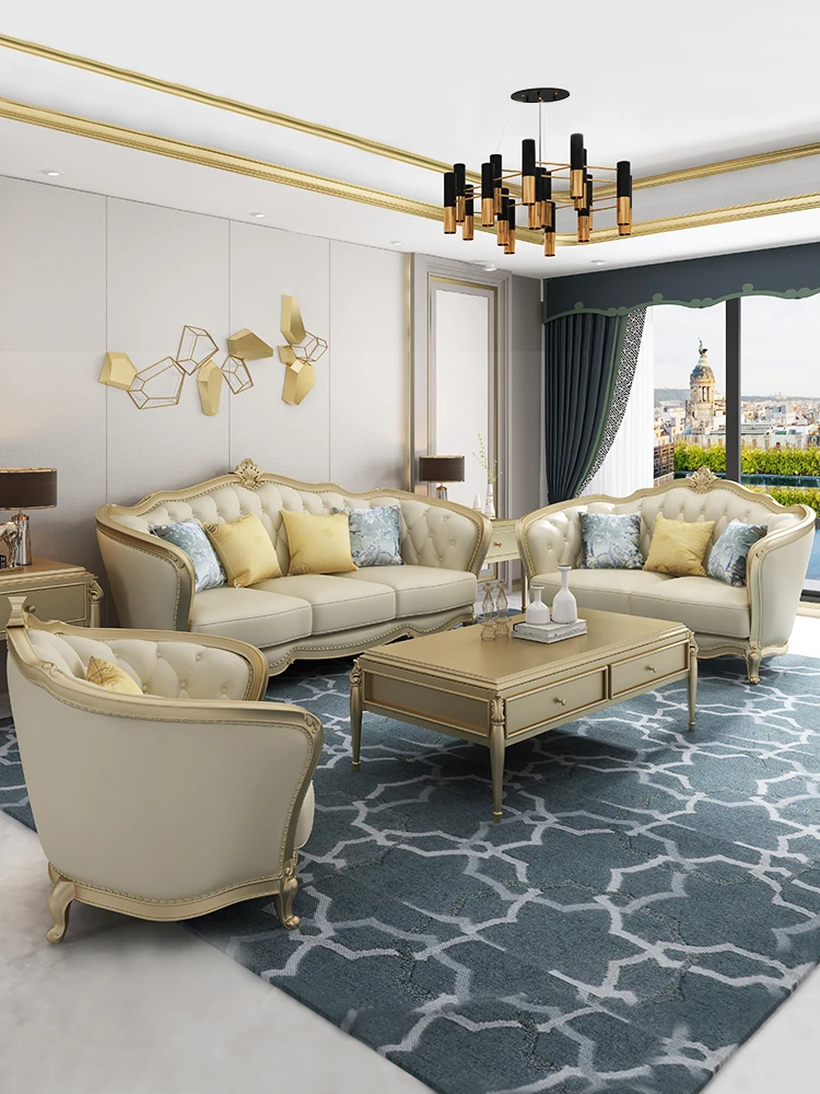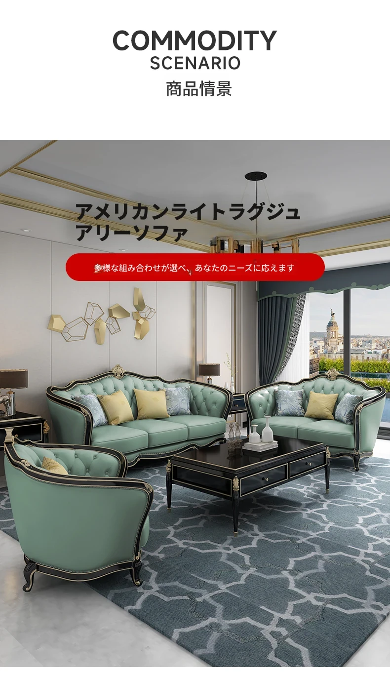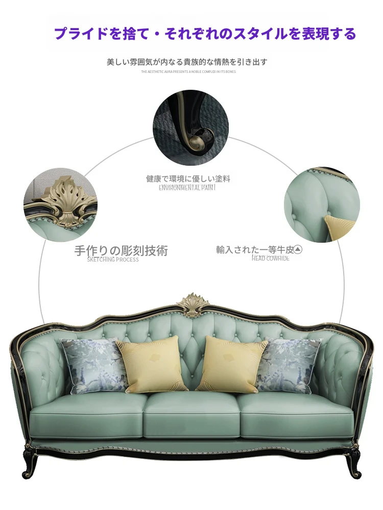 アメリカンスタイルのラグジュアリーソファ!本革製の123コンビネーション、モダンでシンプルな田舎風デザイン。高級感あふれる無垢材使用の欧風スタイルで、あなたのリビングを特別な空間に演出します。