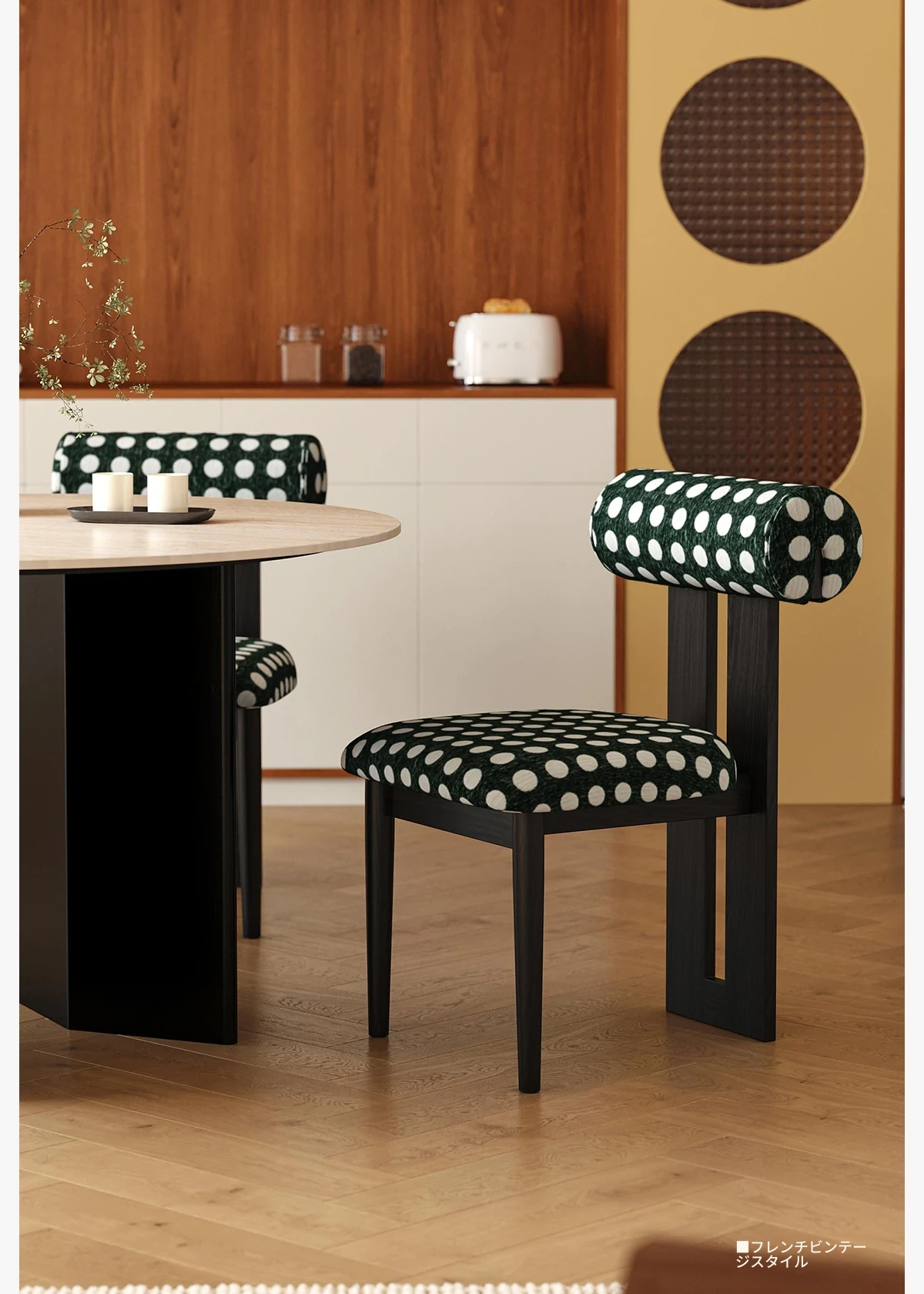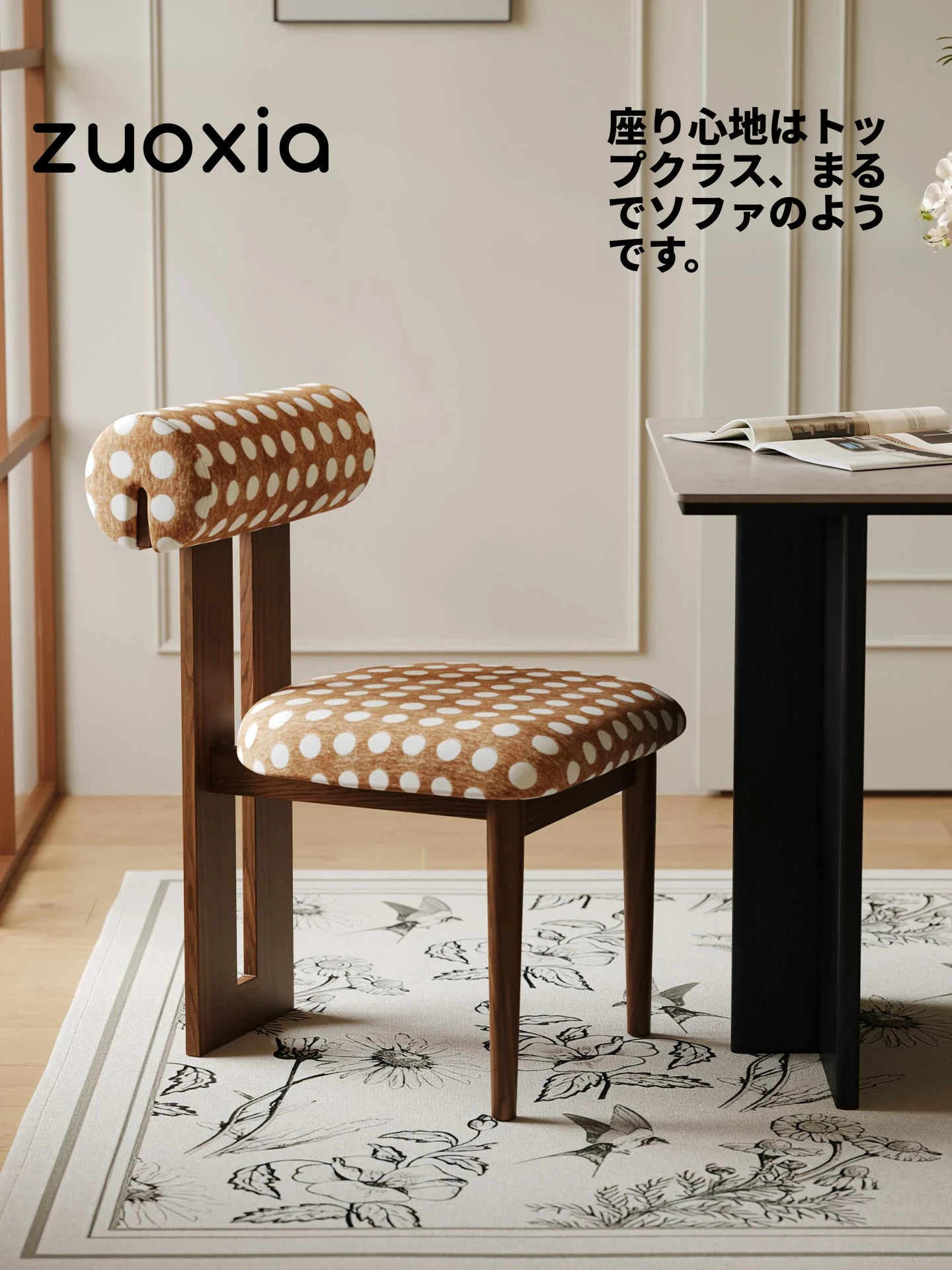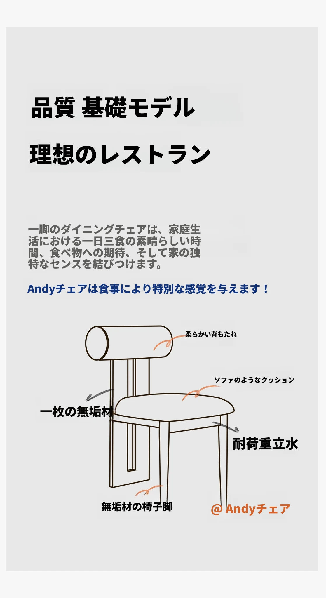 左下Andy フレンチヴィンテージスタイルの無垢材ダイニングチェア - ソフトパッド付き背もたれで快適さを追求。中古風の軽やかなラグジュアリー感を演出する高級レストラン用ダイニングチェア。