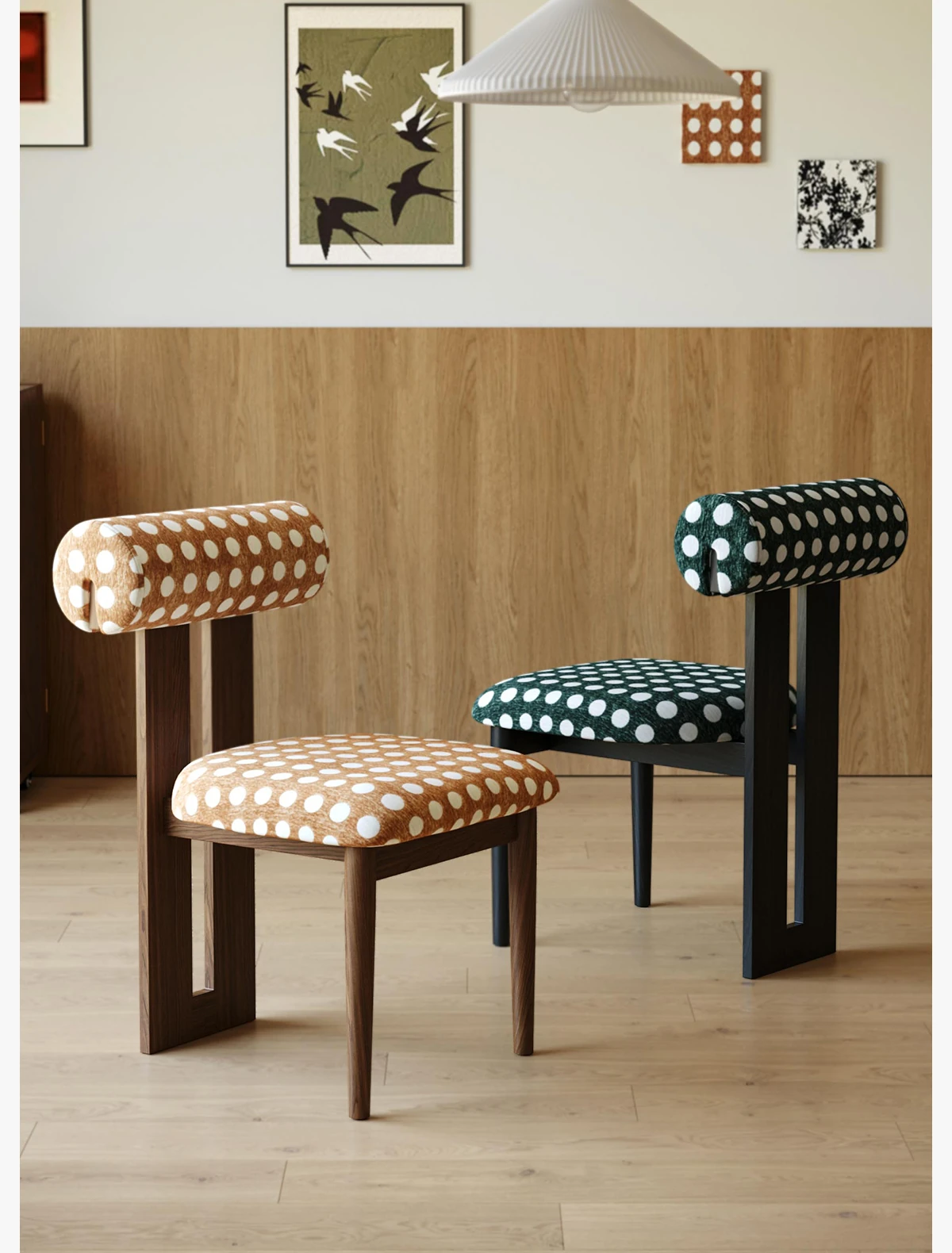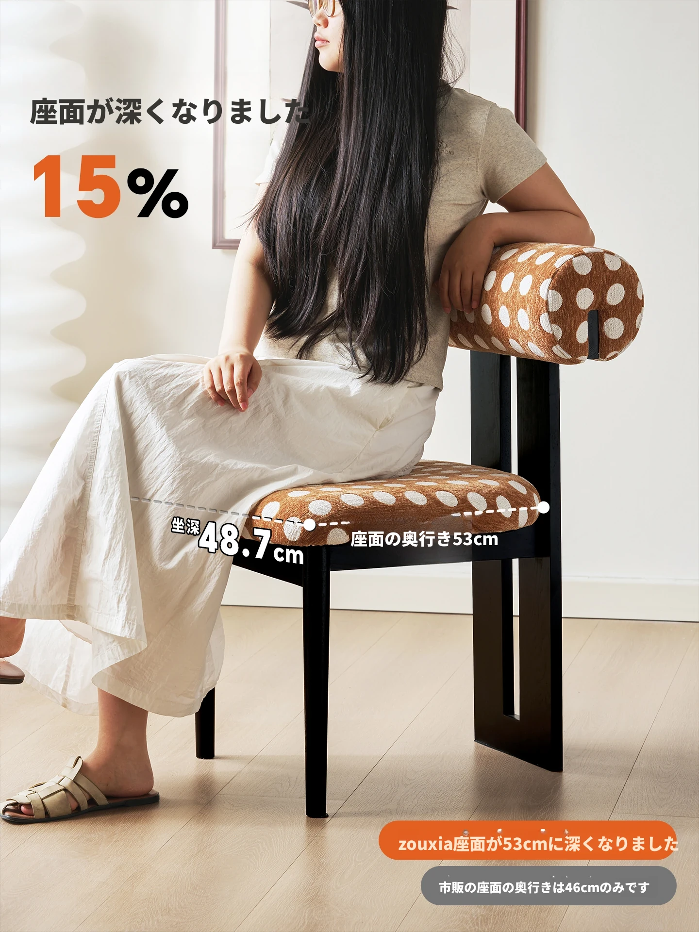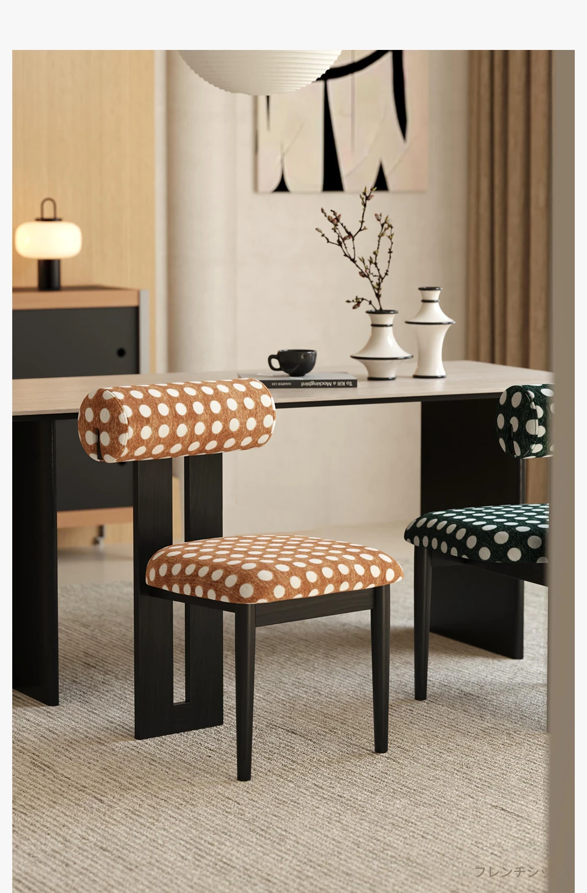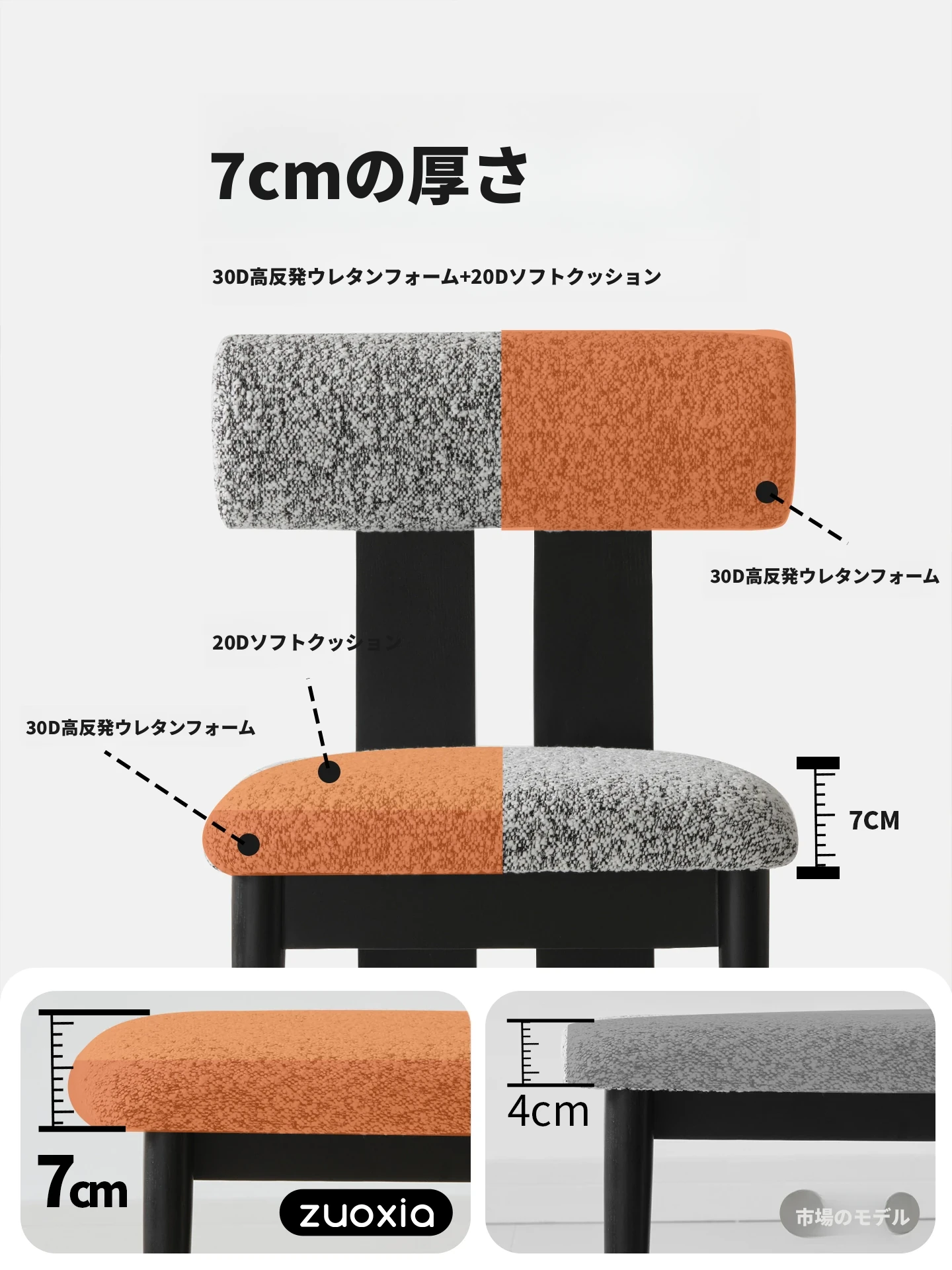 左下Andy フレンチヴィンテージスタイルの無垢材ダイニングチェア - ソフトパッド付き背もたれで快適さを追求。中古風の軽やかなラグジュアリー感を演出する高級レストラン用ダイニングチェア。