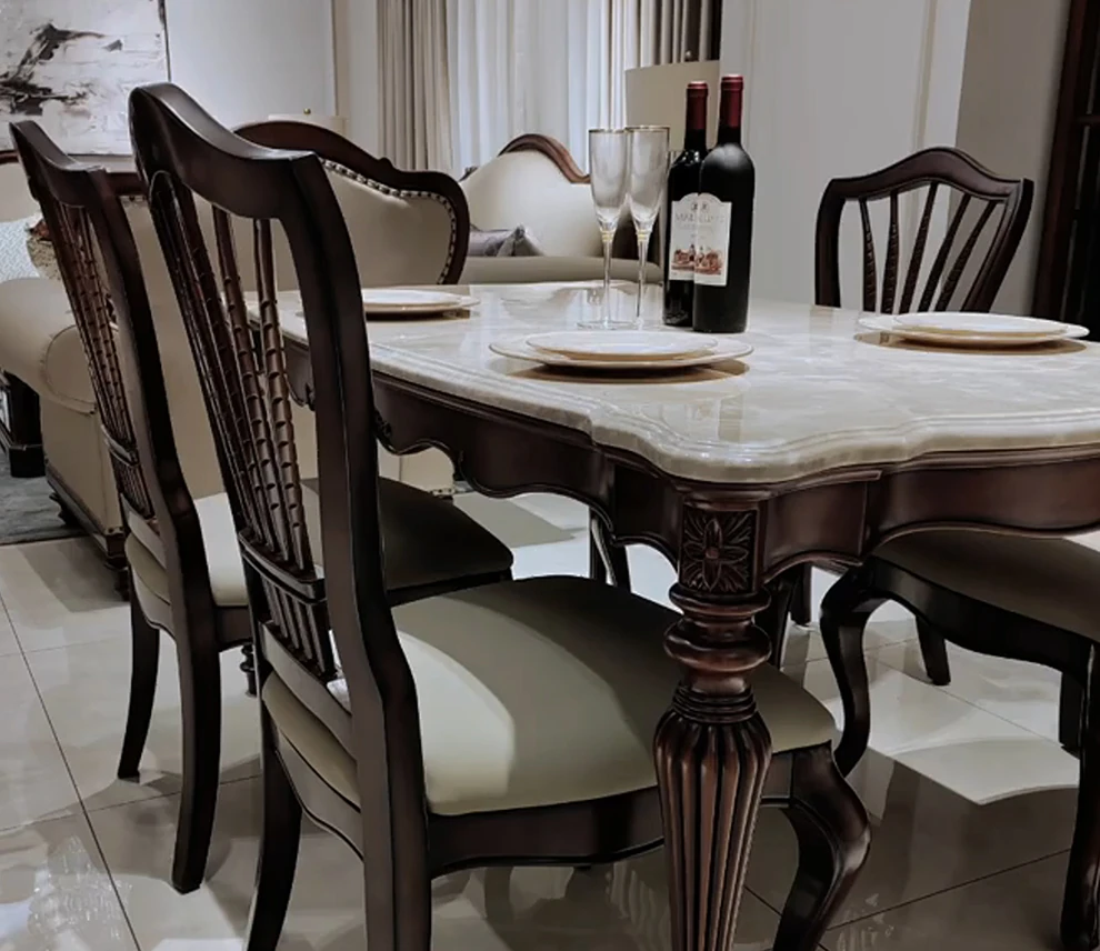 アメリカンクラシックのフルウッド大理石ダイニングテーブル&シンプルヨーロピアンスタイルの本革ダイニングチェア!自由に組み合わせ可能、上質な木材とエレガントなデザインでおしゃれな食卓を演出します。