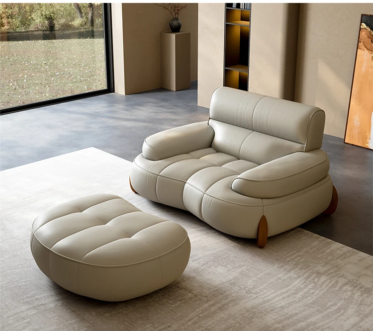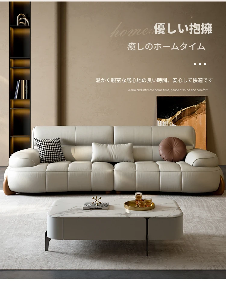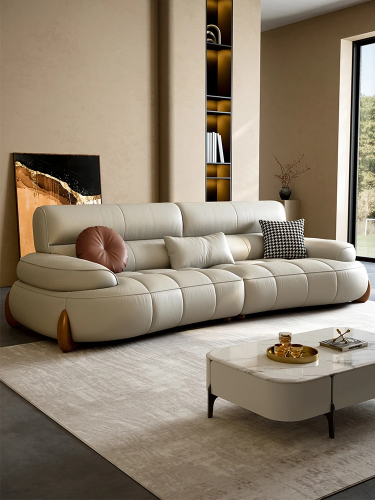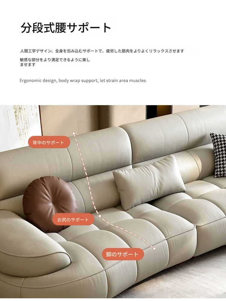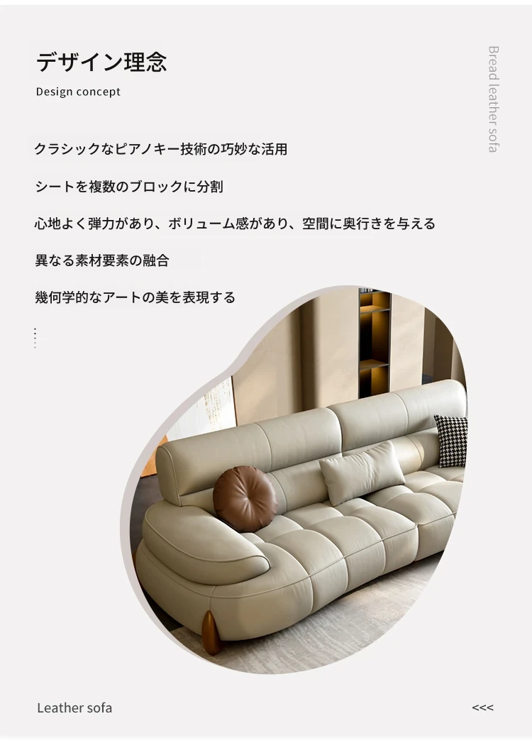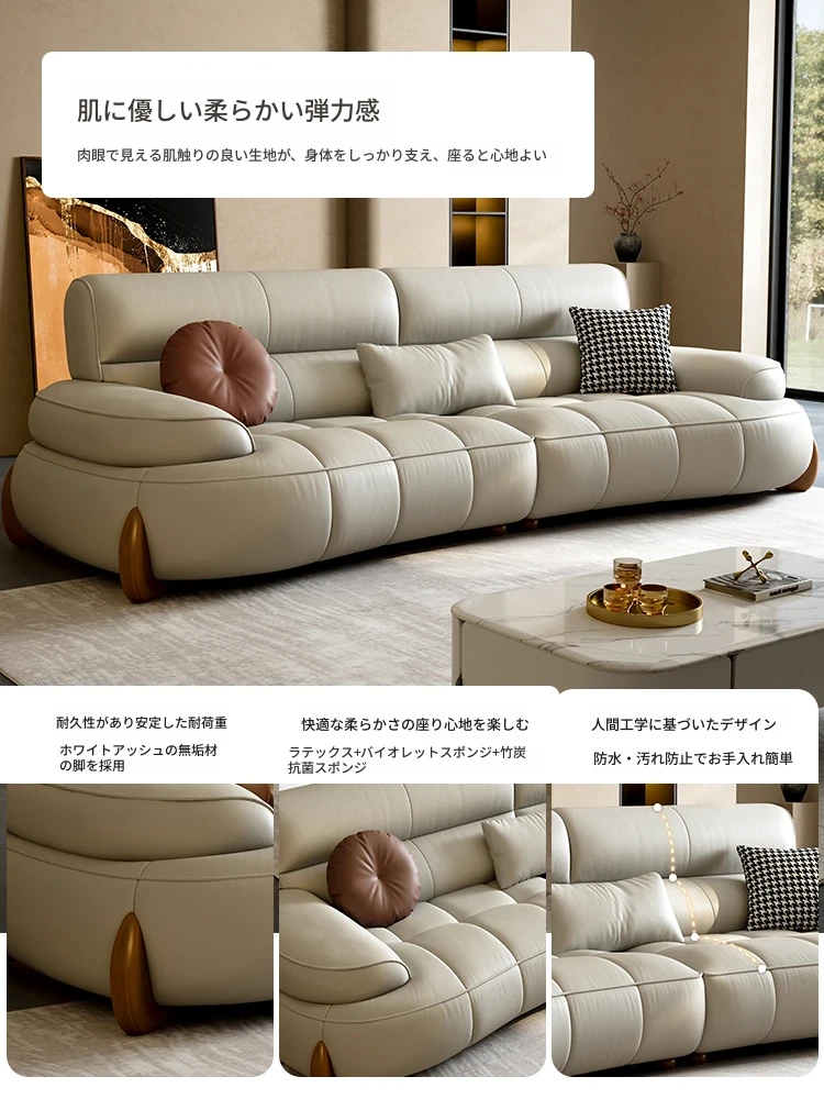 本革製クリーム風リビング用小型イタリアンミニマルデザインの大きな座面を持つアーチ型レトロソファー