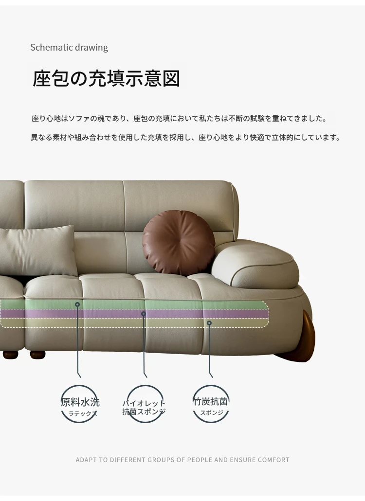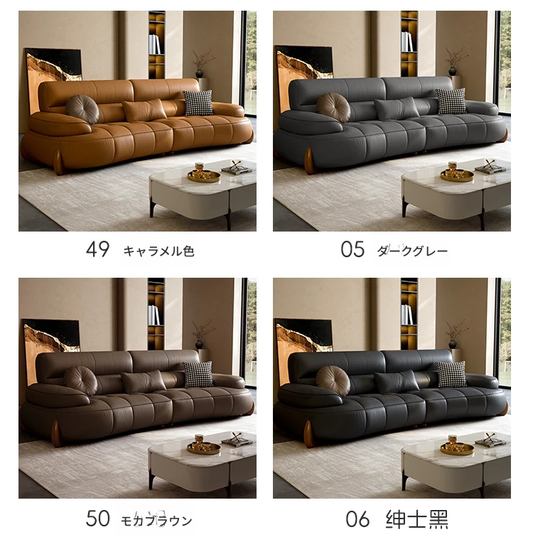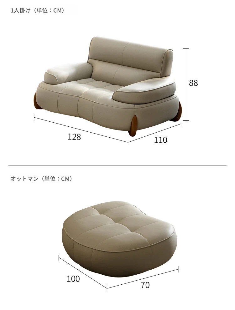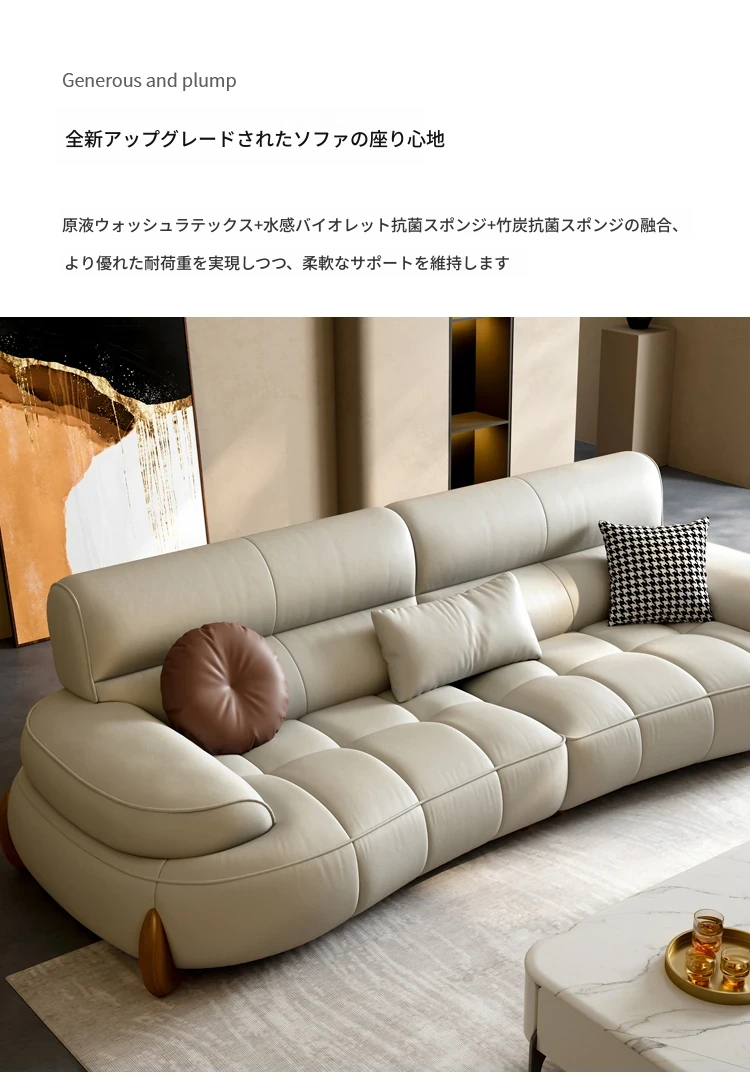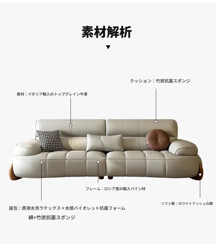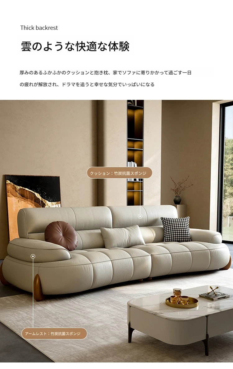 本革製クリーム風リビング用小型イタリアンミニマルデザインの大きな座面を持つアーチ型レトロソファー