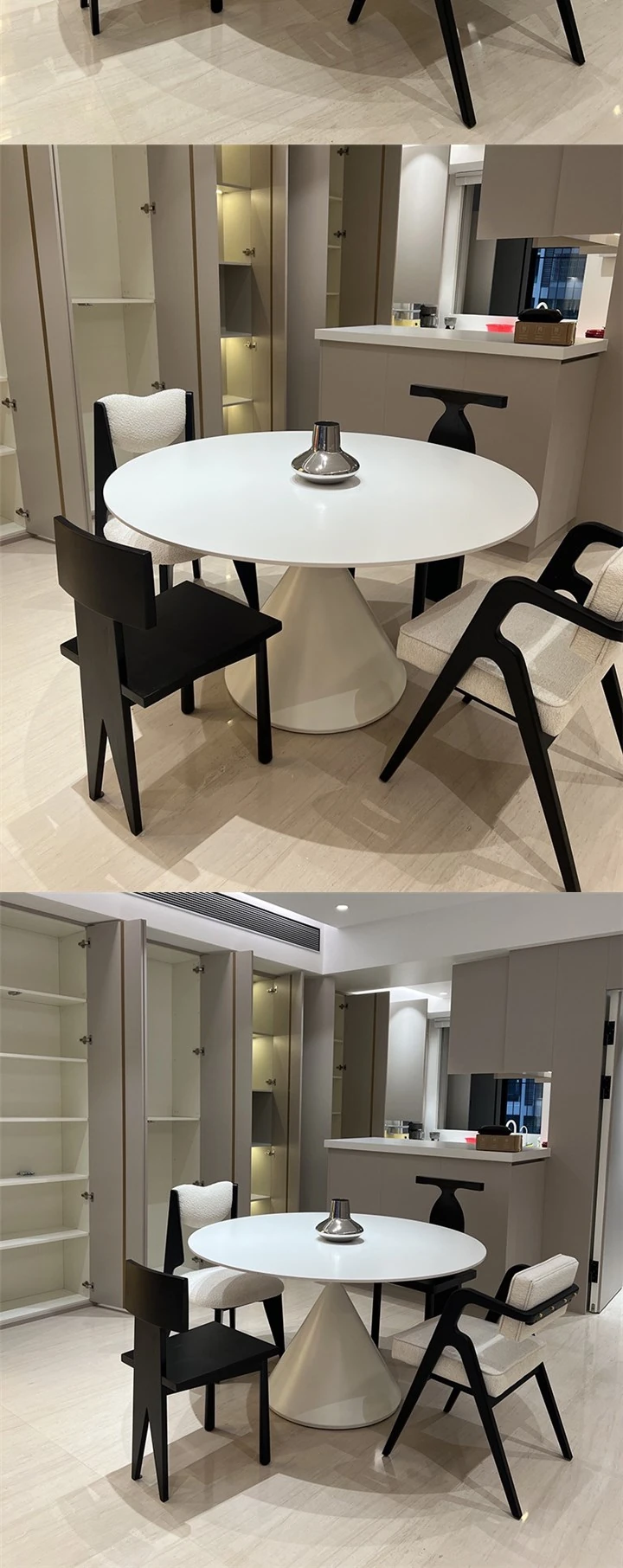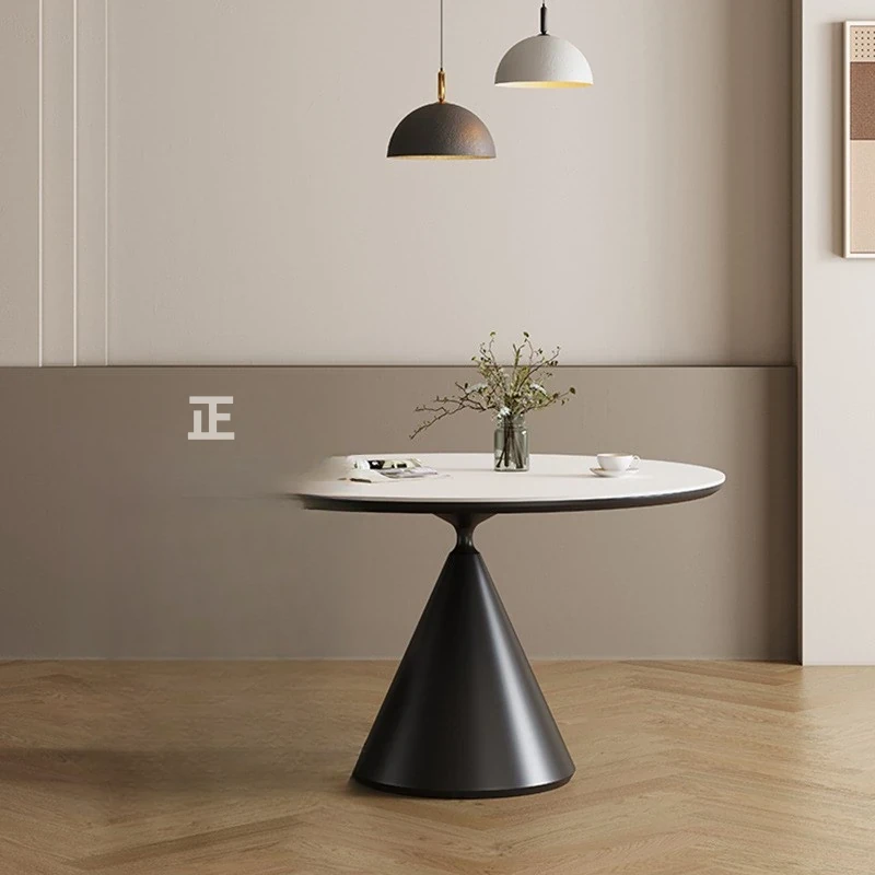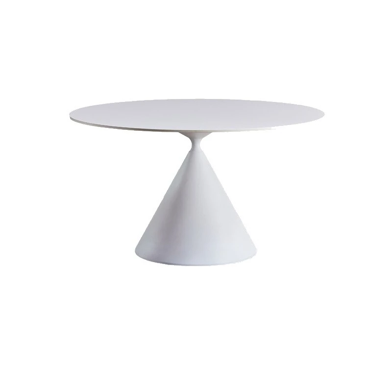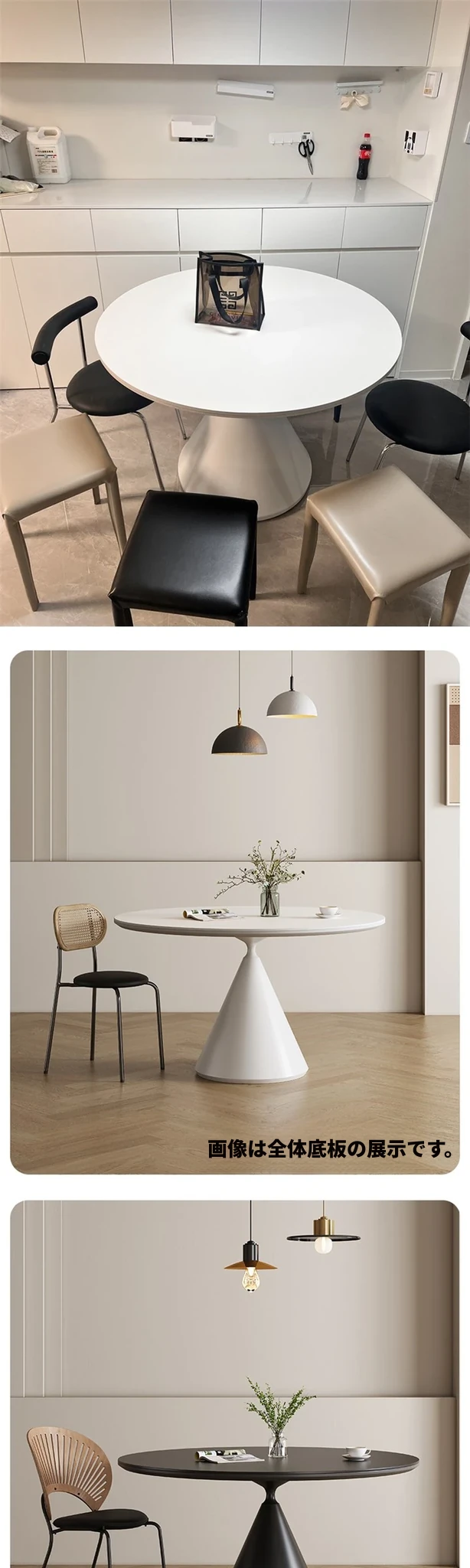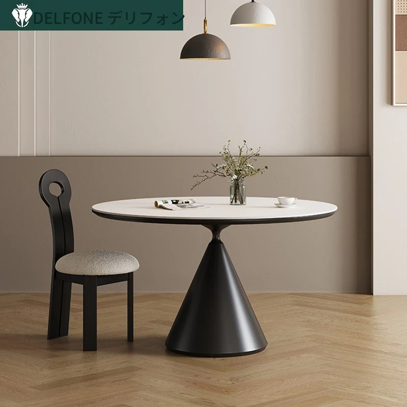 デリフォンのクリーム色のラウンドテーブル - モダンでシンプルなデザイン、小スペースにも最適な純白の円形ダイニングテーブル。家族との楽しい食事を演出します!