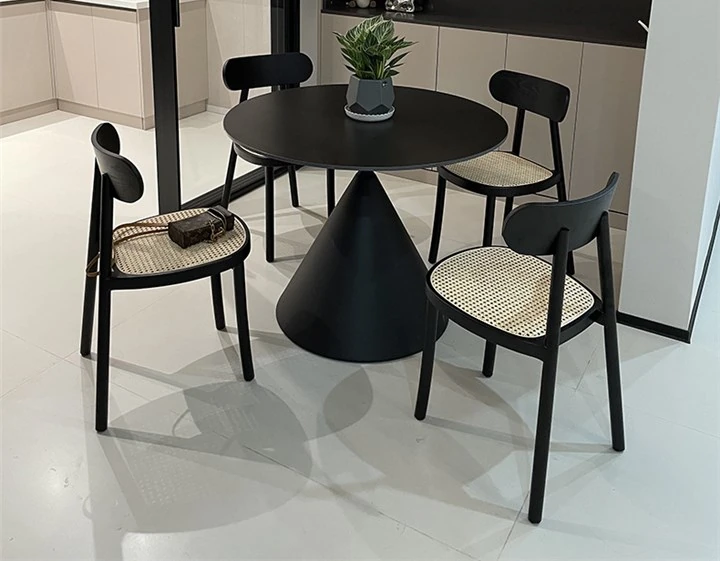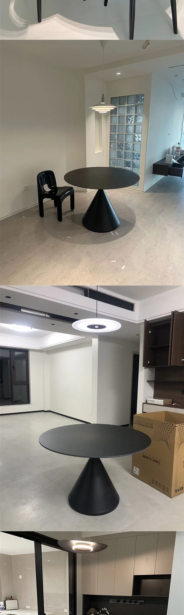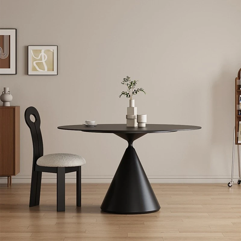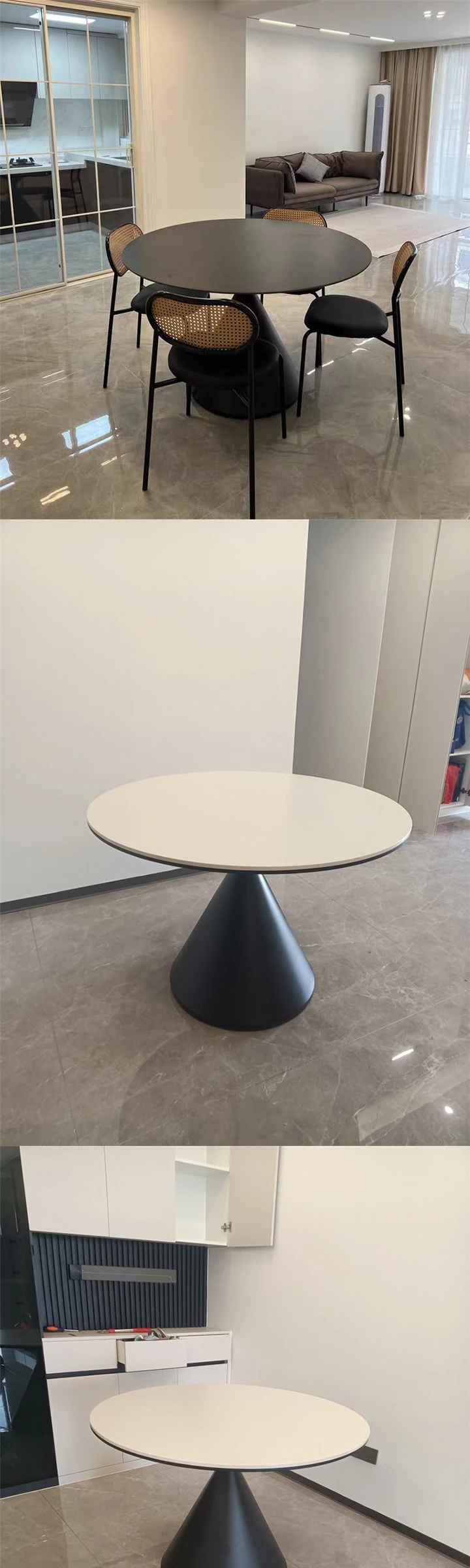 デリフォンのクリーム色のラウンドテーブル - モダンでシンプルなデザイン、小スペースにも最適な純白の円形ダイニングテーブル。家族との楽しい食事を演出します!