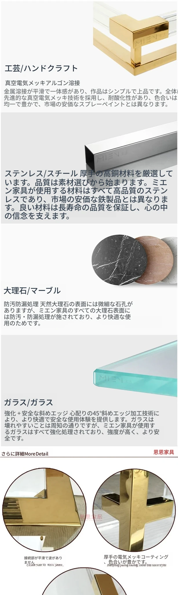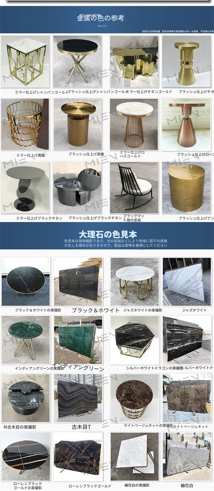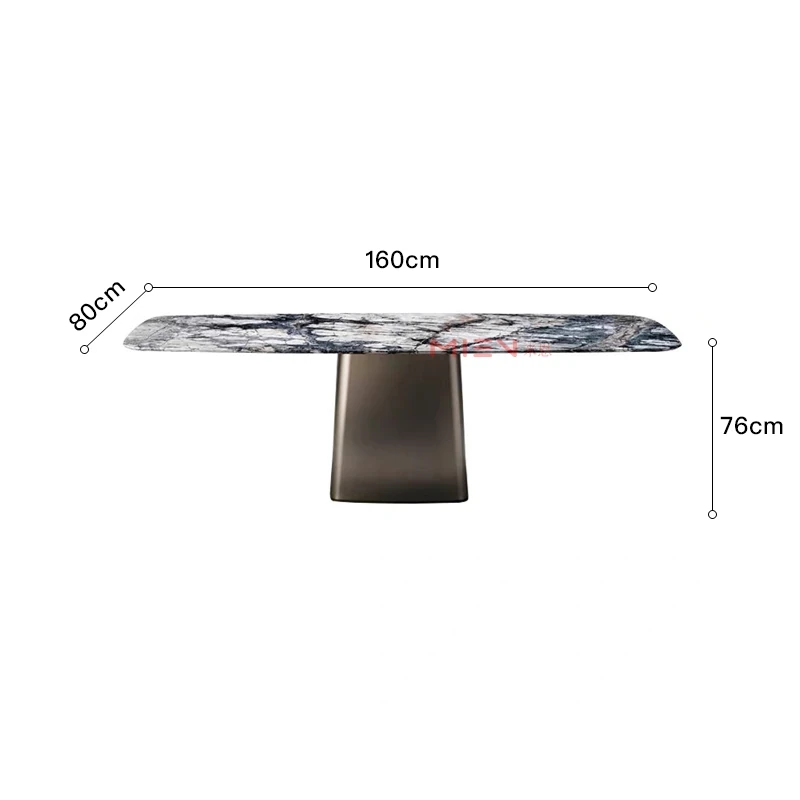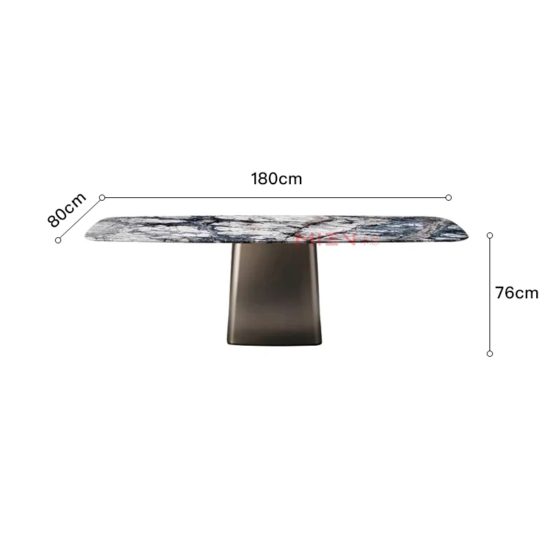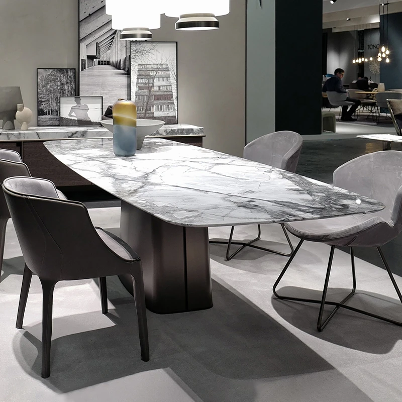 アメリカンスタイルのリビングダイニングテーブル - 長方形大理石テーブル、ステンレススチール製のエレガントな接待テーブル。ヴィラのモデルルームにもぴったりな、美しいデザインのダイニングテーブルで、家族や友人との素敵なひとときを演出します。