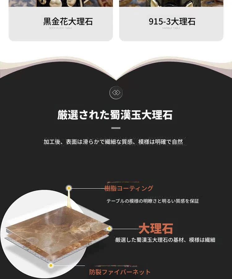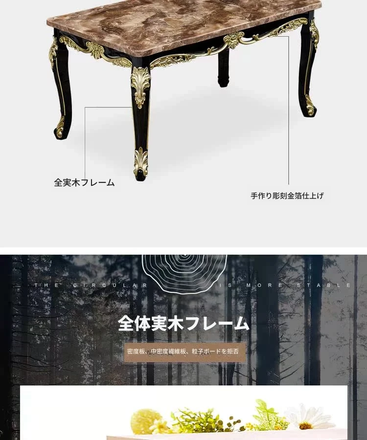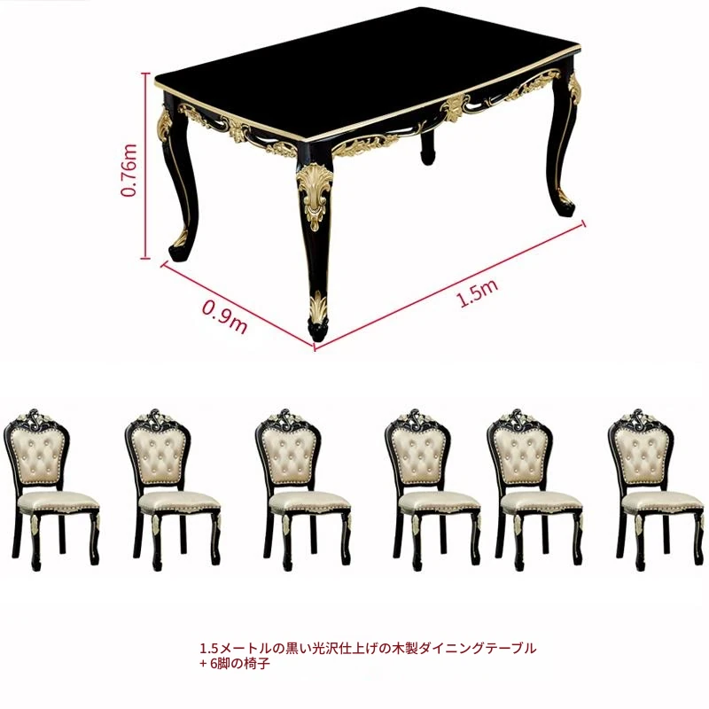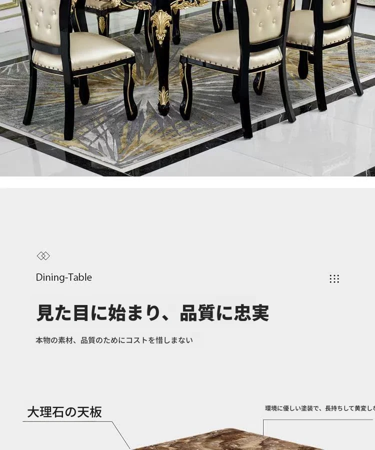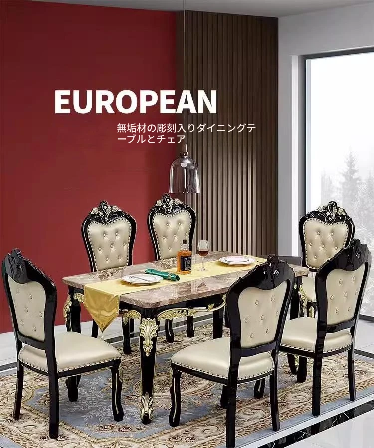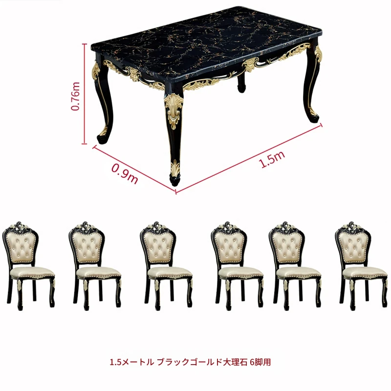 1.5メートル+6脚のダイニングチェア(大理石天板)
