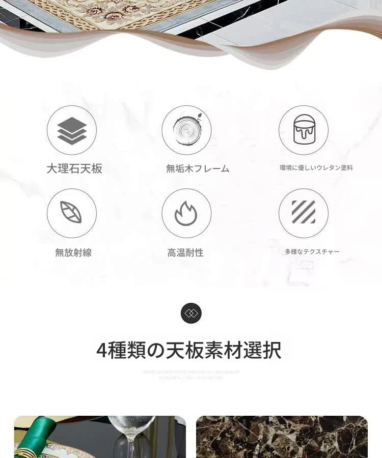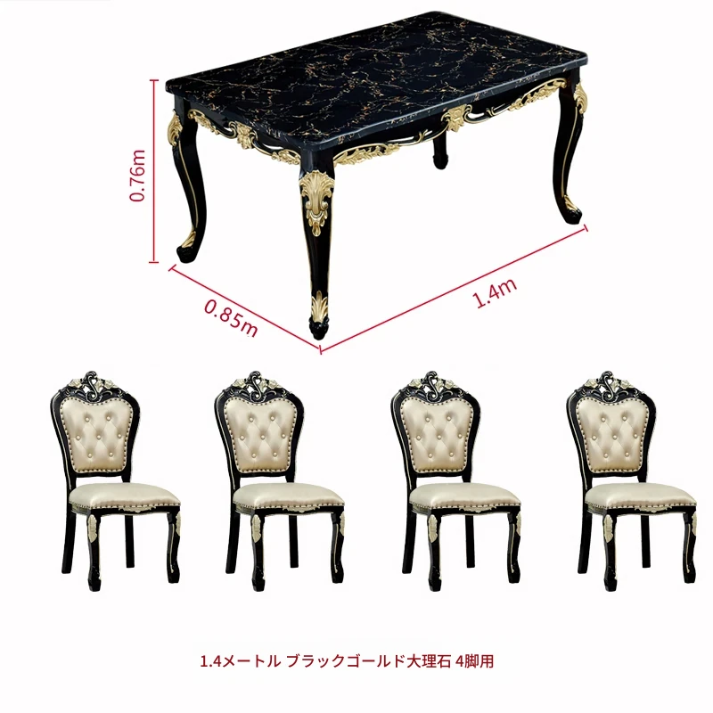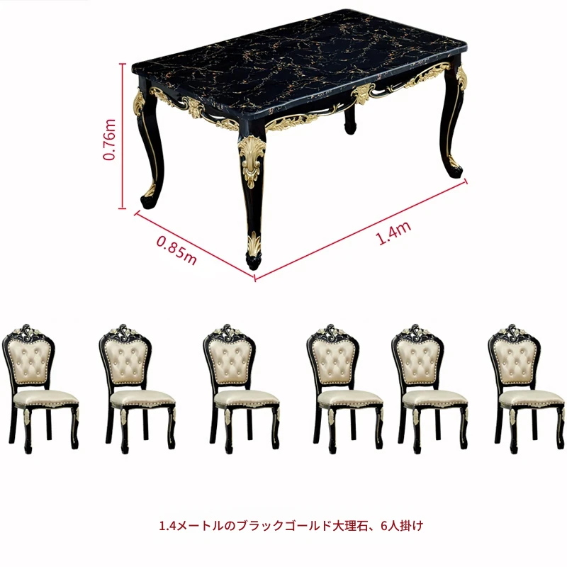 1.4メートル+6脚のダイニングチェア(大理石天板)