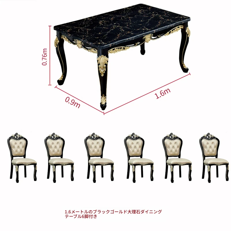 1.6メートル+6脚のダイニングチェア(大理石天板)