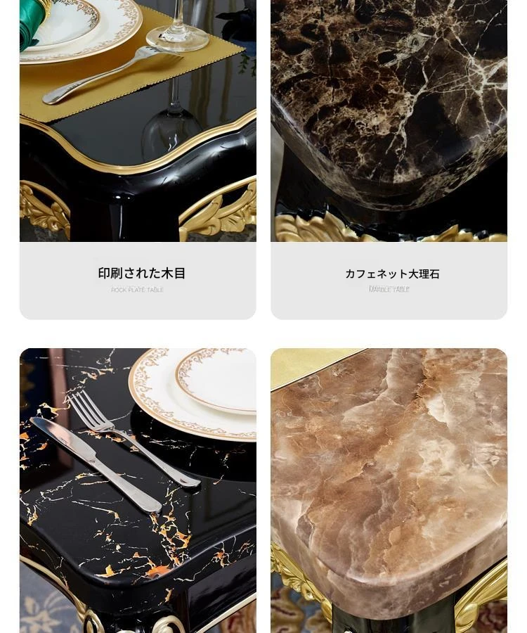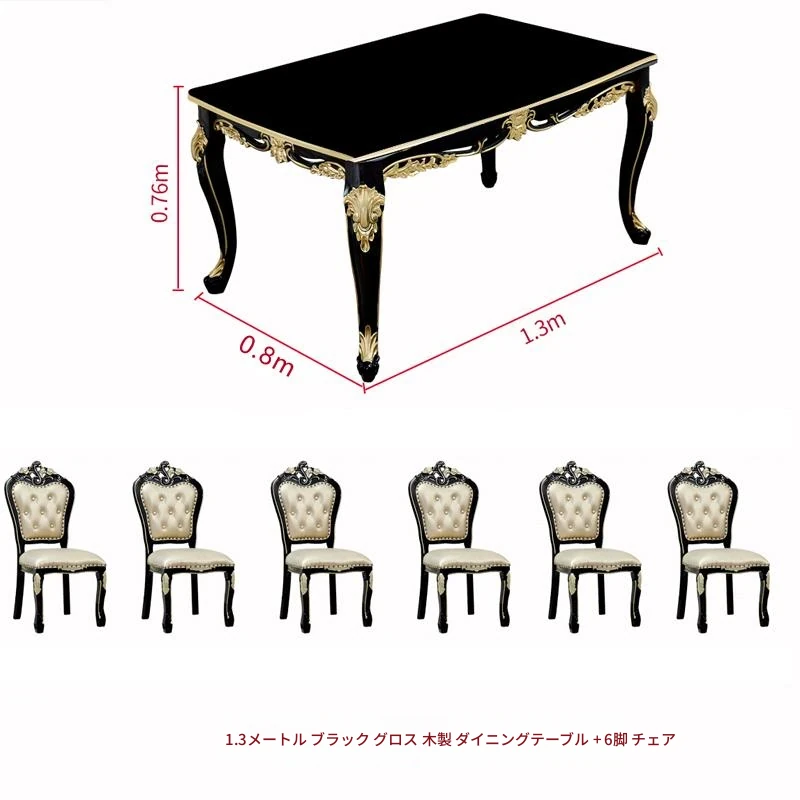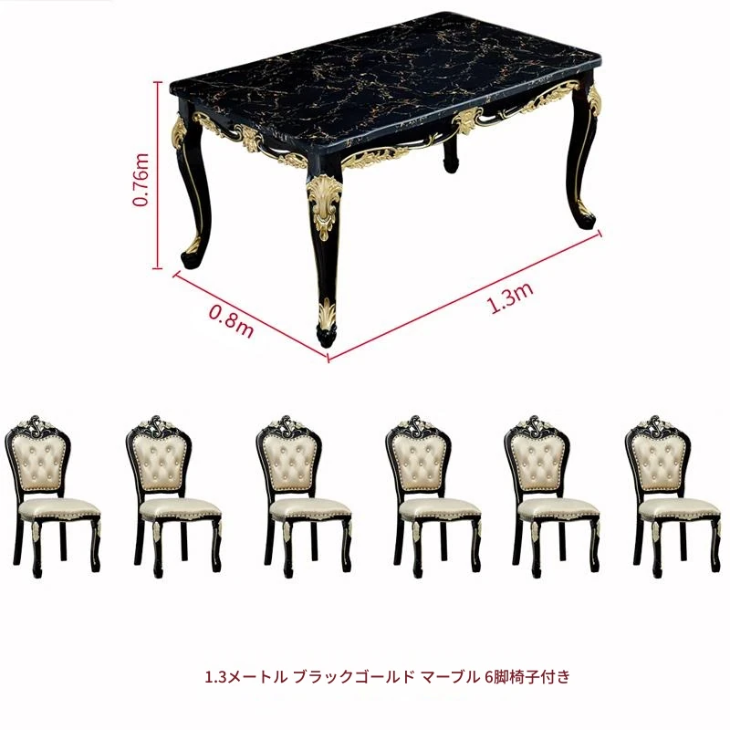 1.3メートル+6脚のダイニングチェア(大理石天板)
