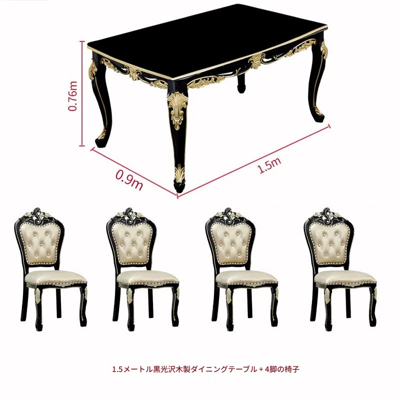 1.5メートル+4脚のダイニングチェア(大理石天板)