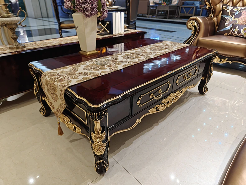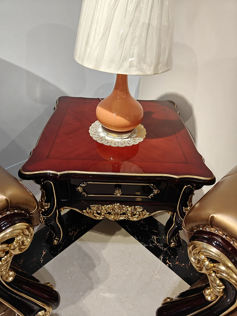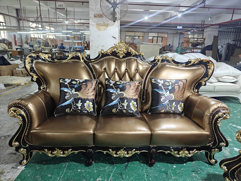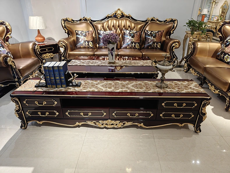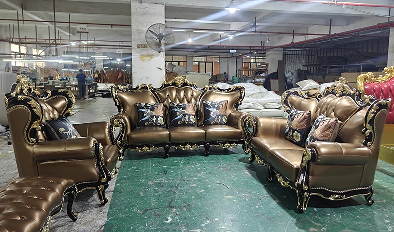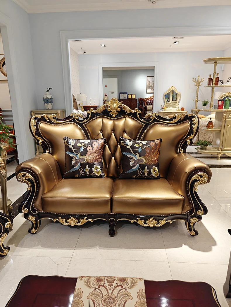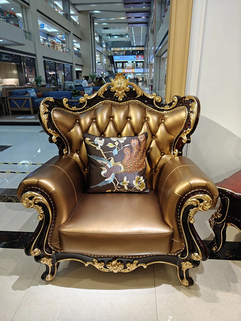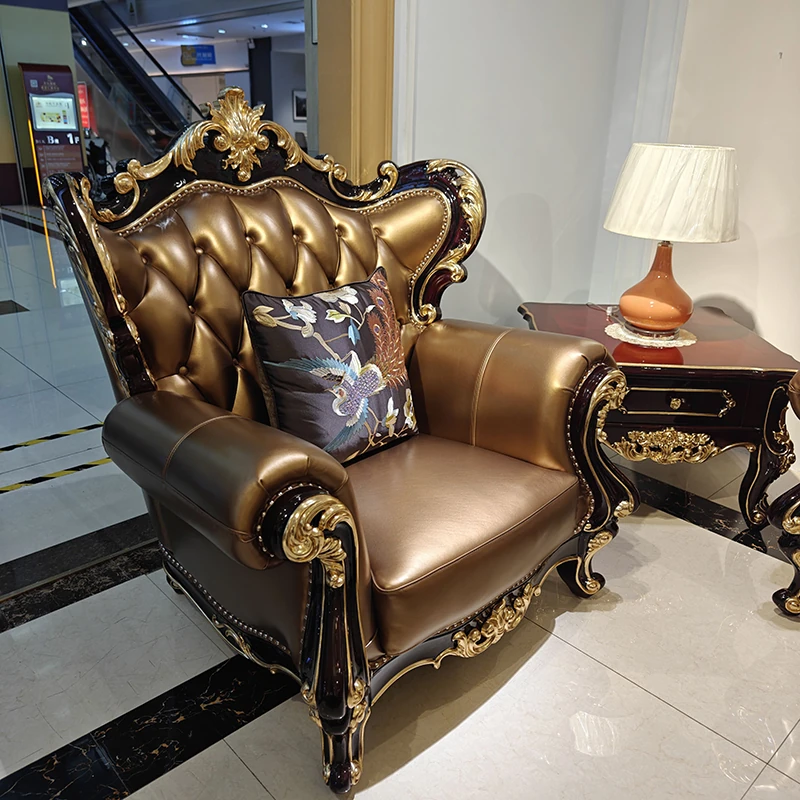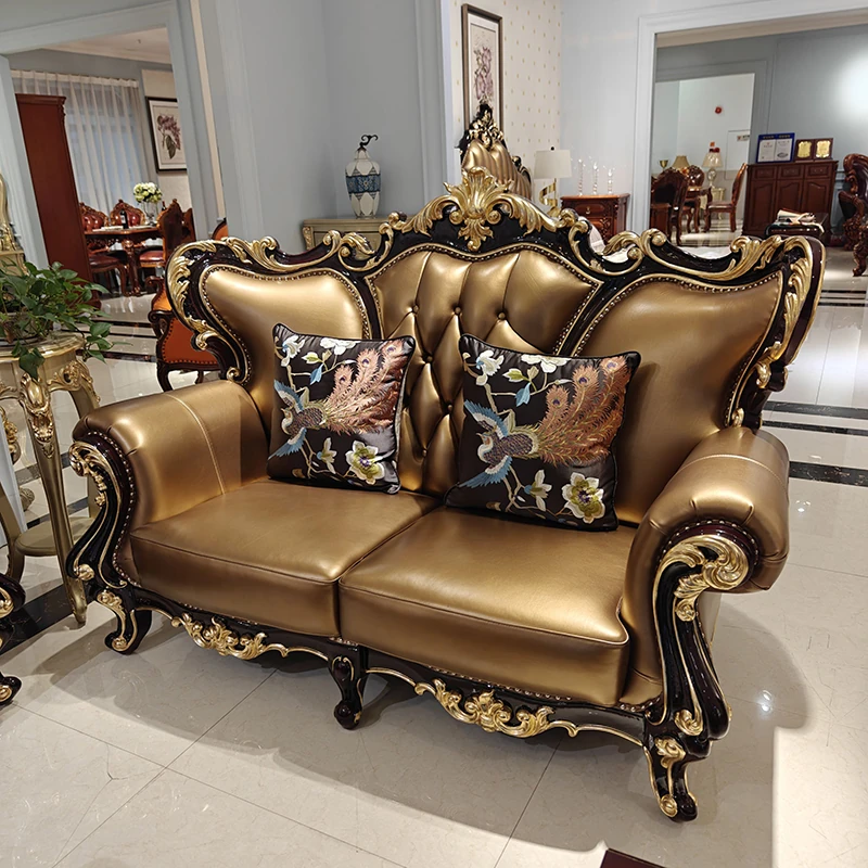 欧風本革ソファ 124コンビネーション 高級木製彫刻 大小兼用リビングに最適なマホガニー・ラフィレッド色 123ソファで贅沢な空間を演出!