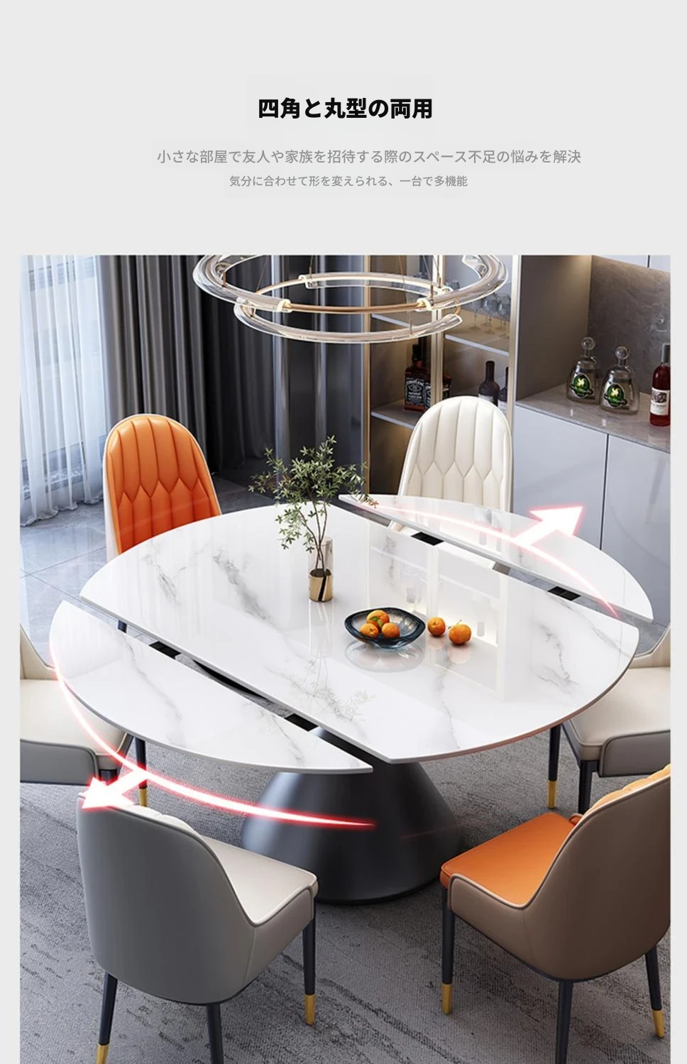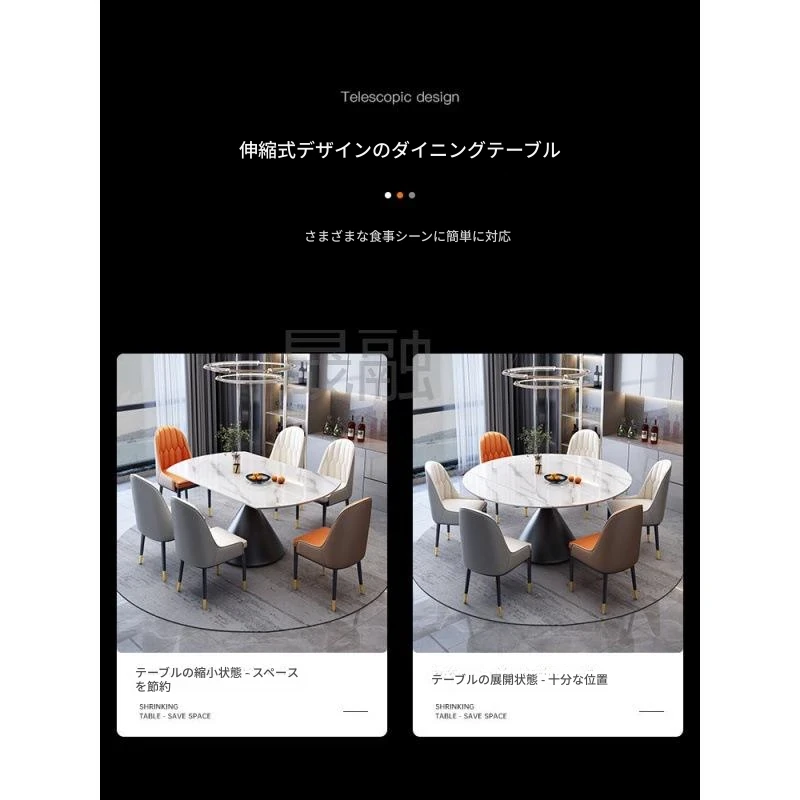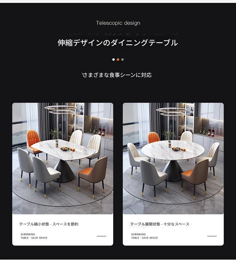 折りたたみ式の岩板ダイニングテーブル&チェアセット - 天然木製、伸縮可能な超クリスタルストーン製、コンパクトなラウンドテーブルで、軽やかな高級感を演出!小さなお部屋にもぴったりな多機能テーブルです。