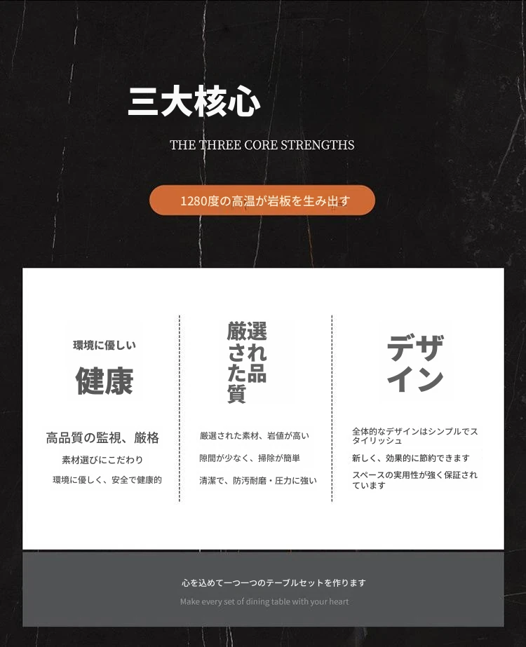 イタリアンミニマル大理石ダイニングテーブル|小さな家に最適な長方形のカジュアルでラグジュアリーなロックプレートテーブル&チェアセットで、食卓をスタイリッシュに演出!