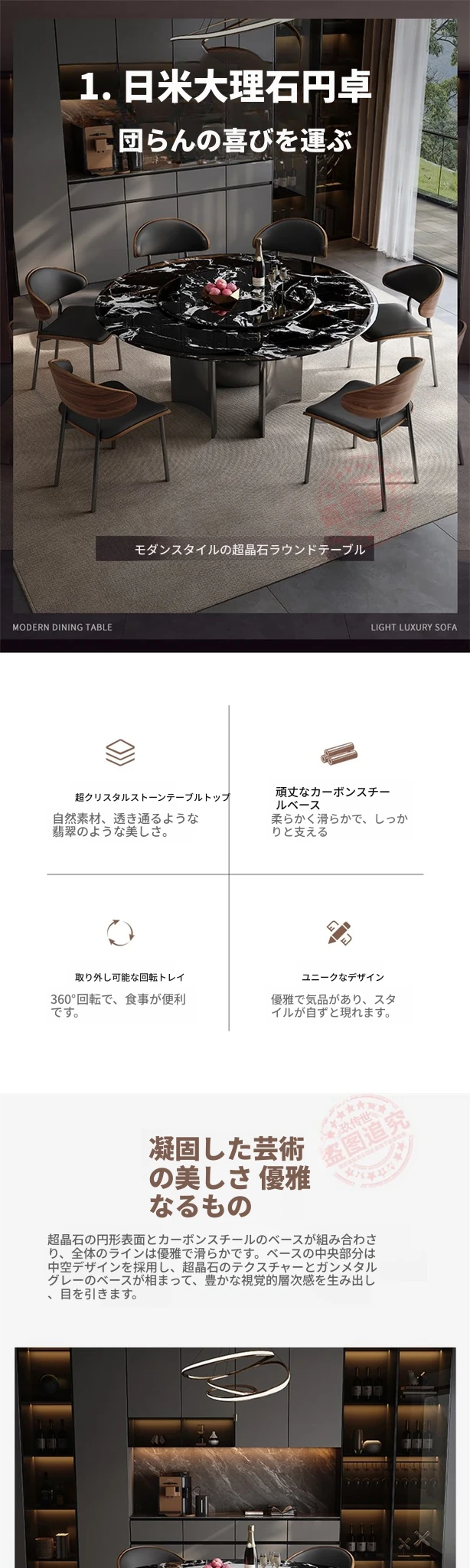 853#スーパークリスタルストーン円卓+6ミラノチェア