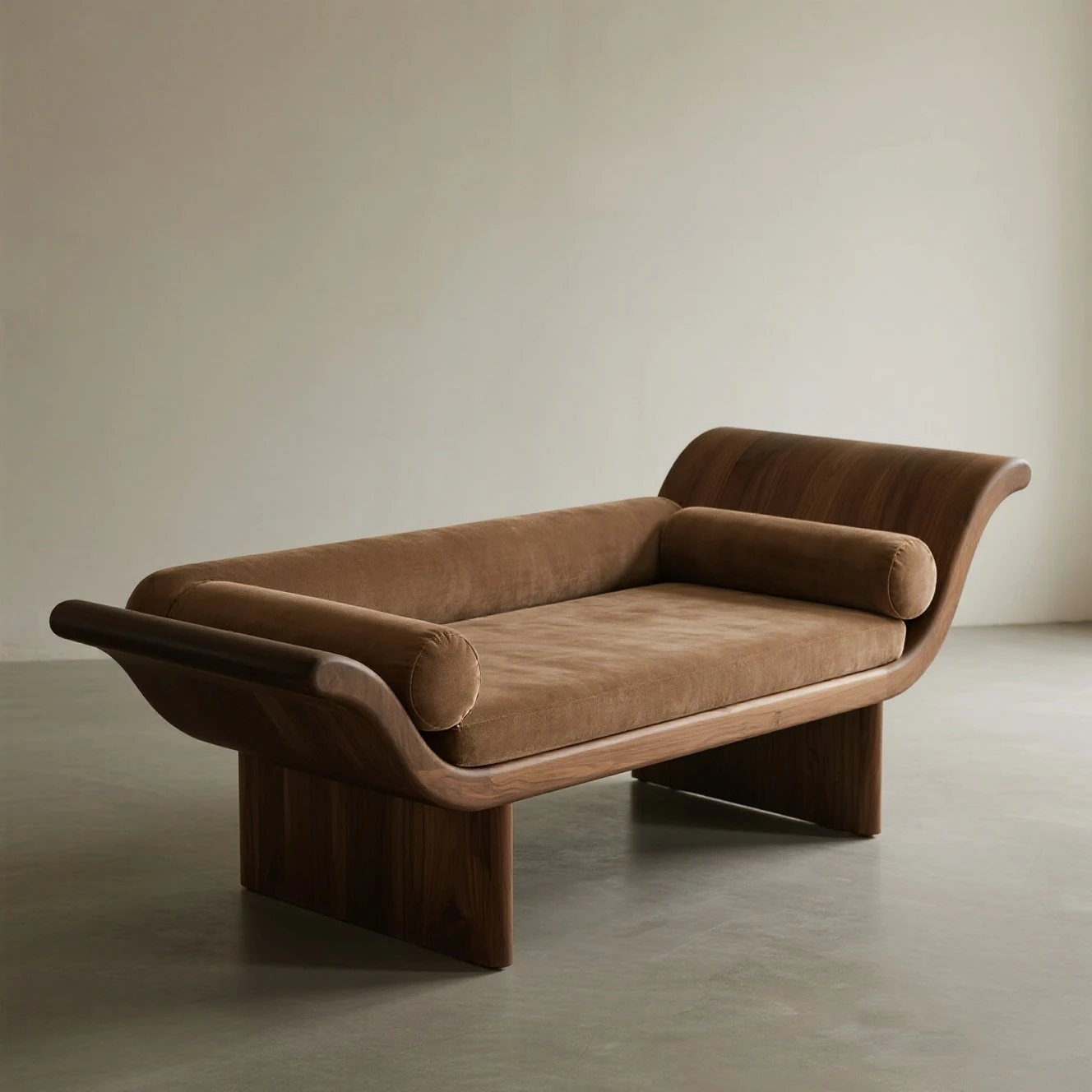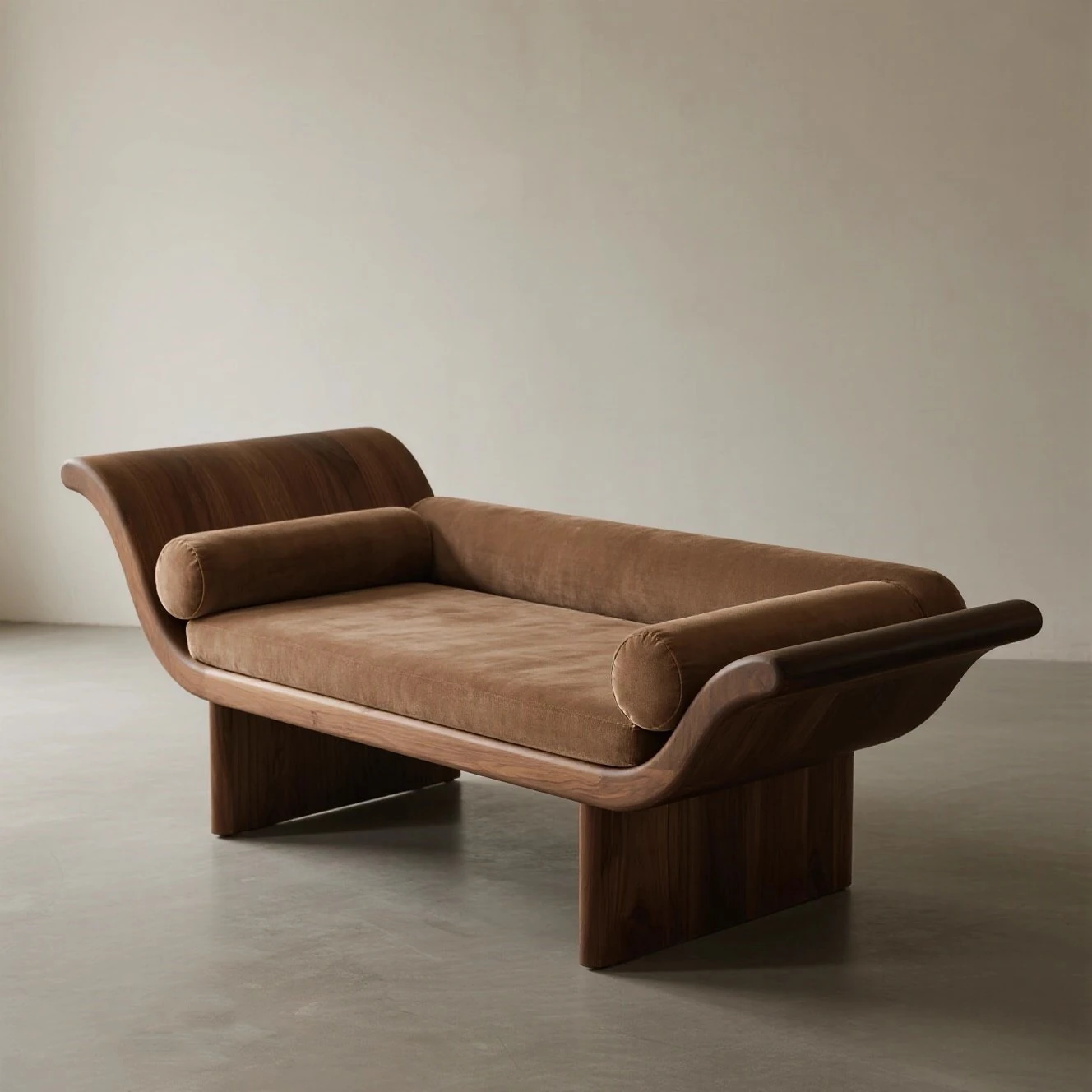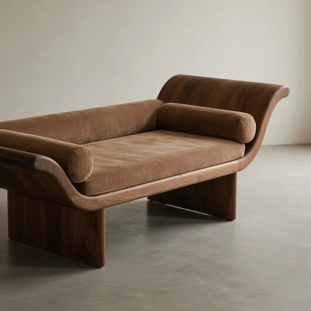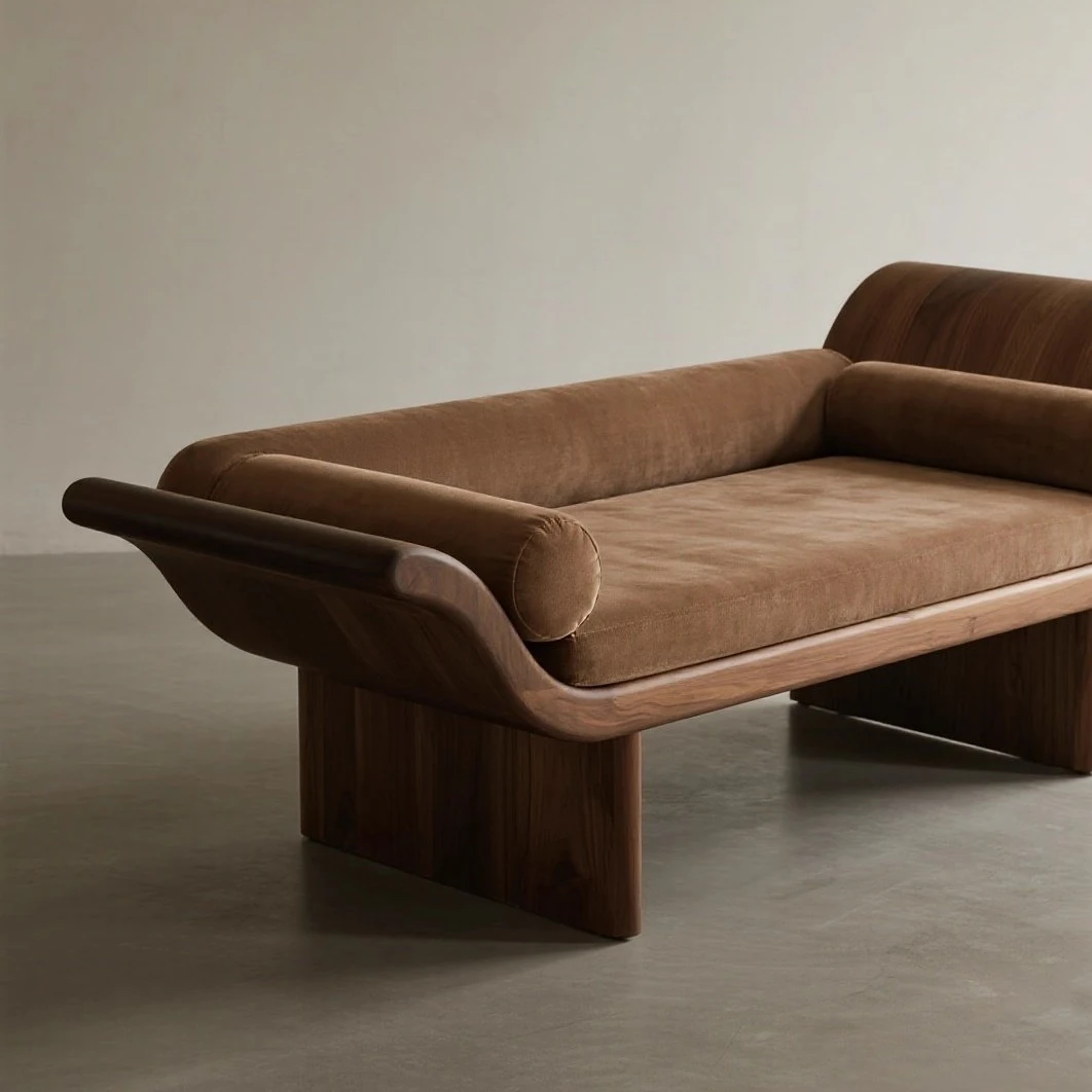 新中式ウォールナット無垢材の貴妃椅子 - おしゃれで快適なリビングルームやバルコニーにぴったりの一人掛けソファ。優雅なデザインで、あなたの空間を引き立てます!