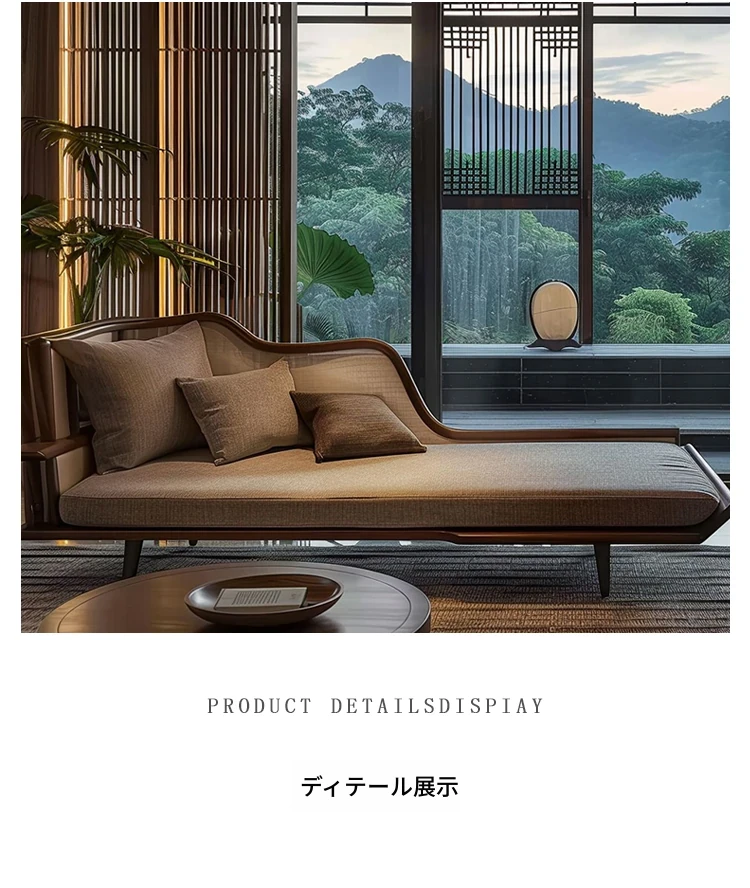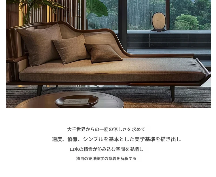 新中式禅の雰囲気を醸し出す、実木製の貴妃ソファ。高級感溢れるブラックウォールナットとホワイトアッシュの美しいデザイン。ホテルや民宿、オフィスにぴったりのスタイリッシュな寝椅子で、リラックスしたひとときをお楽しみください。