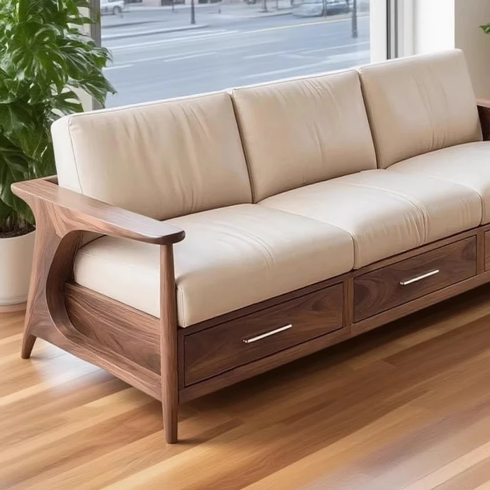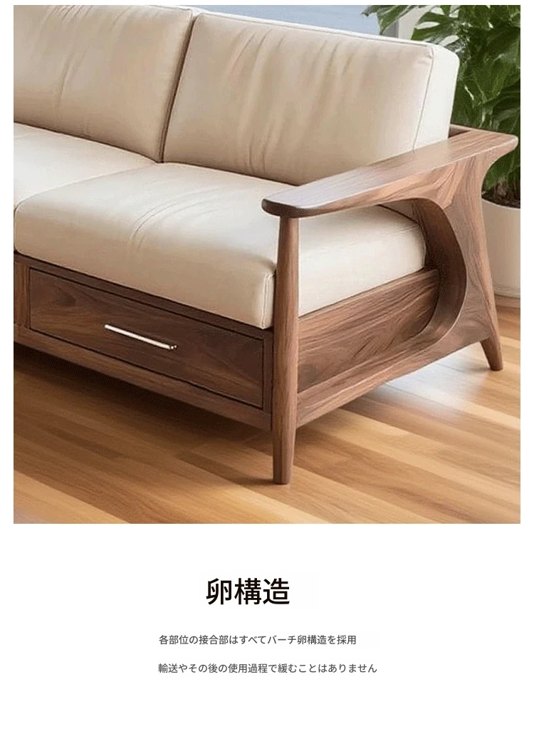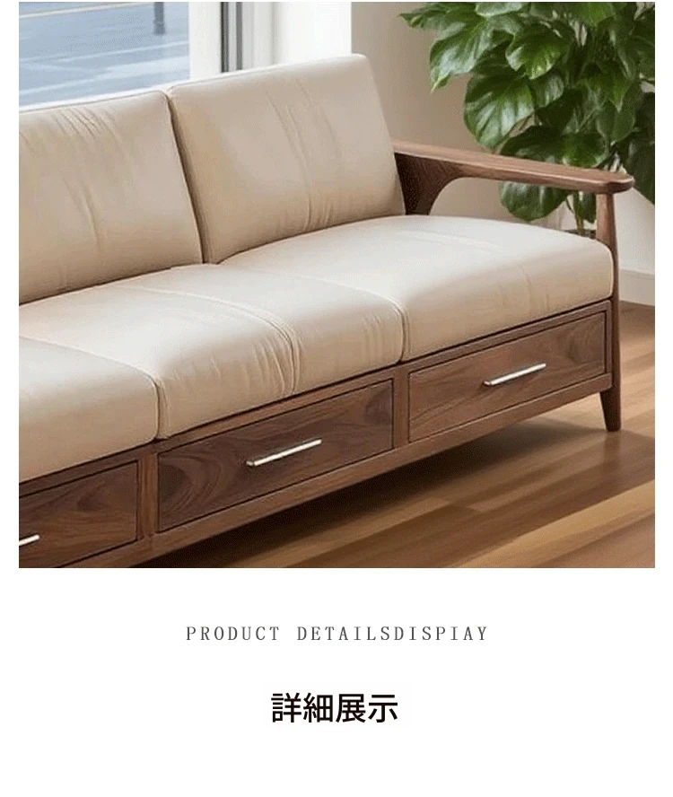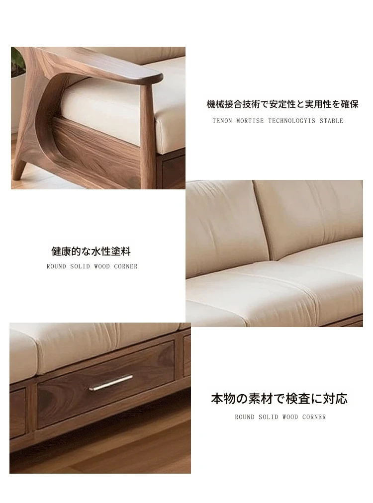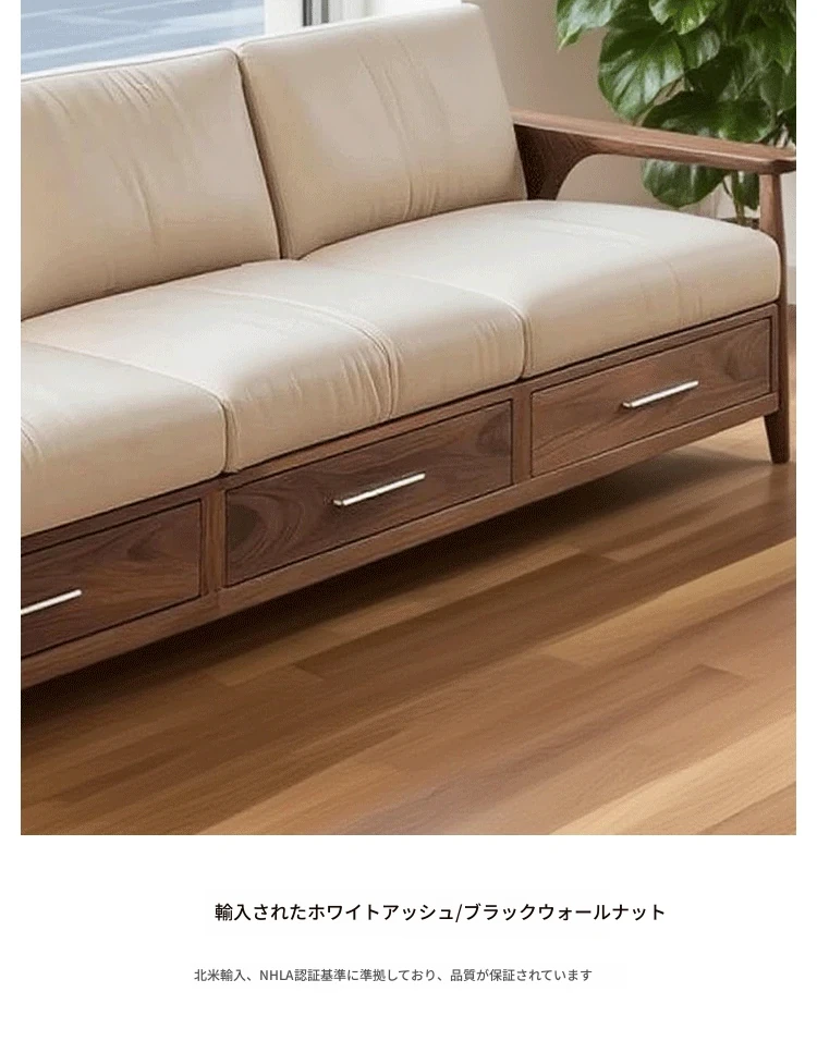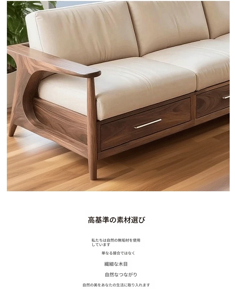 新中式禅スタイルのホワイトアッシュ材ソファ - 高級感溢れるリビングにぴったり!北米産のブラックウォールナットを使用した直線的なデザインの無垢家具で、洗練された空間を演出します。
